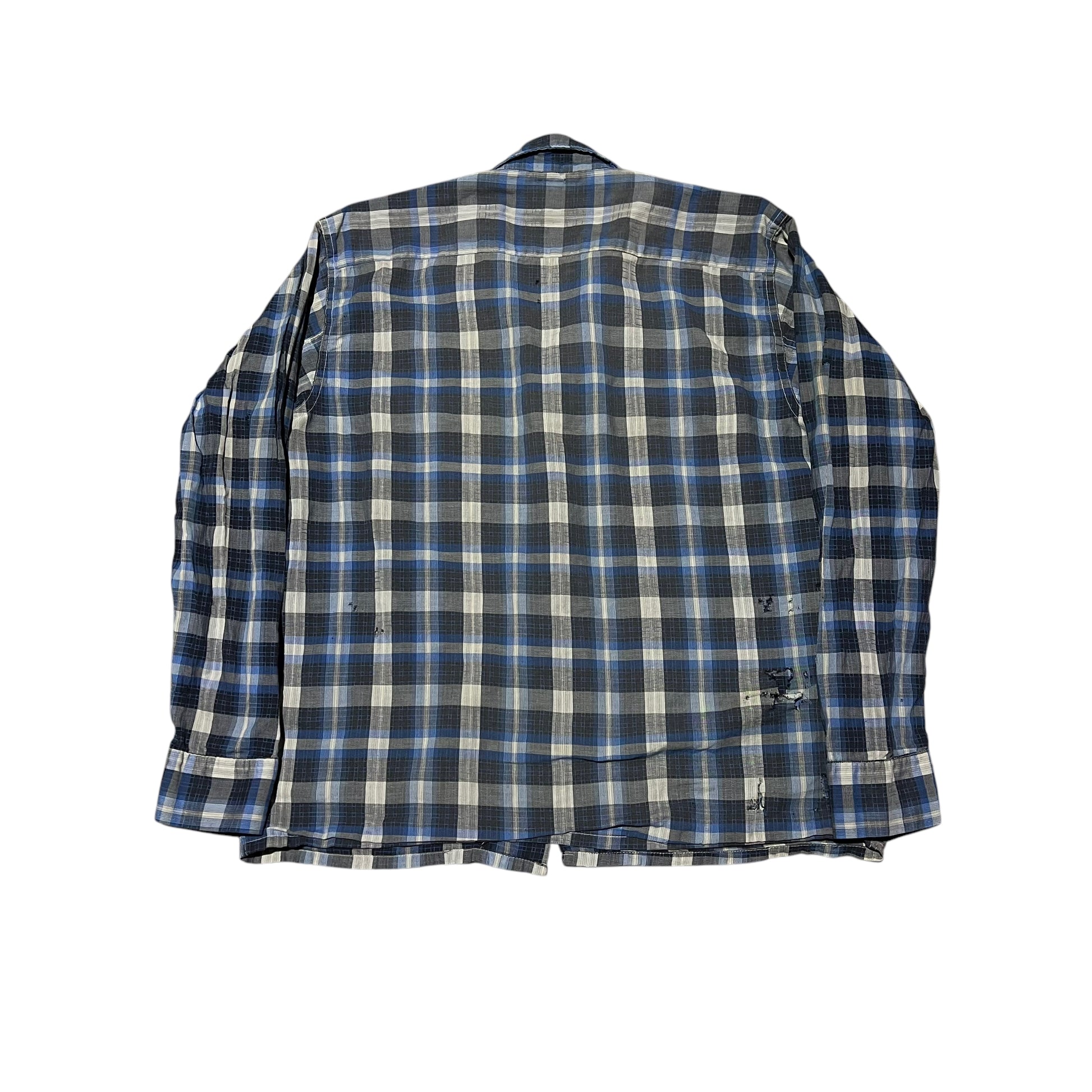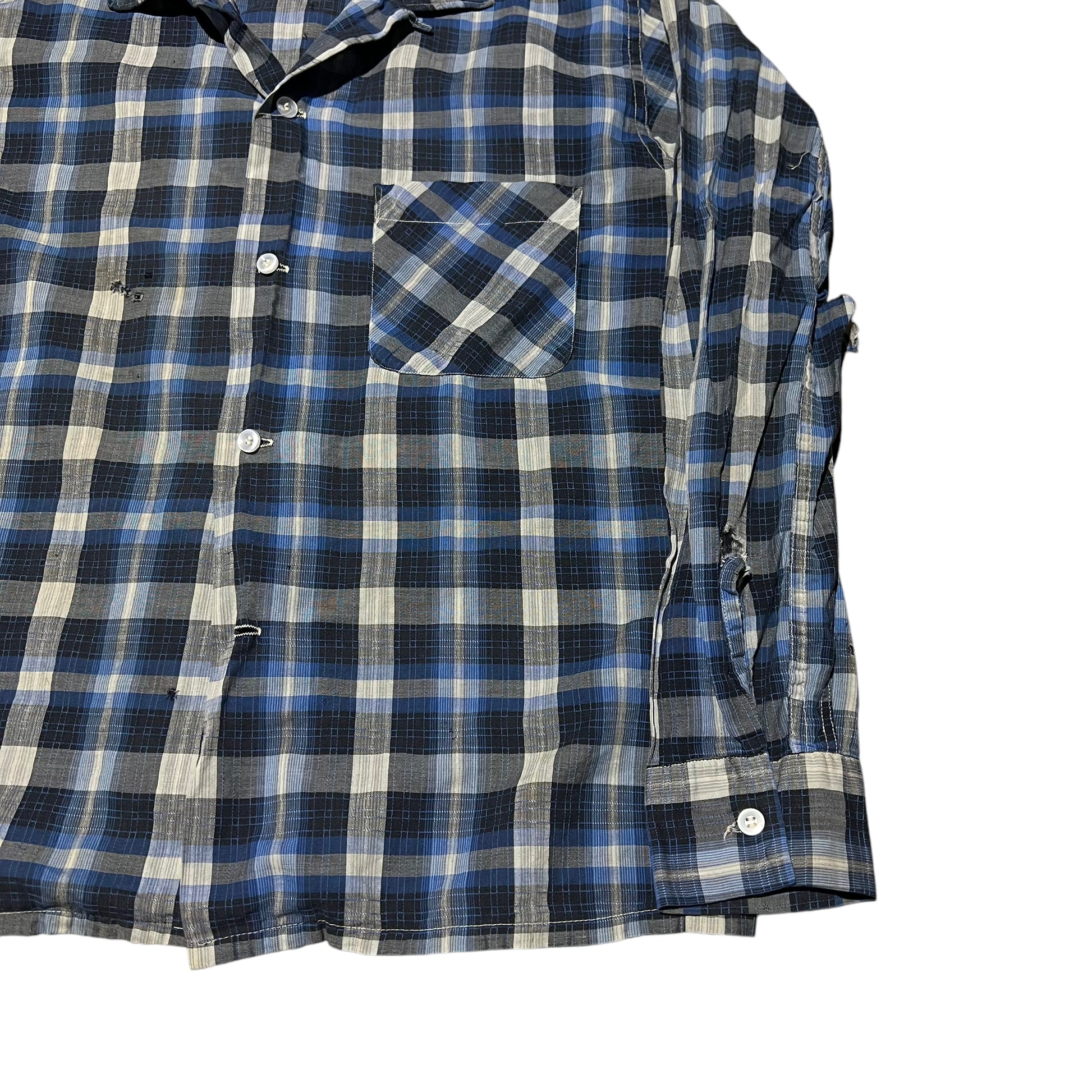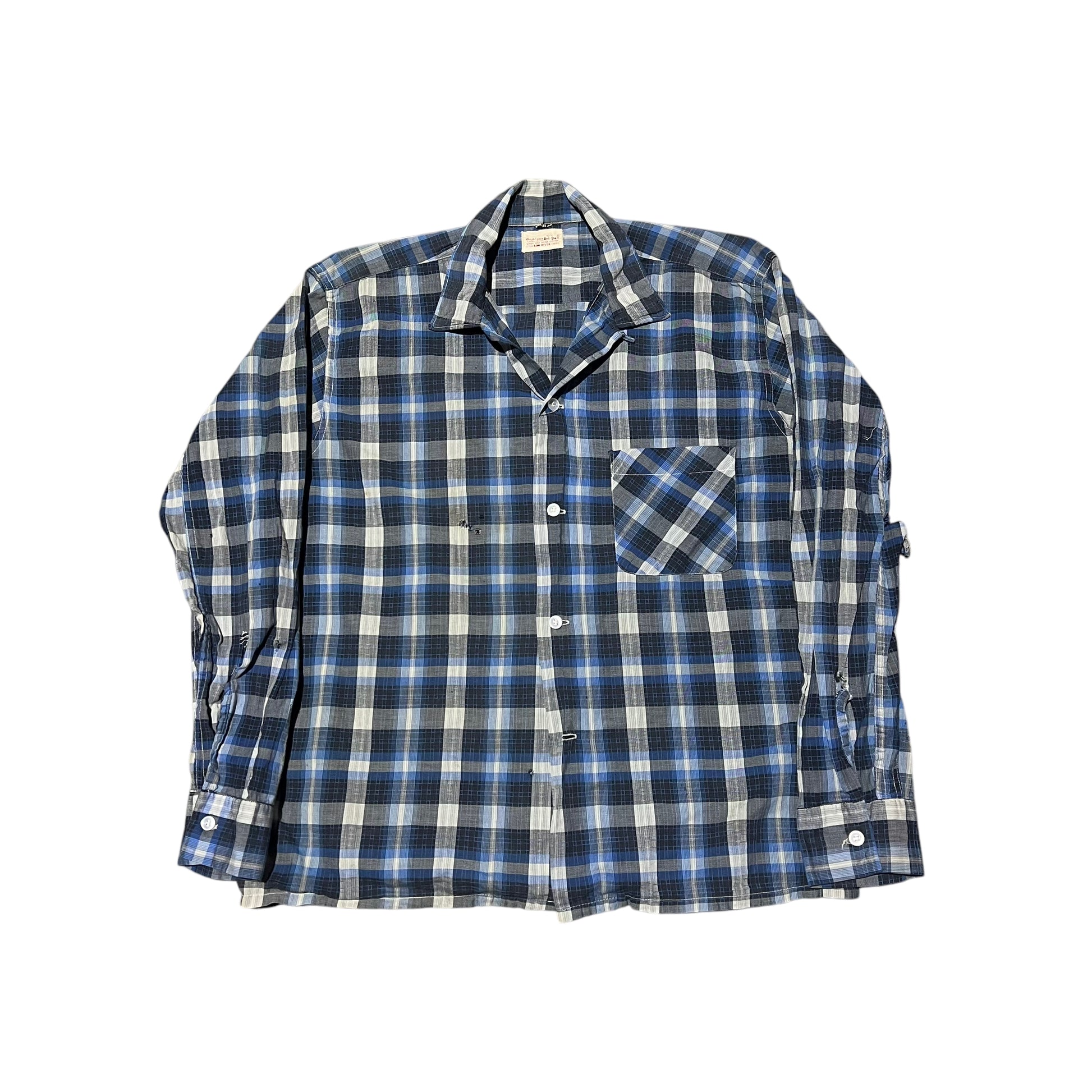 1950s Dan River cotton blue shadow plaid loop collar shirt (M)