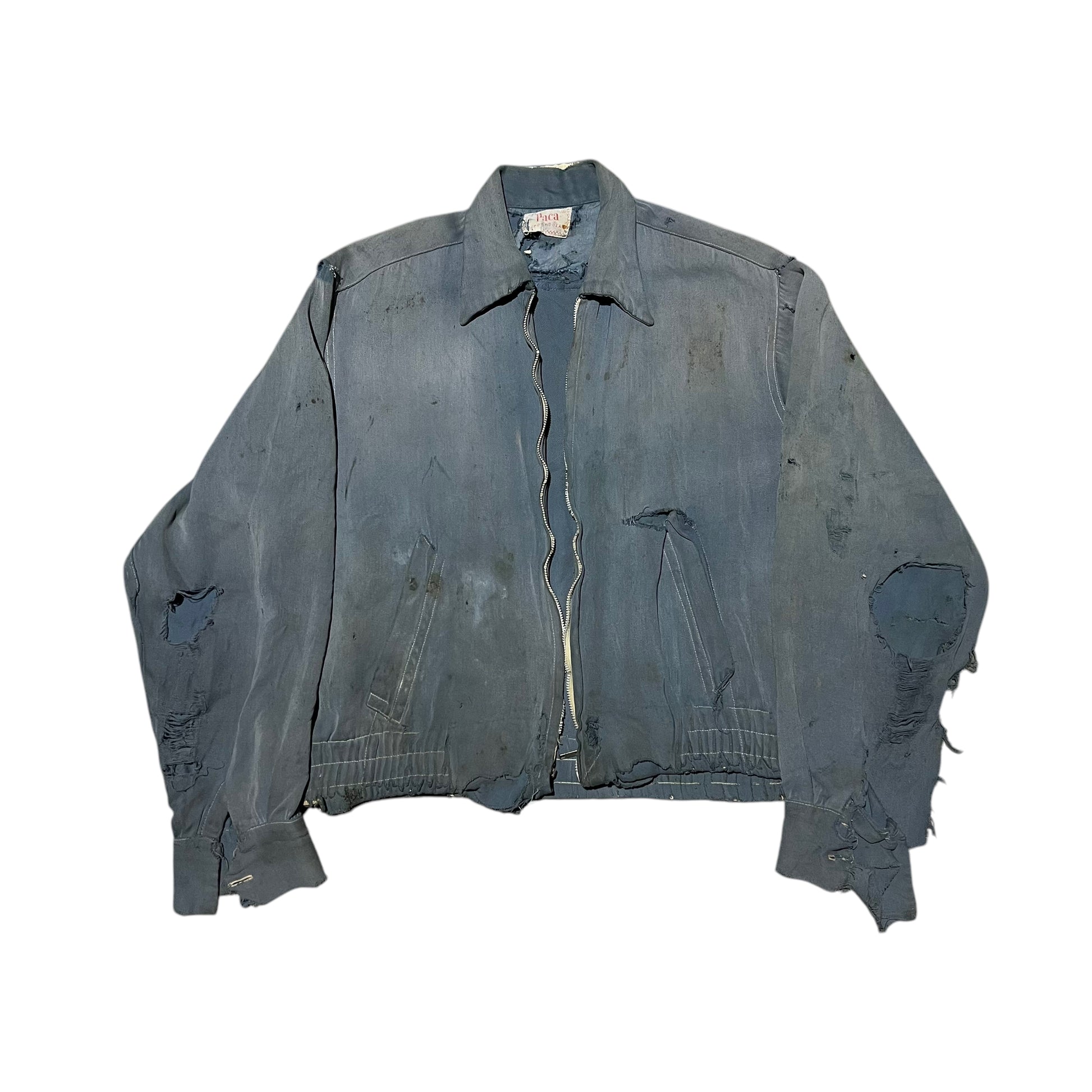 1950s Distressed blue rayon jacket (L)