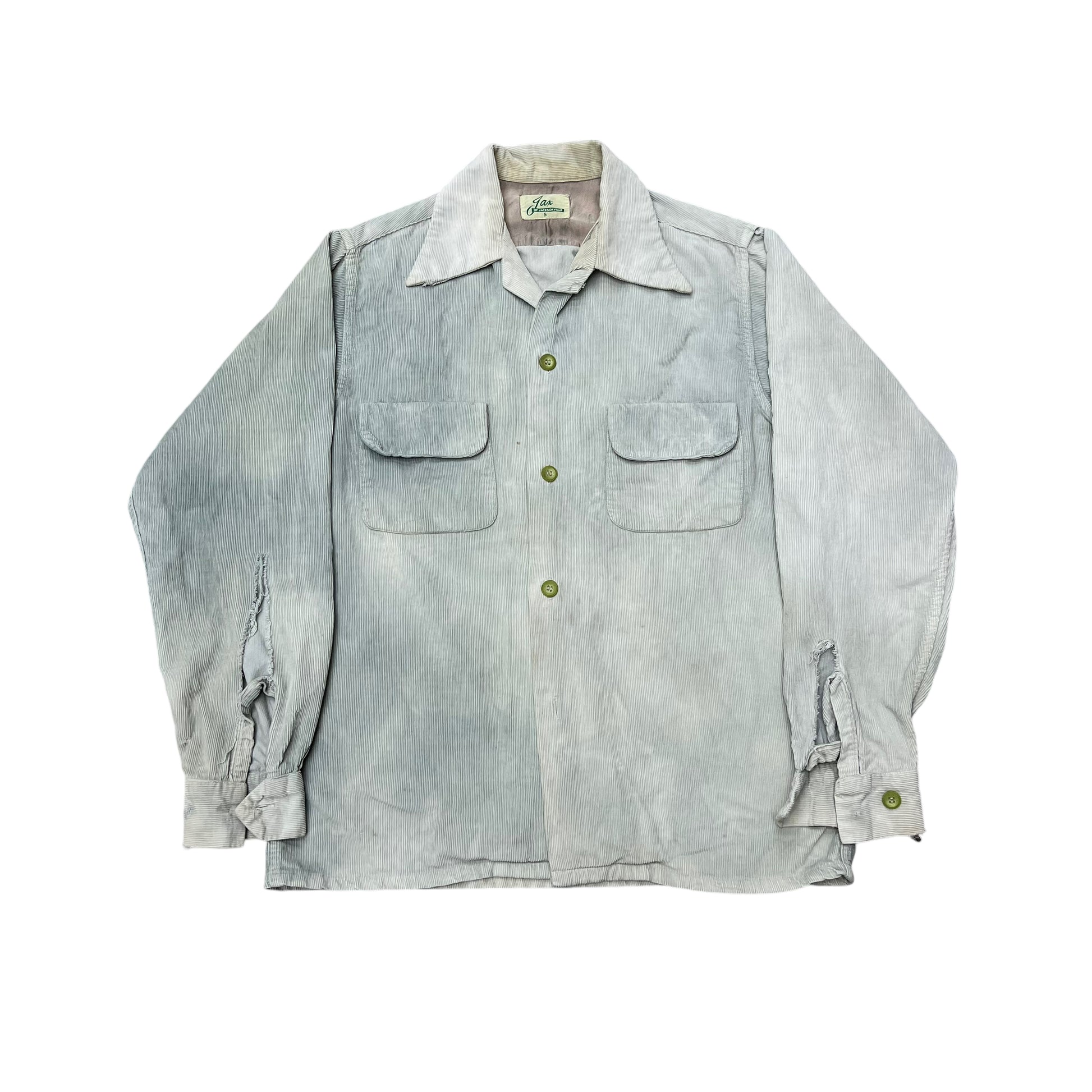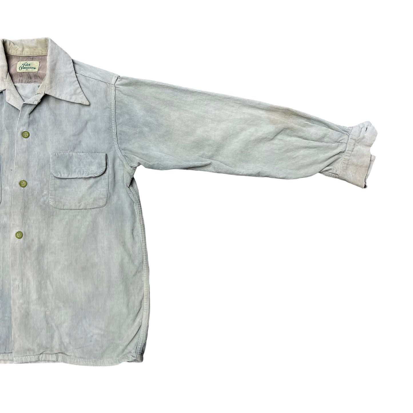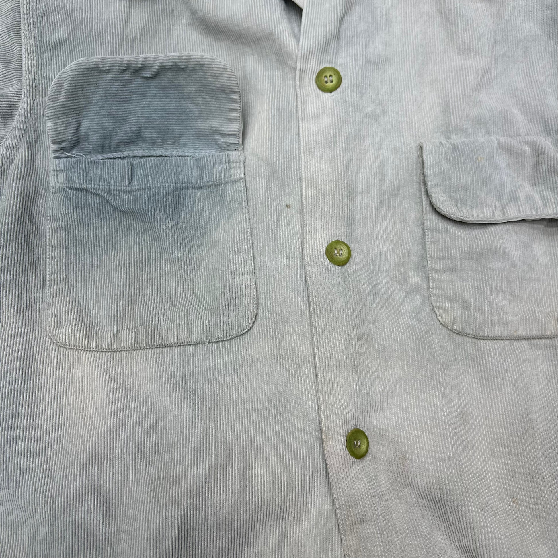 1950s Faded blue corduroy flap pocket collar shirt (S)