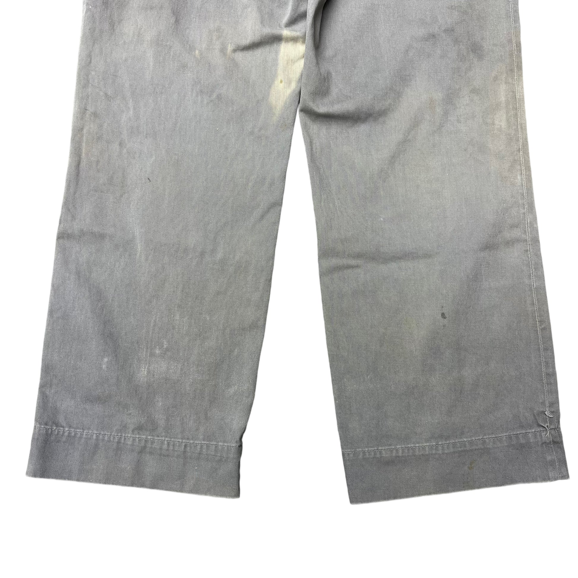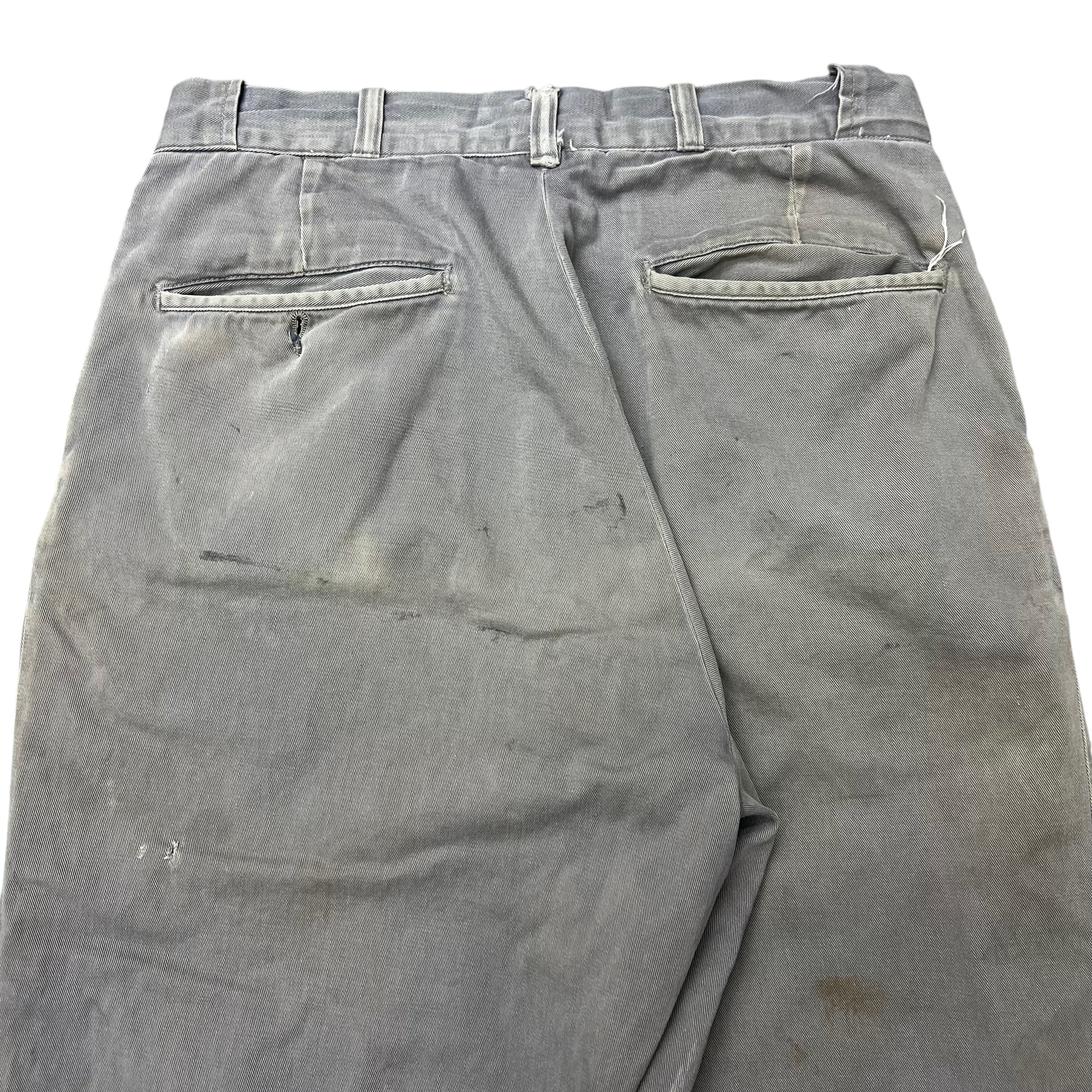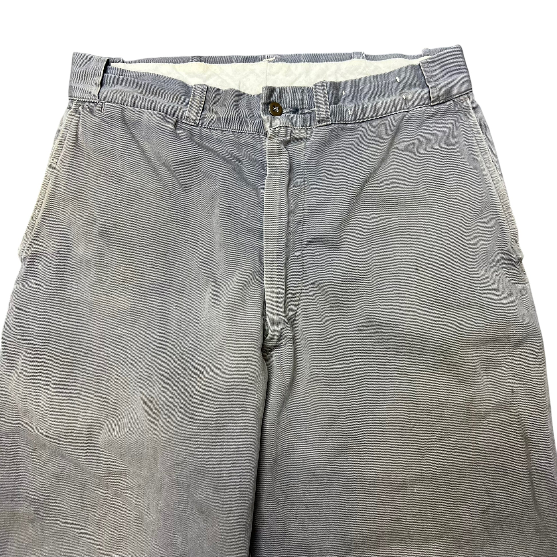 1950s Grey sun faded cotton sail cloth chino work pants (30w)