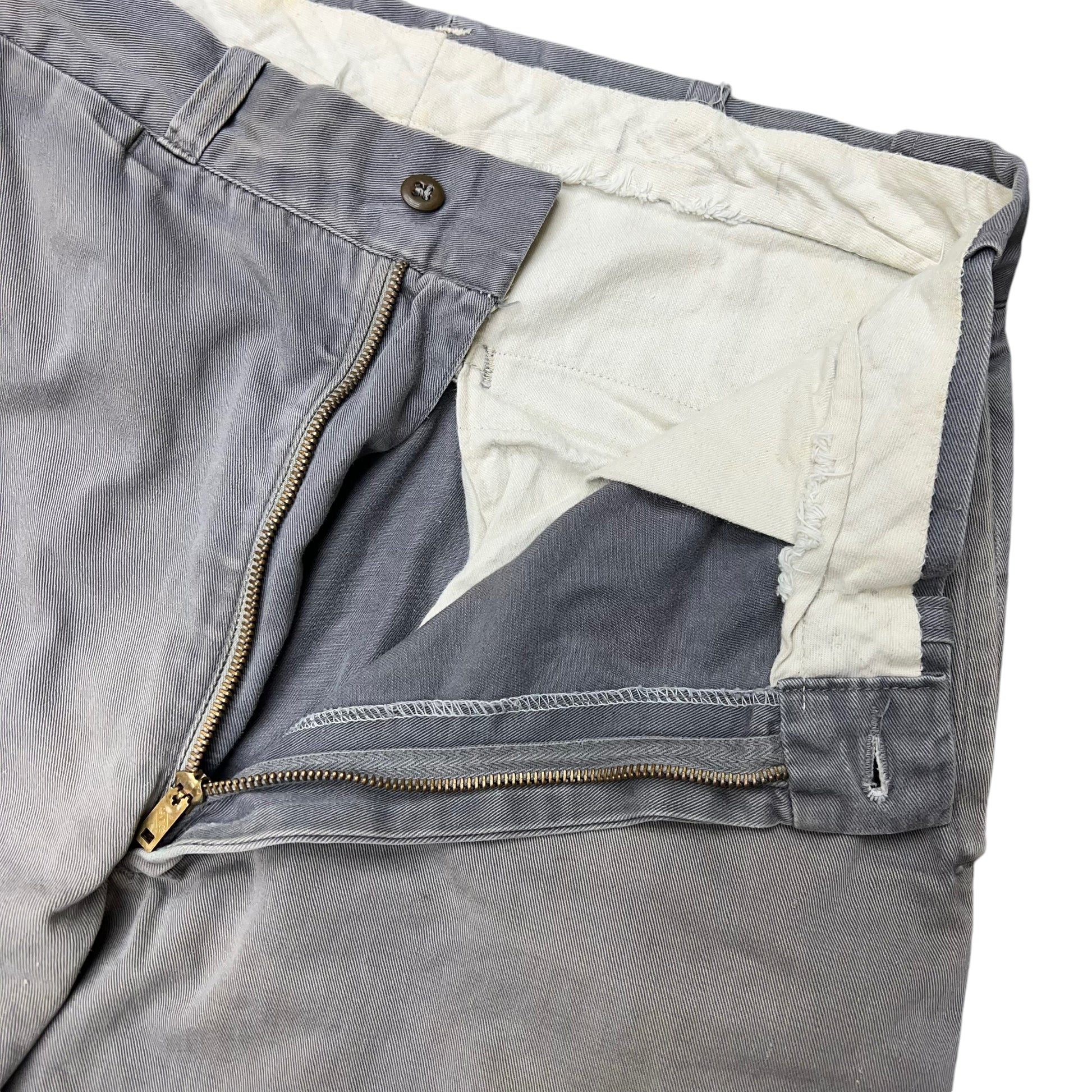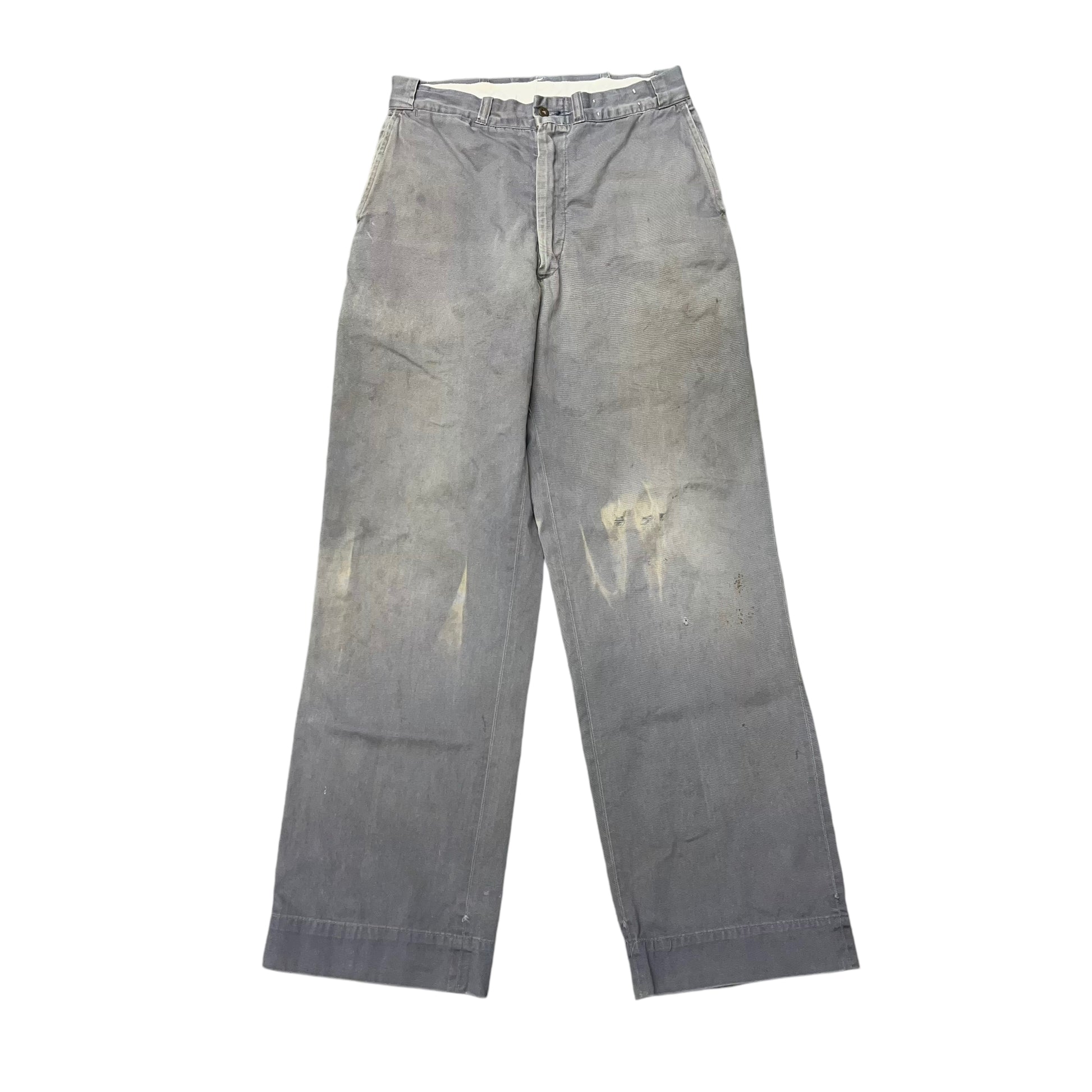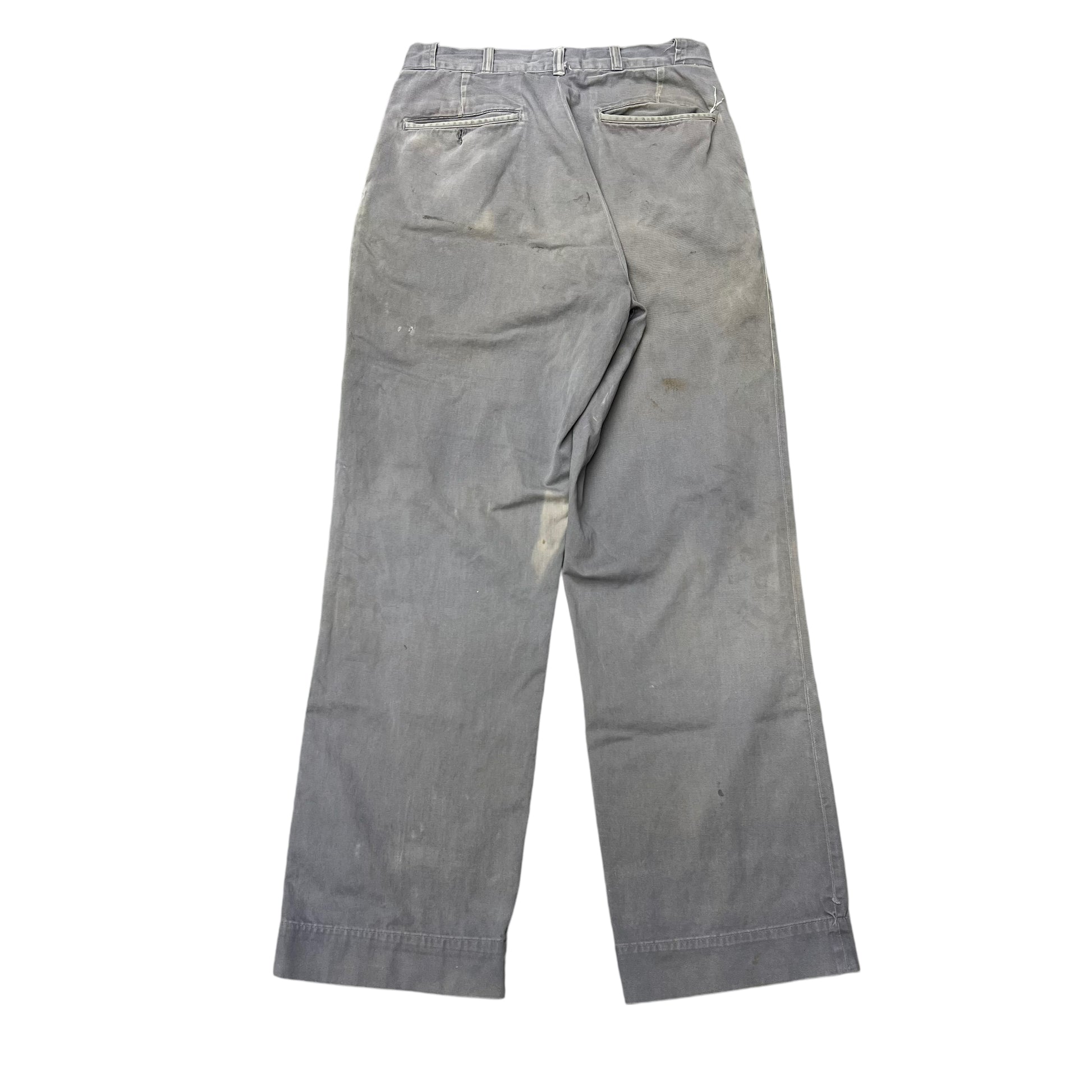 1950s Grey sun faded cotton sail cloth chino work pants (30w)