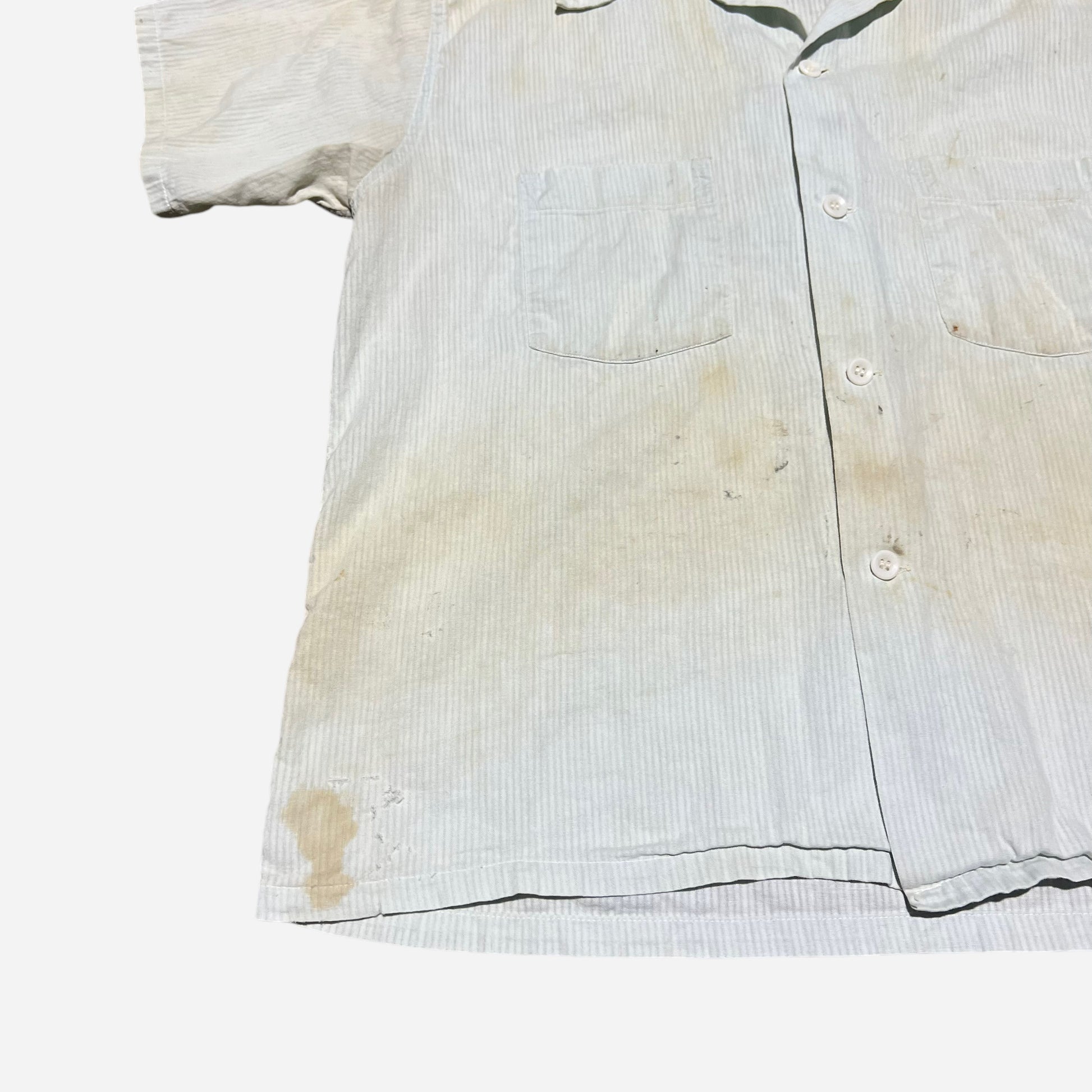 1950s Light blue cotton striped loop collar shirt (M)