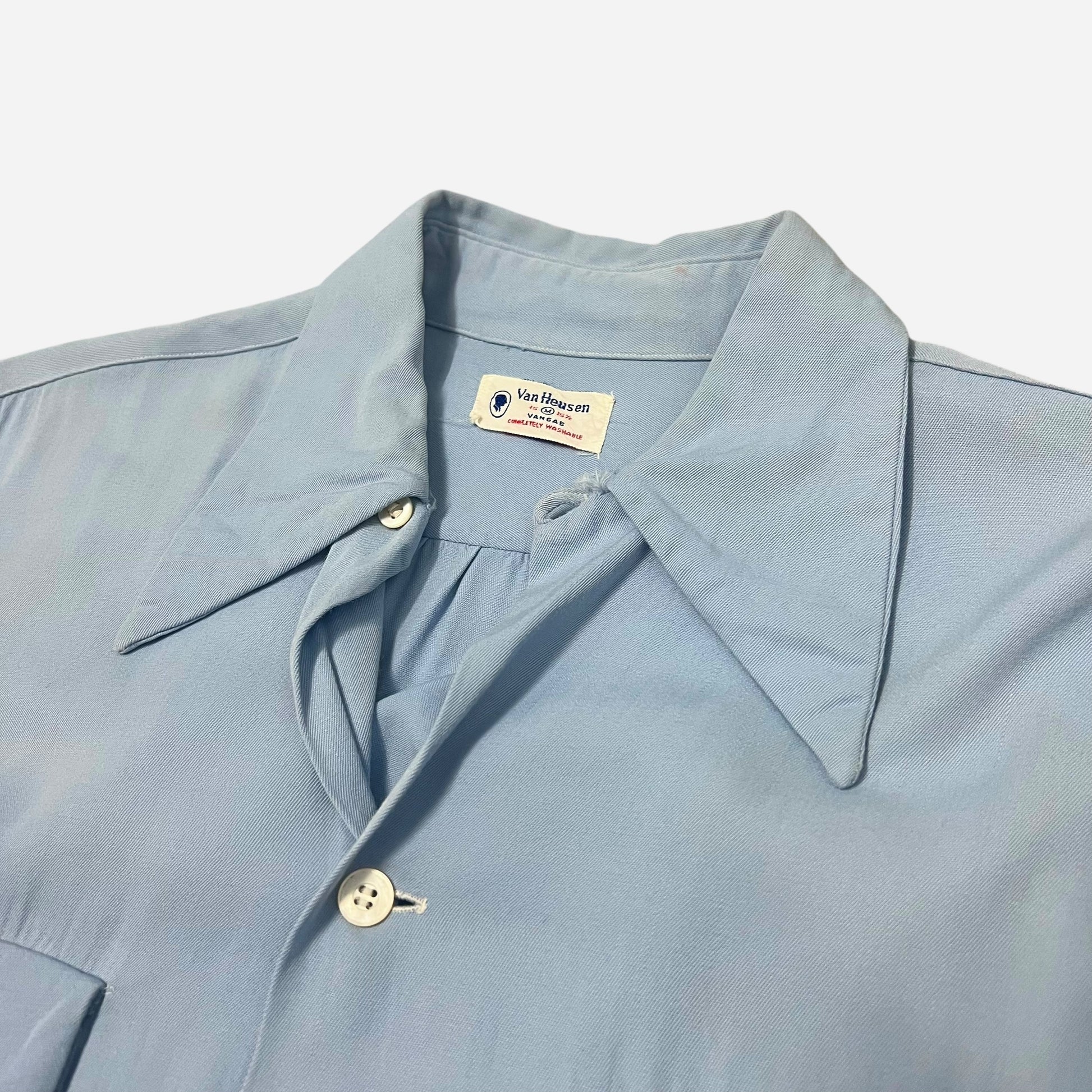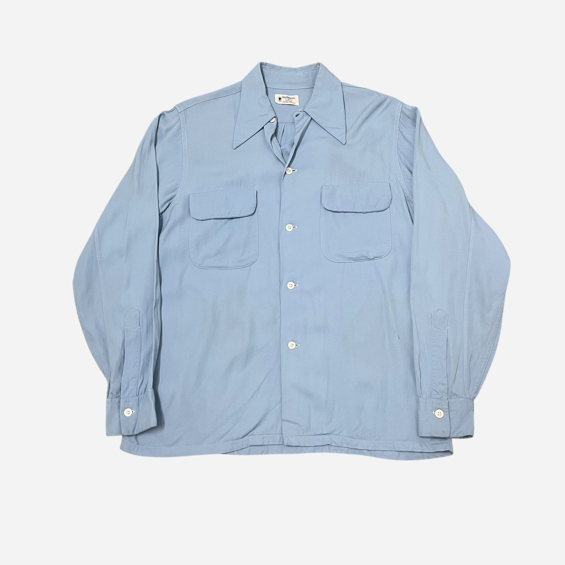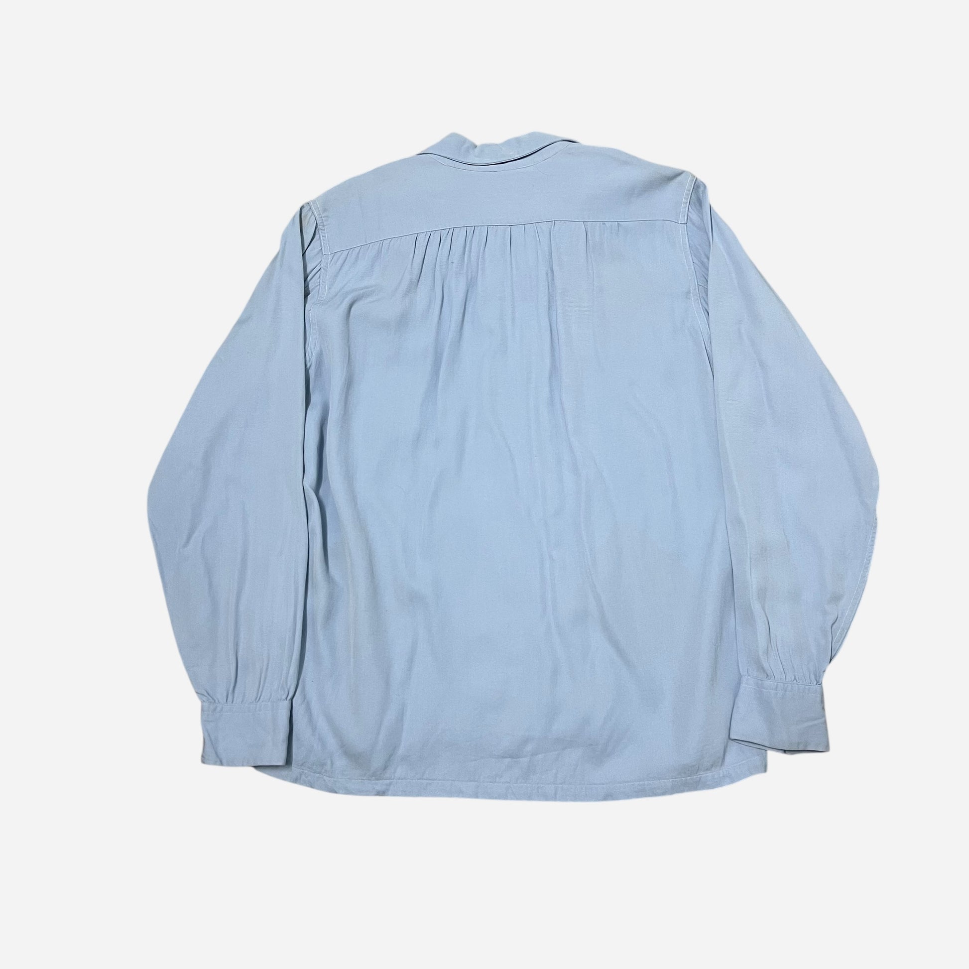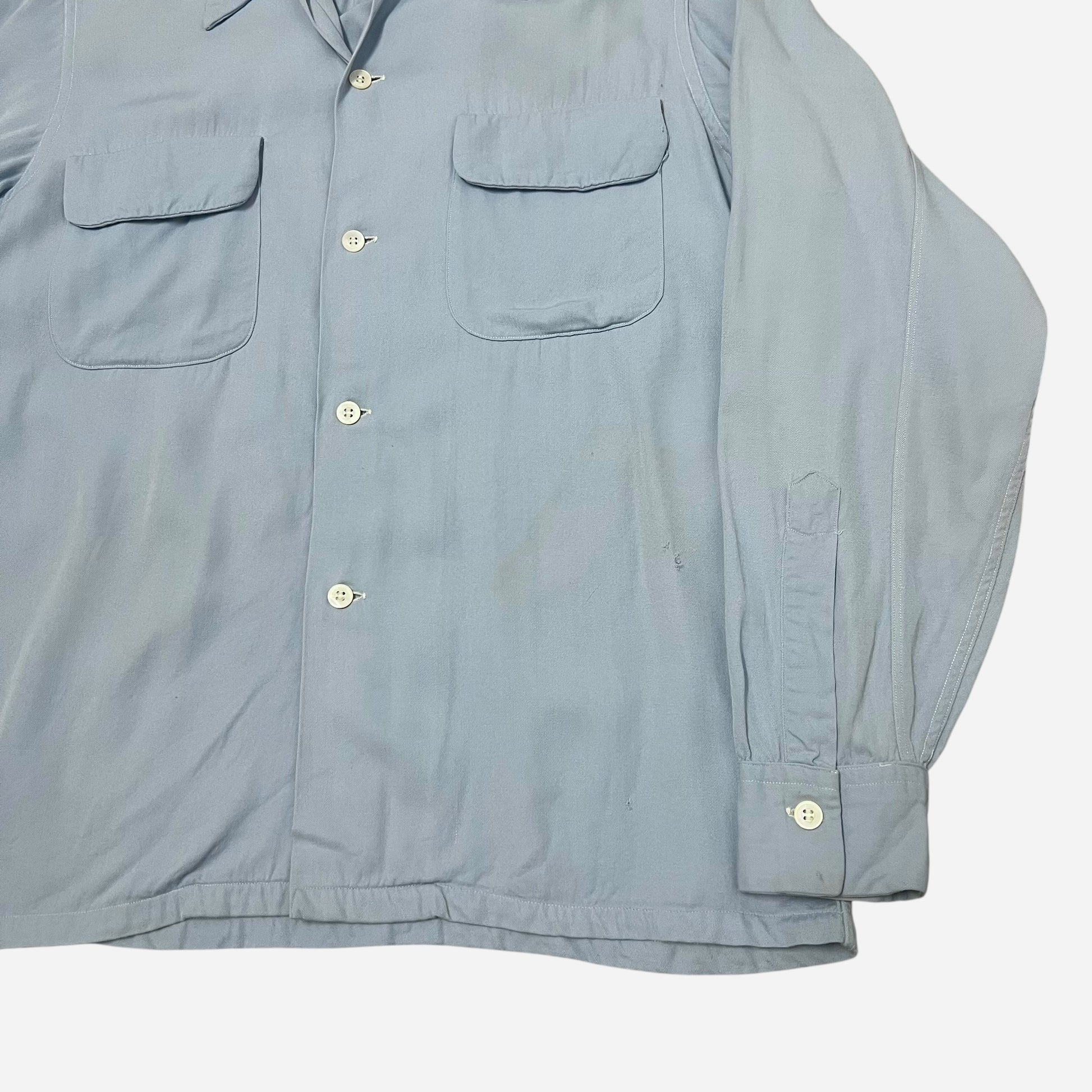 1950s Light blue rayon vangab flap pocket loop collar shirt (M/L)
