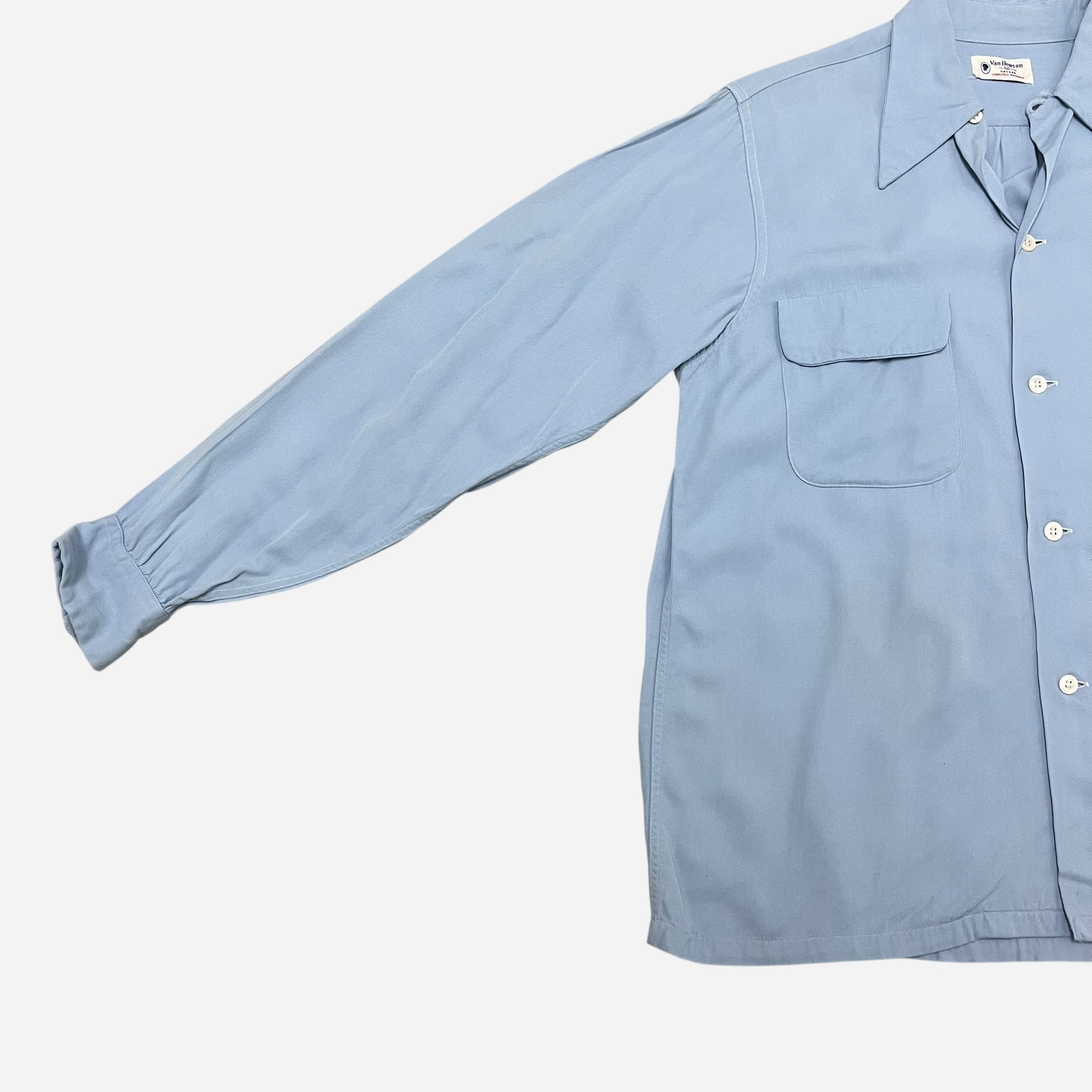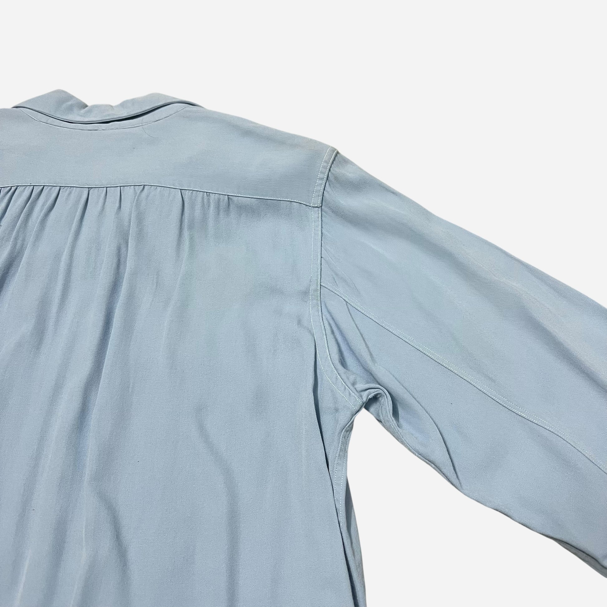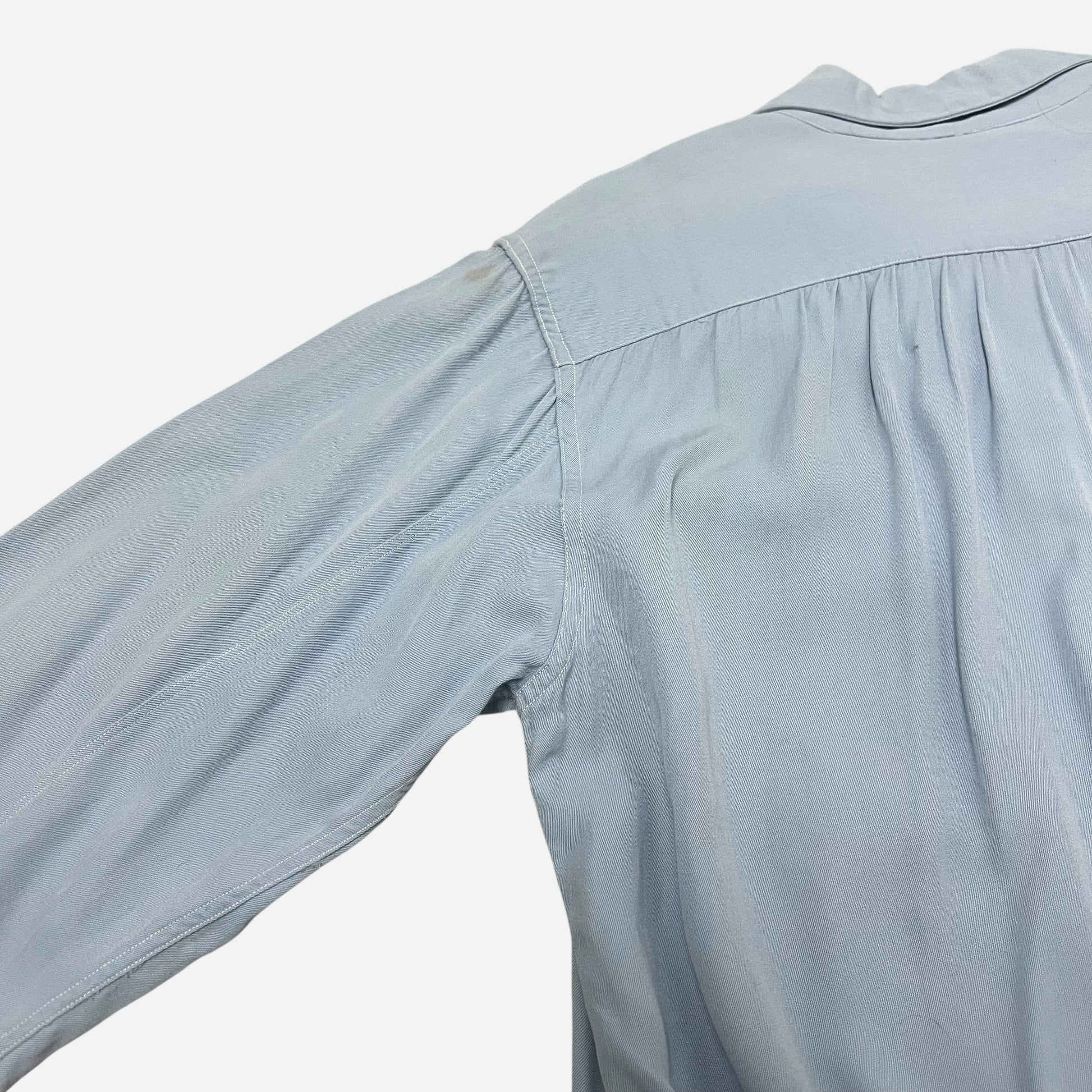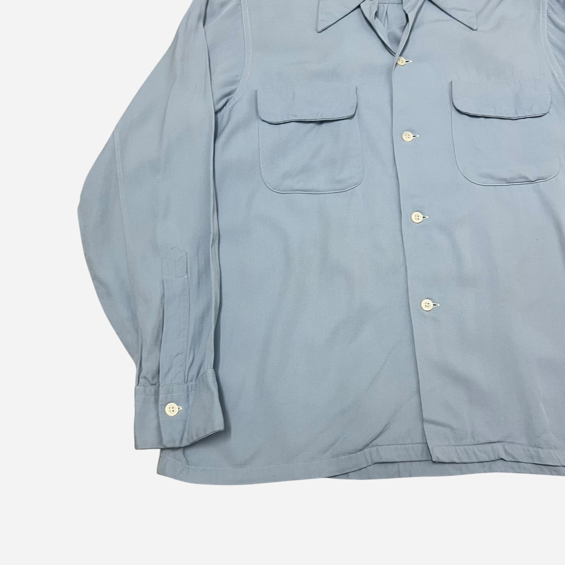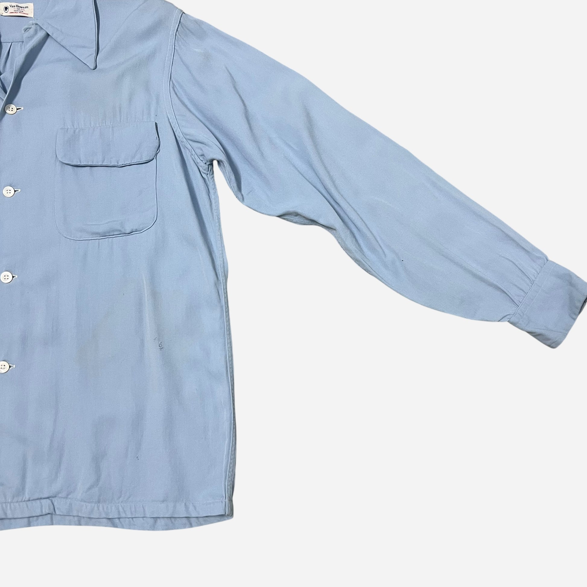 1950s Light blue rayon vangab flap pocket loop collar shirt (M/L)