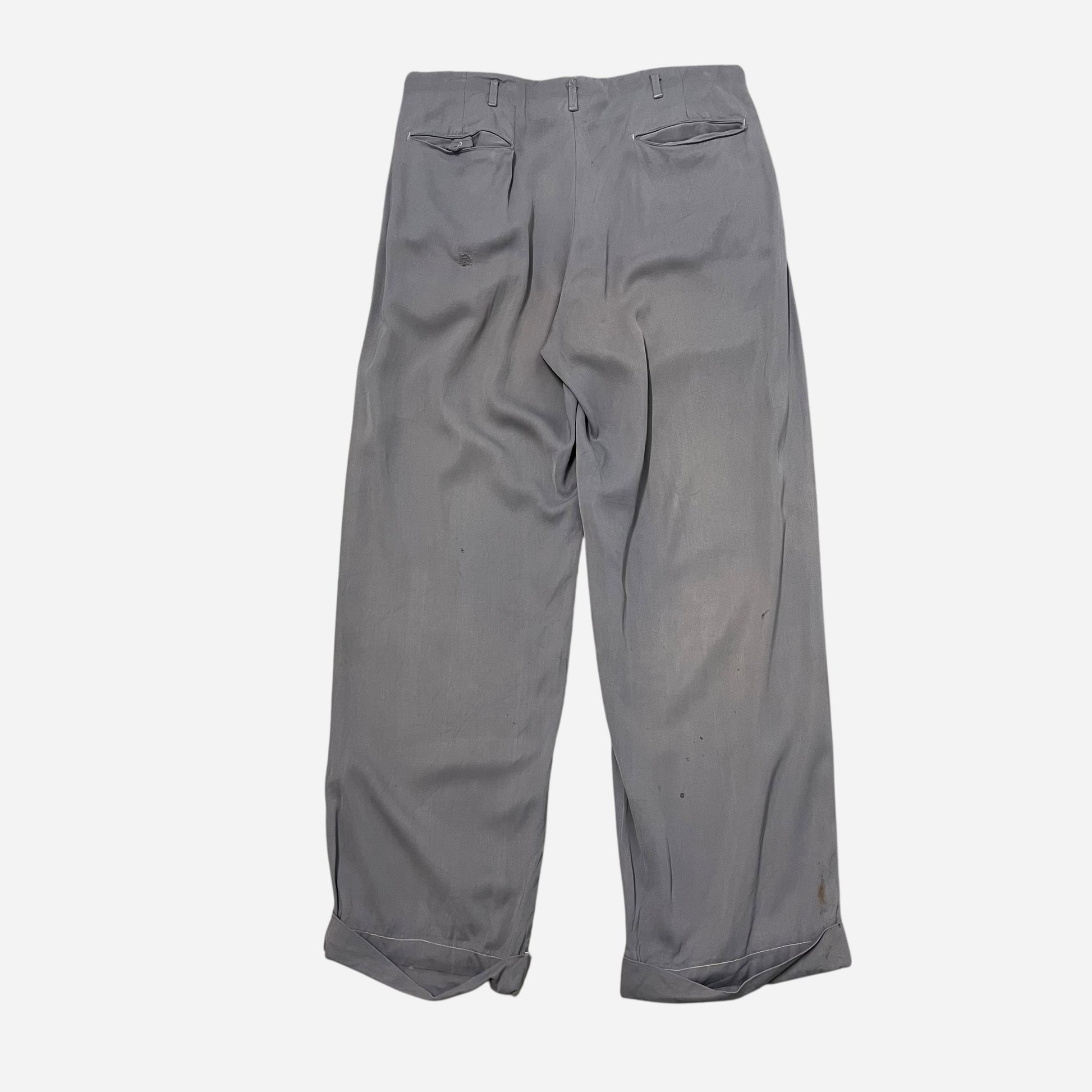 1950s Light purple rayon pleated drop loop pants (31w)