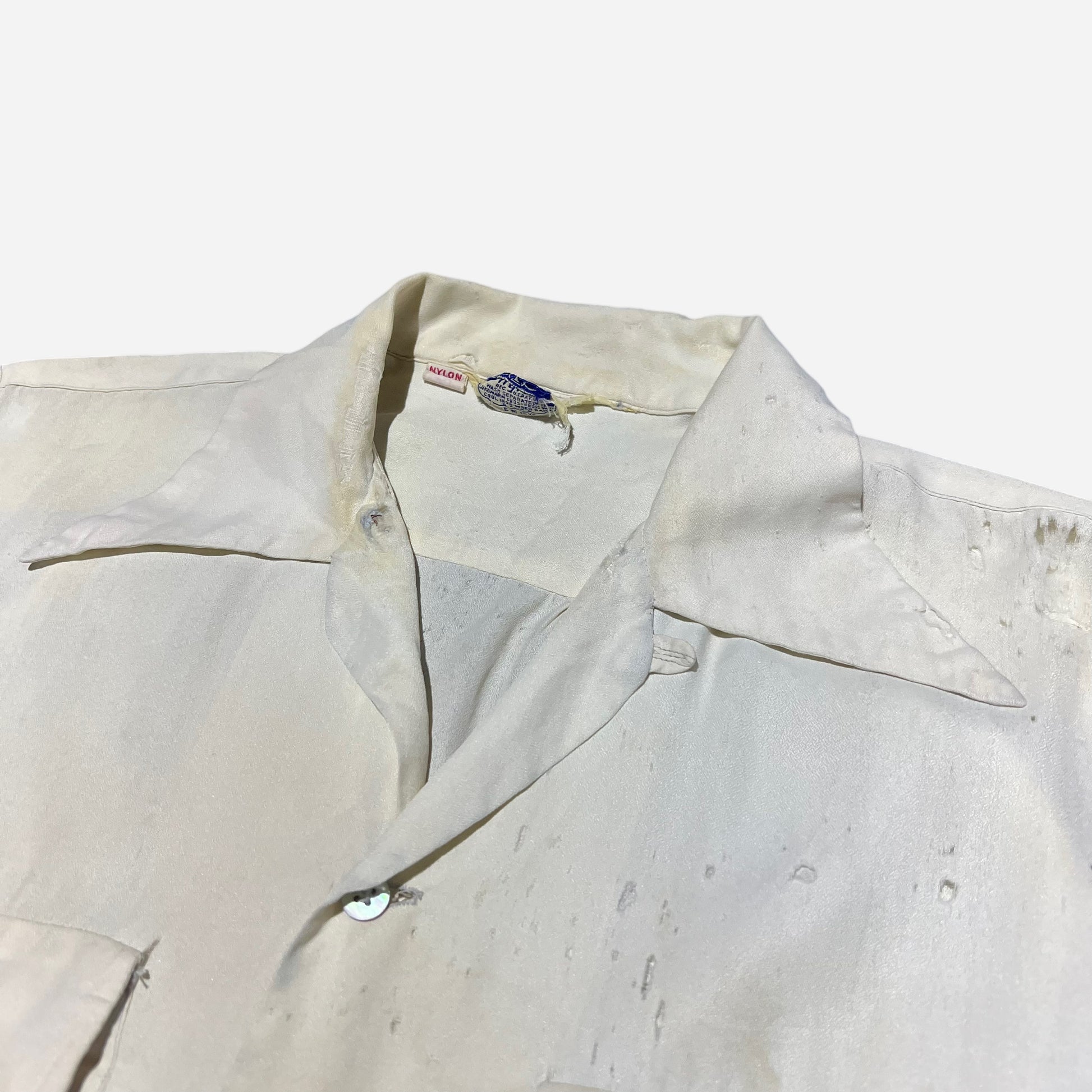1950s Pilgrim white nylon loop collar shirt (M)