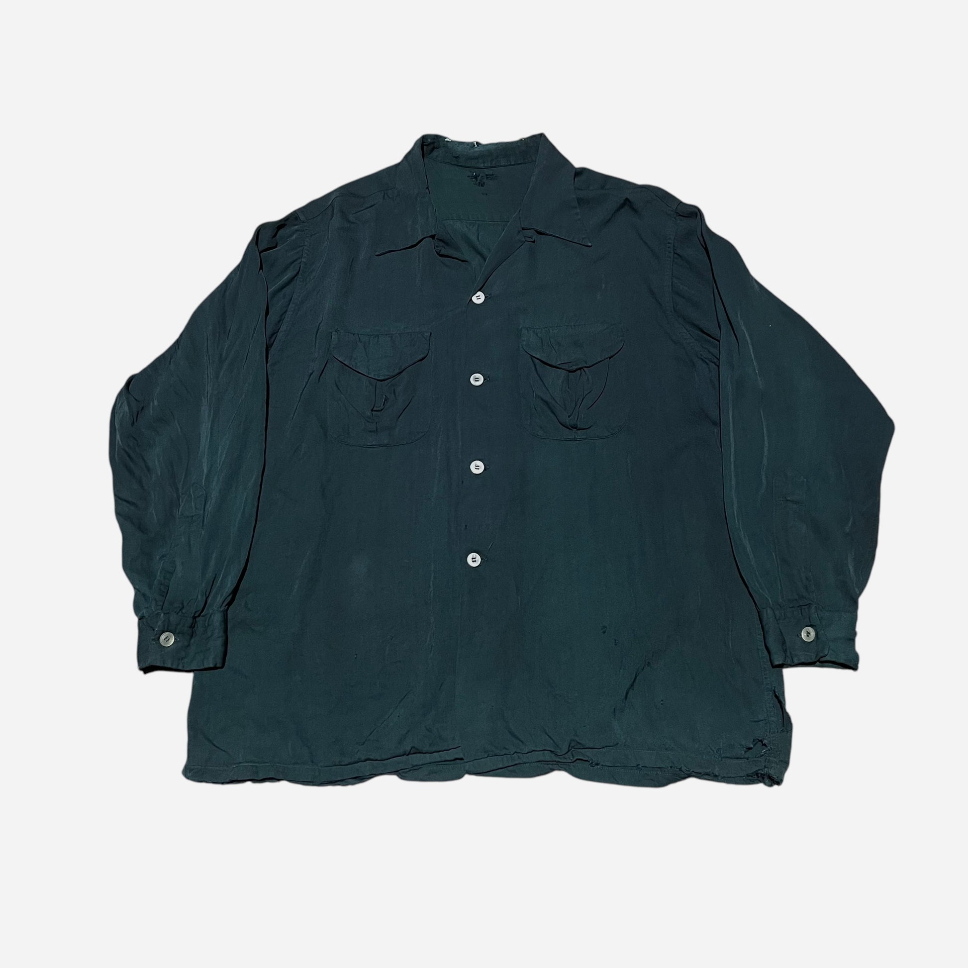 1950s Pine green light rayon loop collar shirt (L/XL)