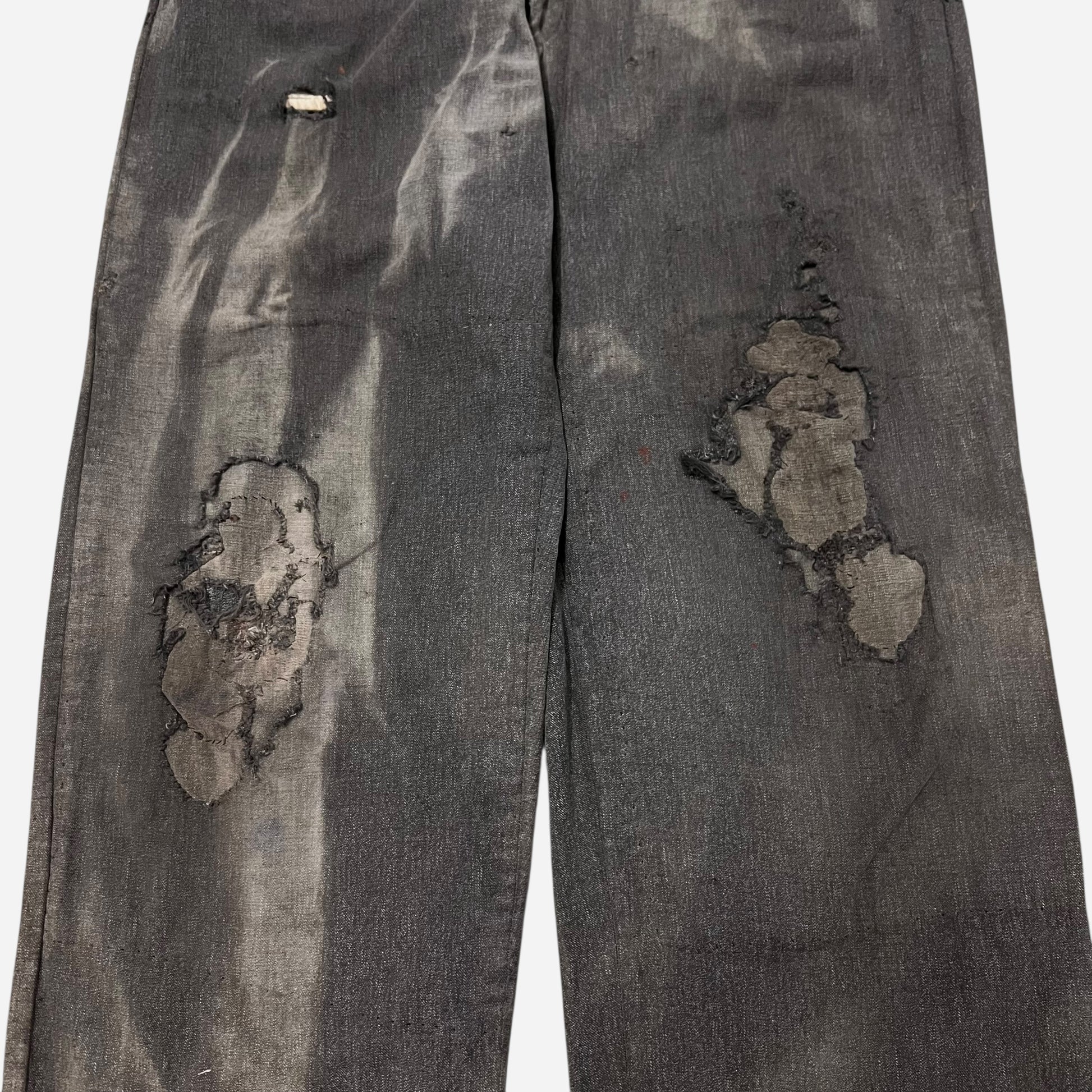 1950s Power House heavily repaired salt & pepper cotton sail cloth work pants (33w)