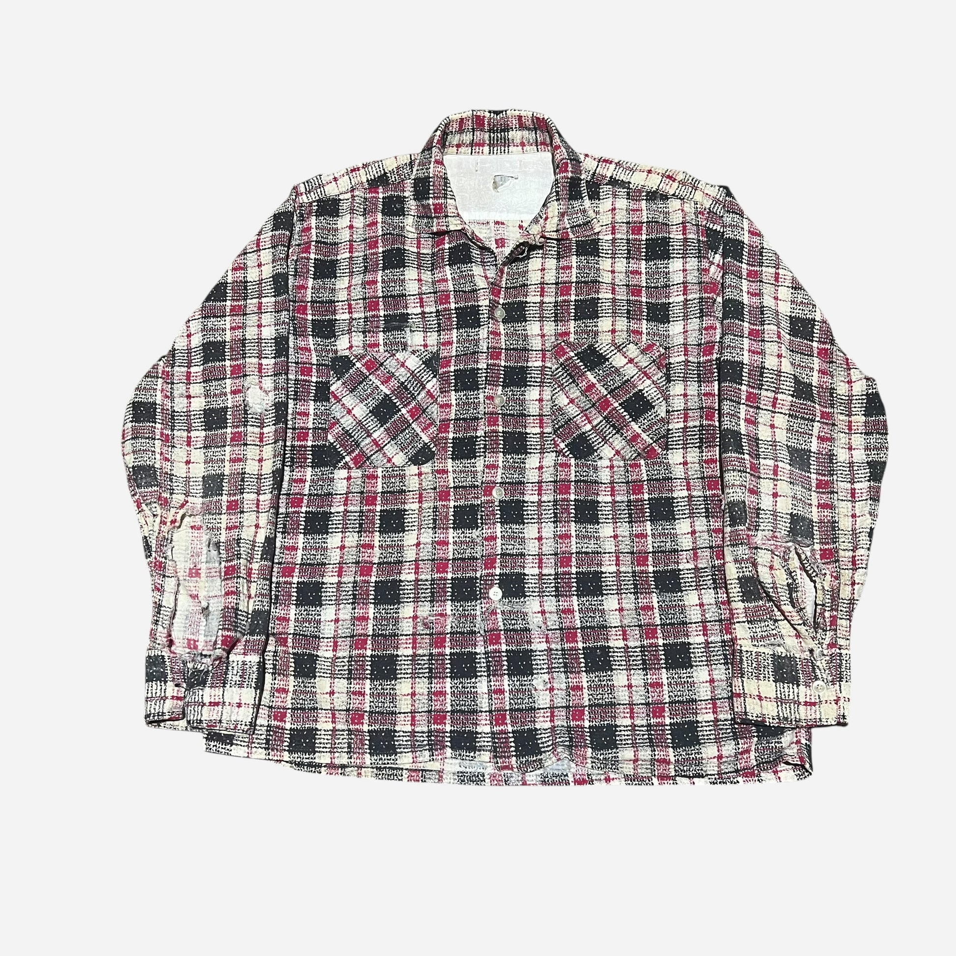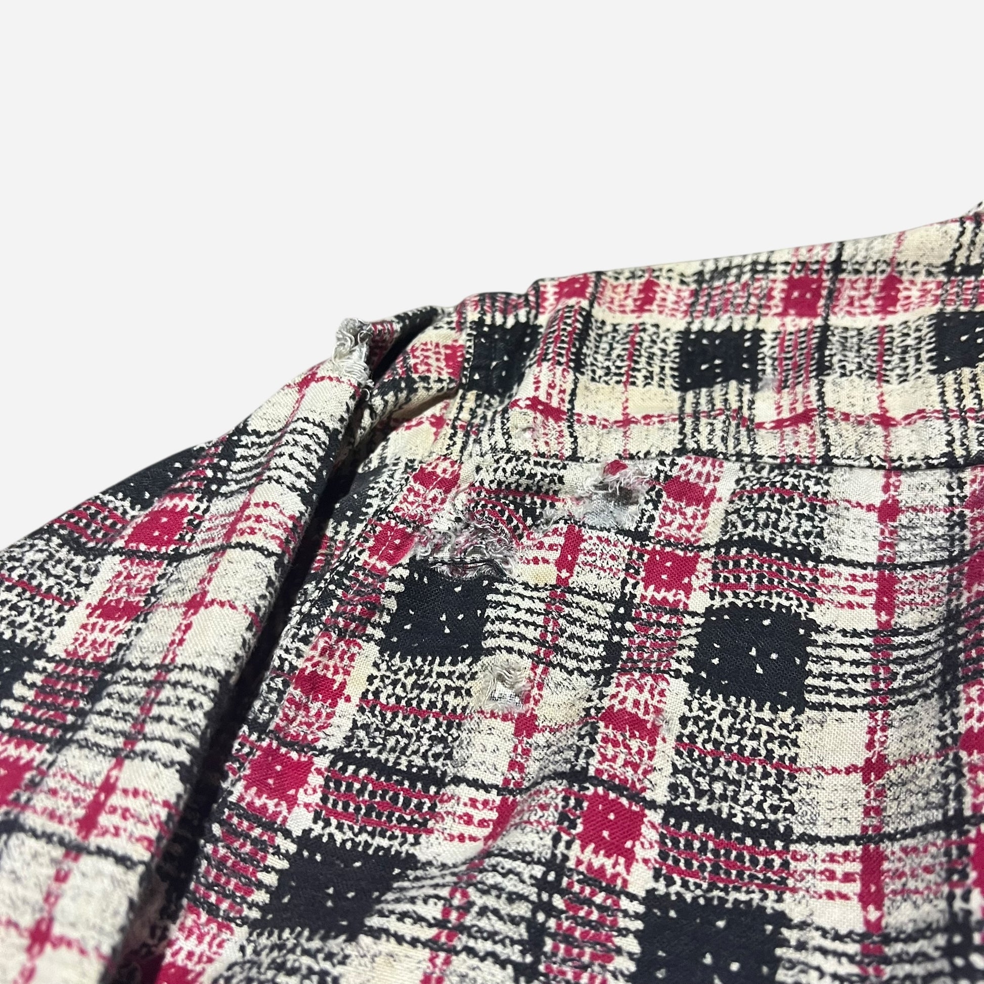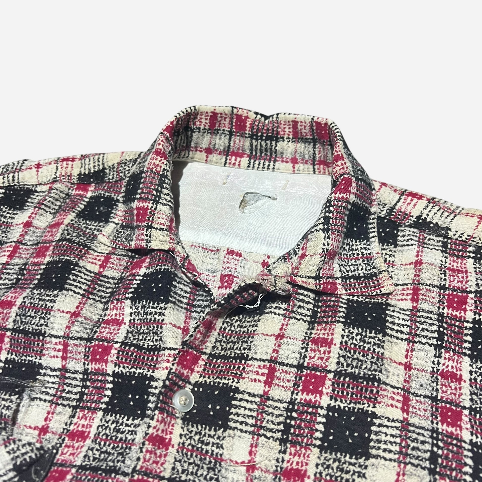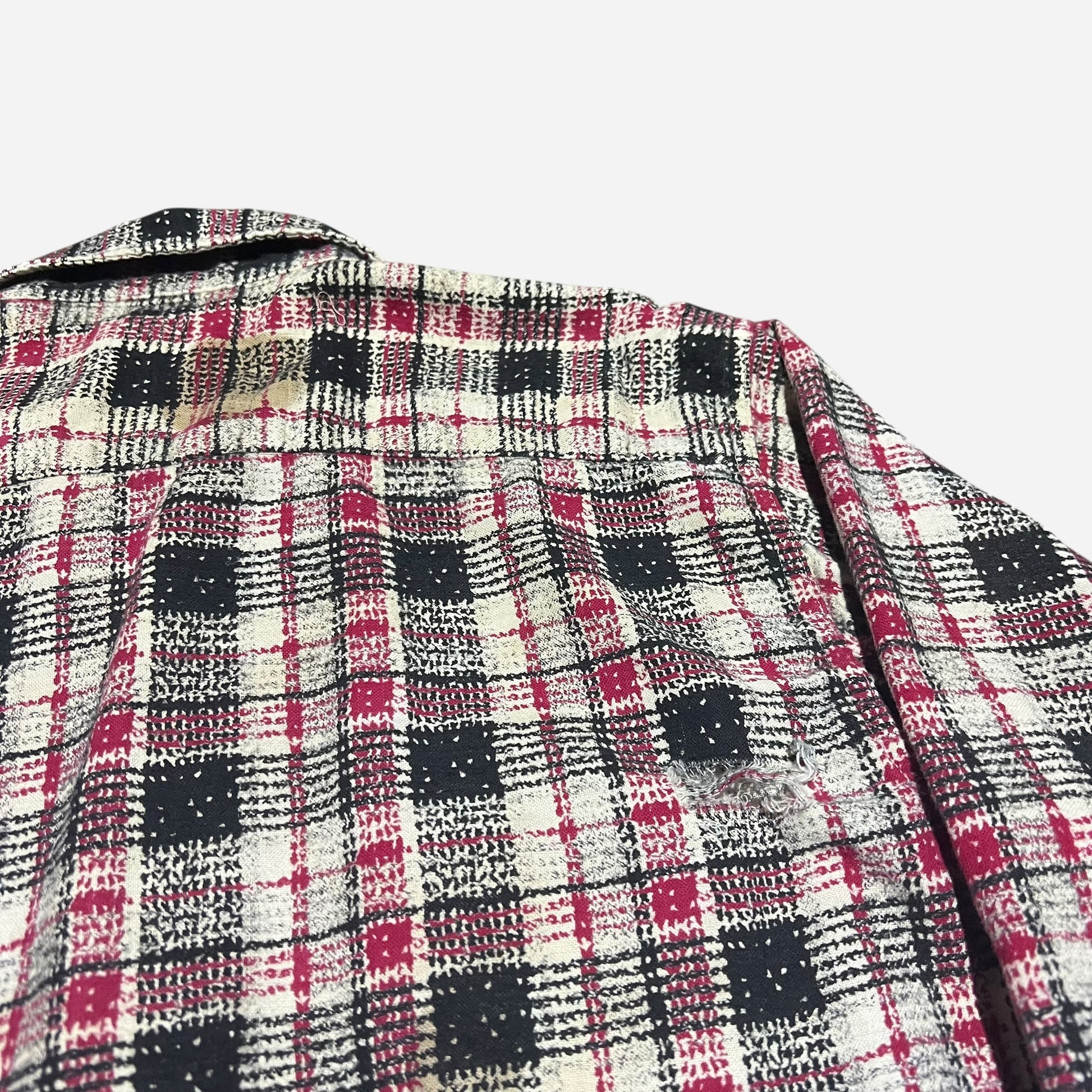 1950s Red and black cotton printed loop collar shirt flannel (M)
