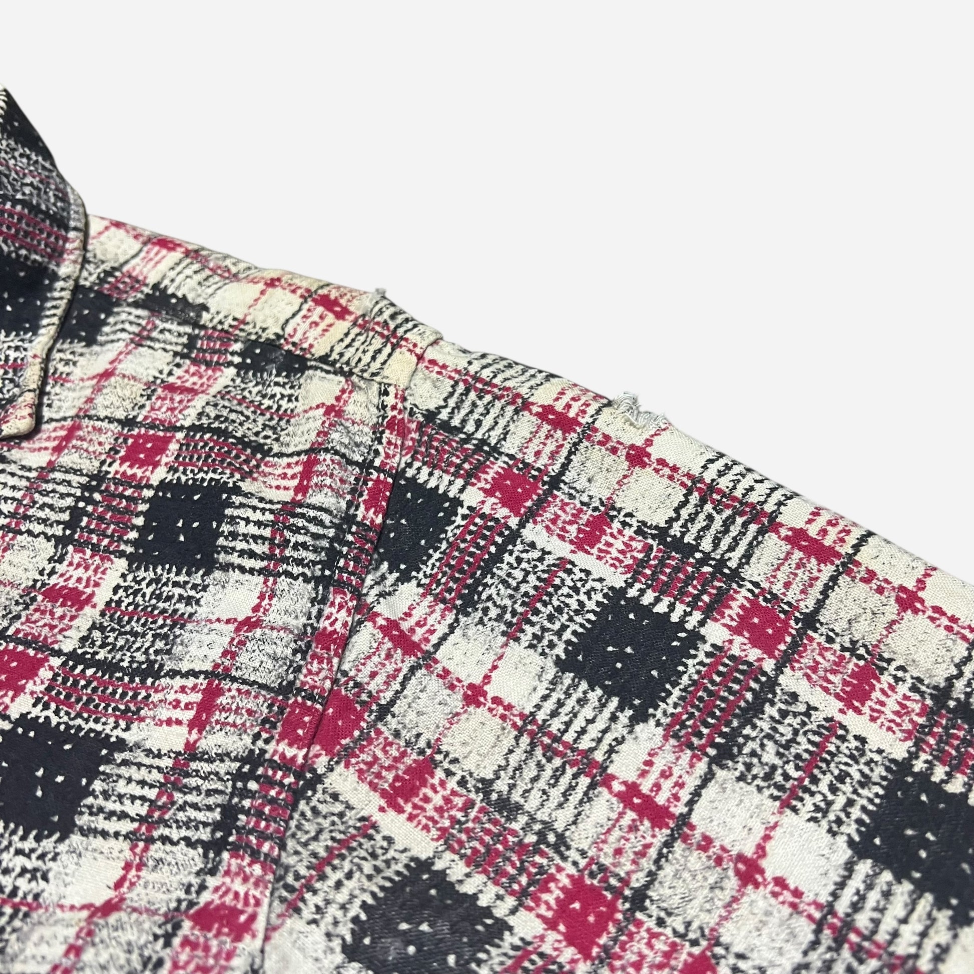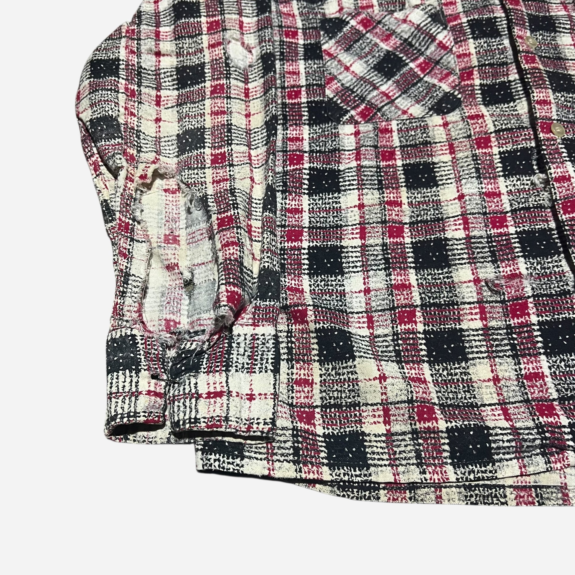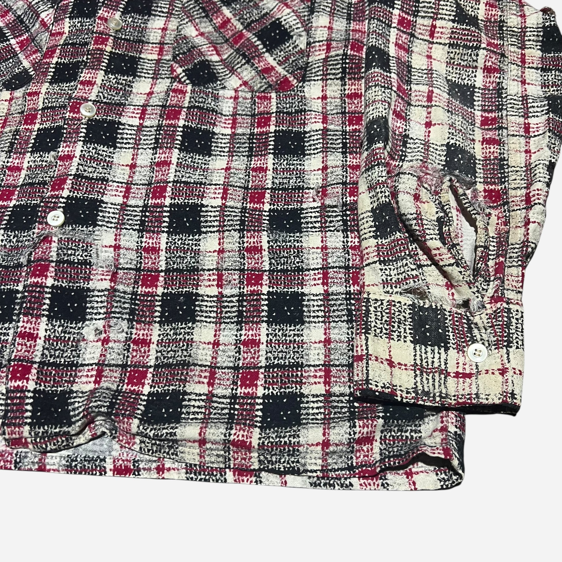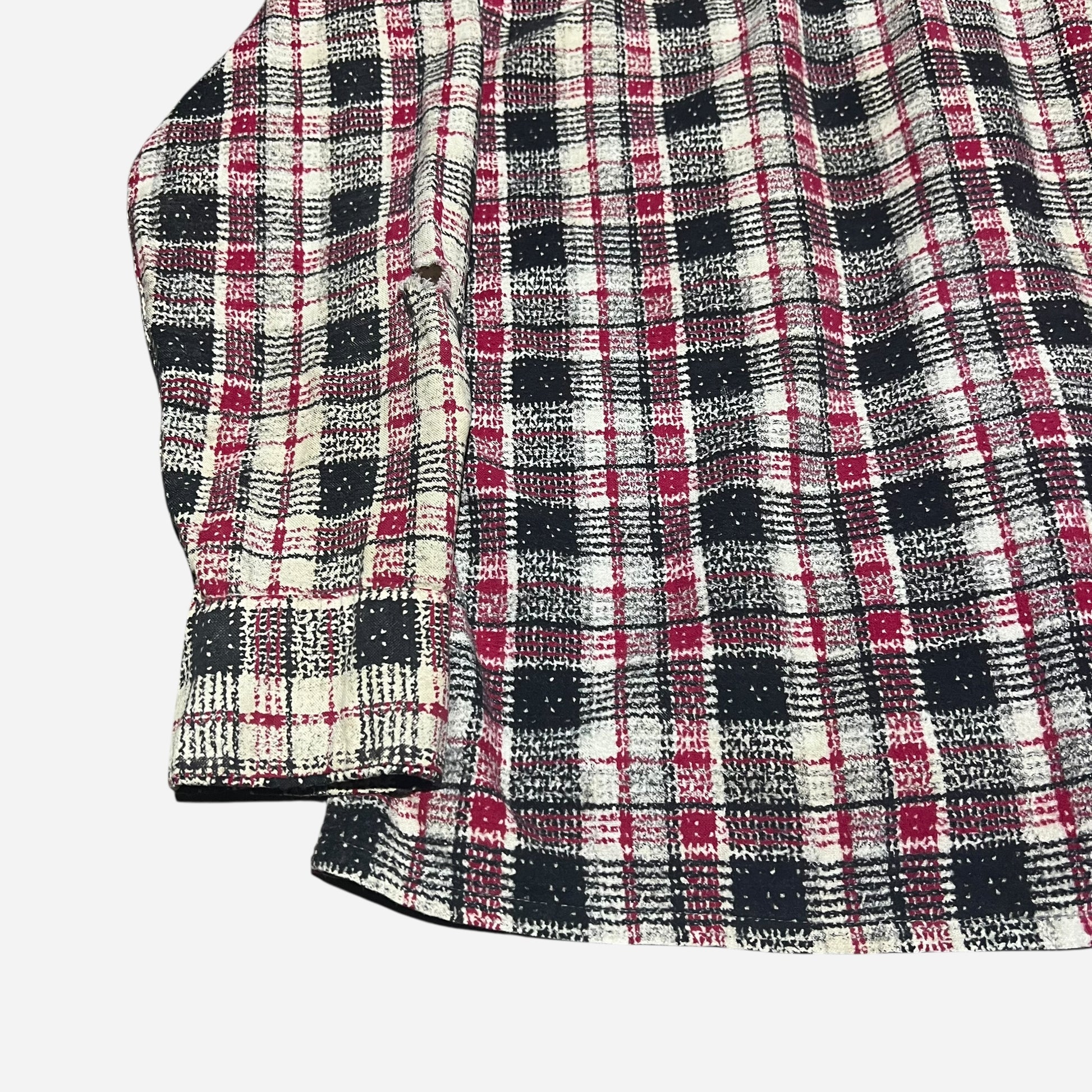 1950s Red and black cotton printed loop collar shirt flannel (M)