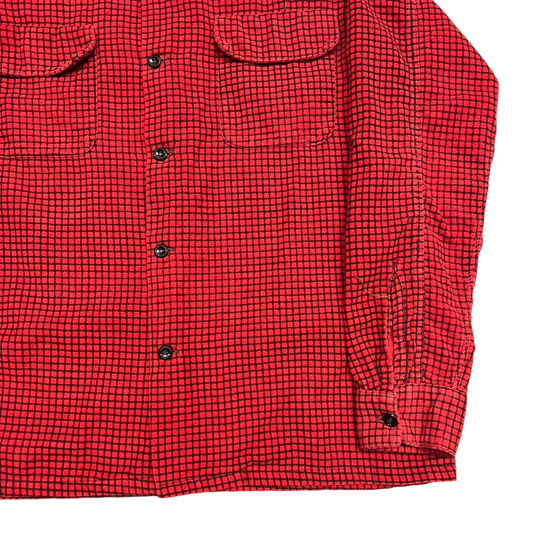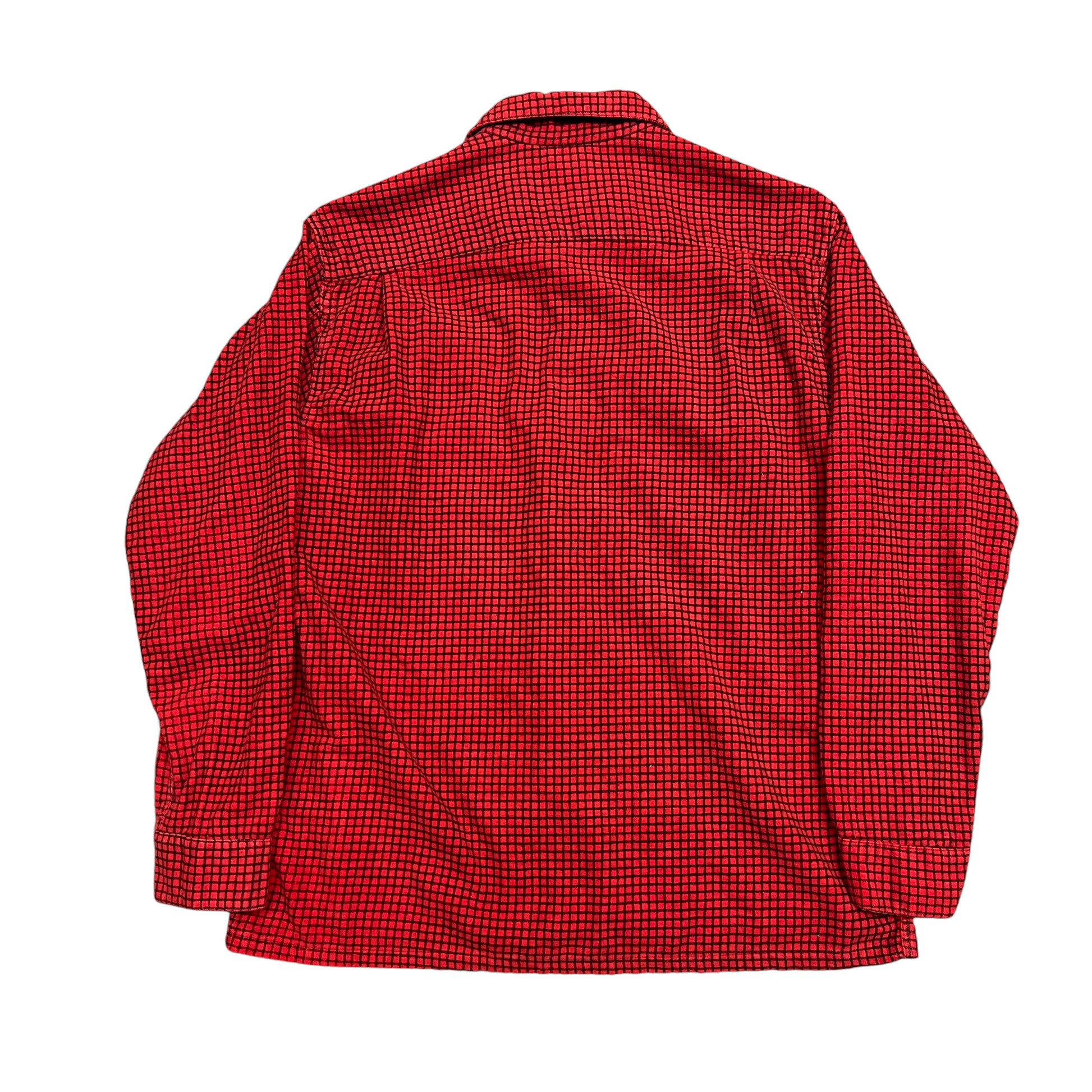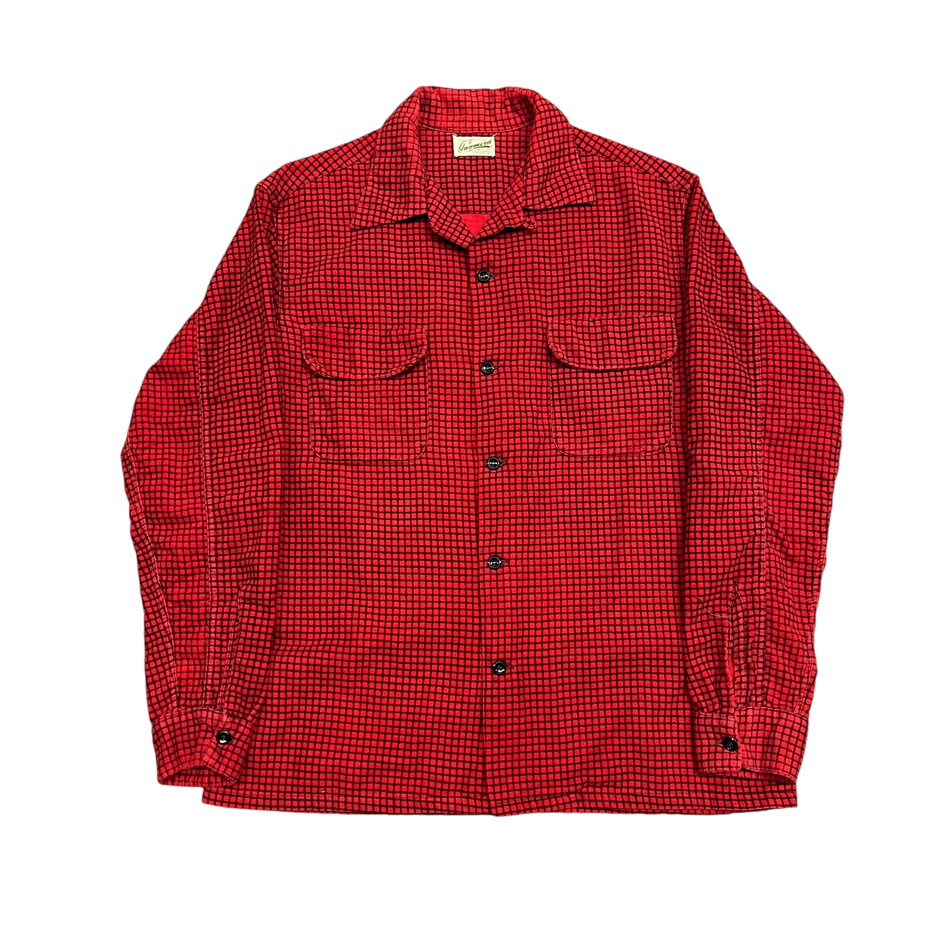 1950s Red plaid cotton printed loop collar shirt flannel (M)