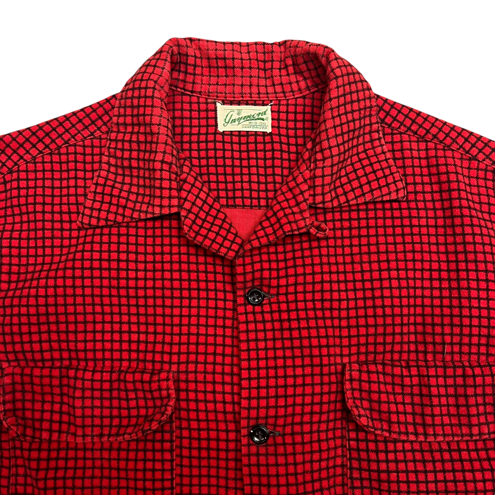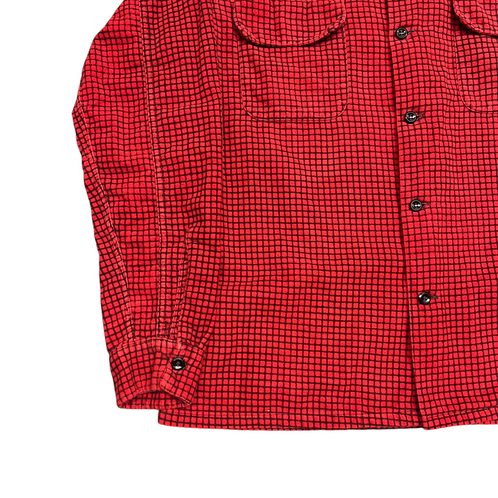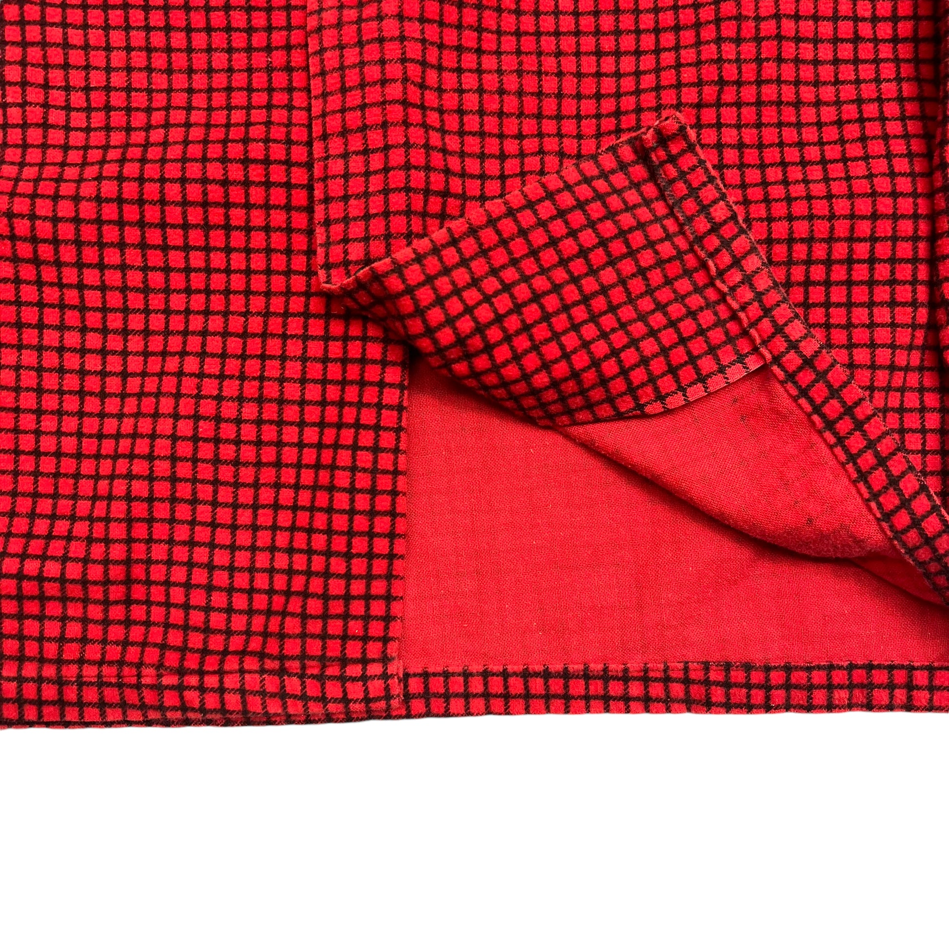 1950s Red plaid cotton printed loop collar shirt flannel (M)