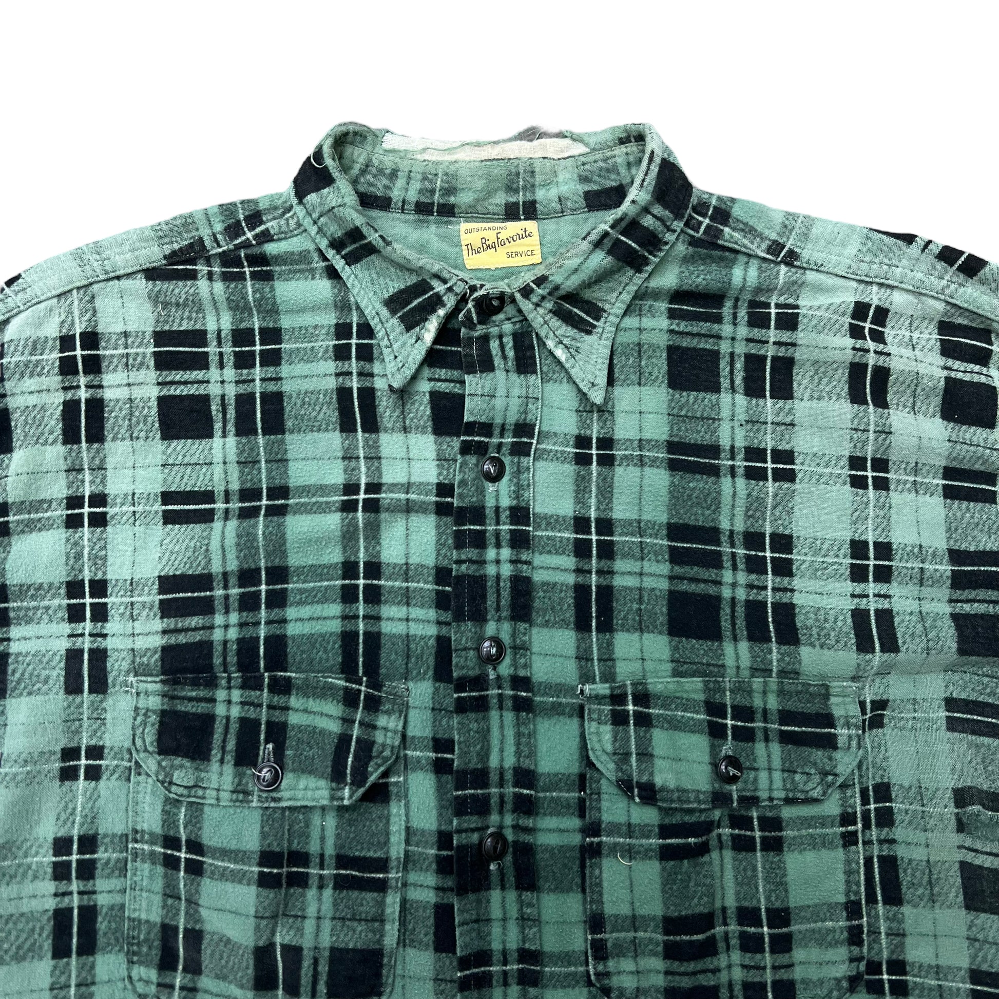 1940s The Big Favorite green plaid cotton flannel shirt (L/XL)
