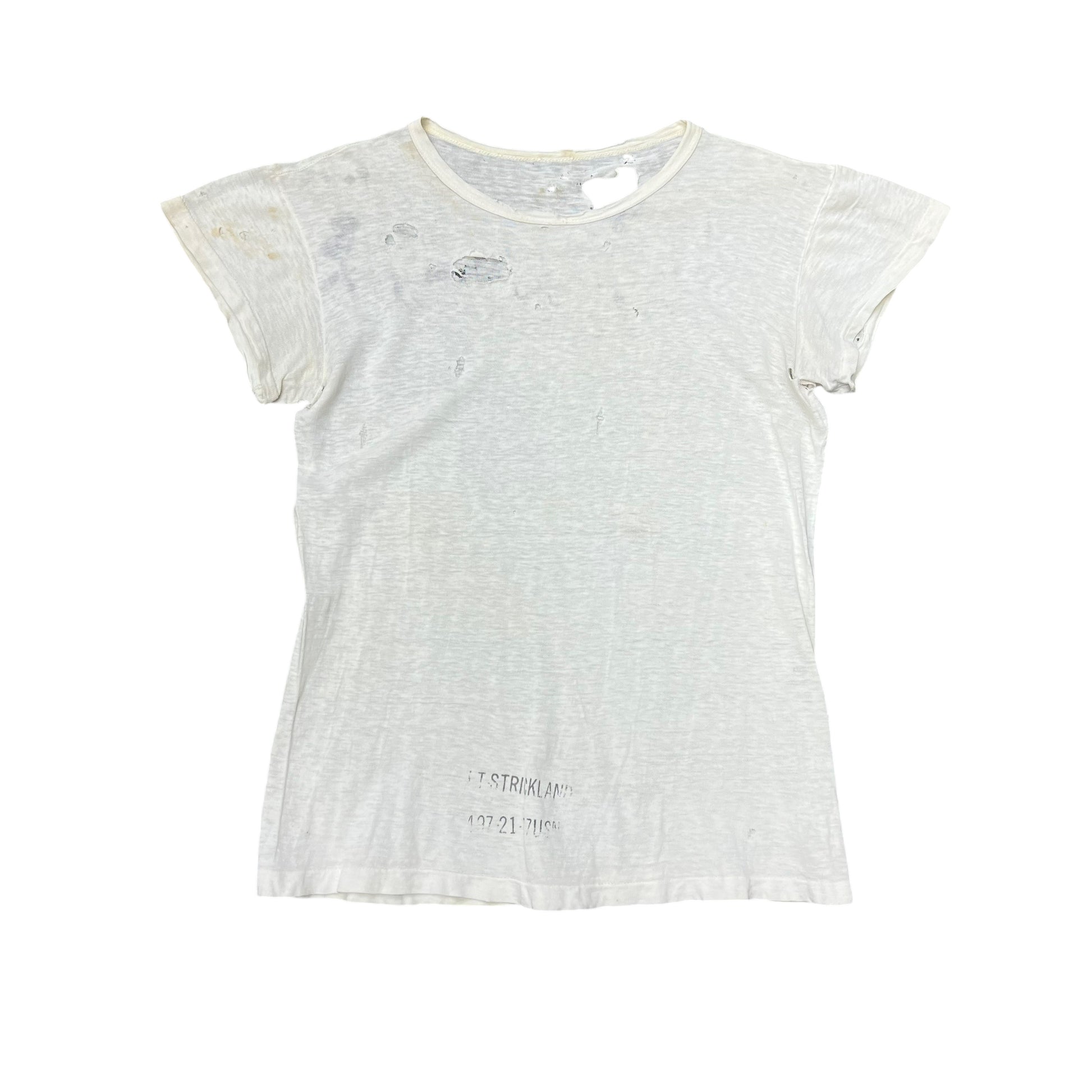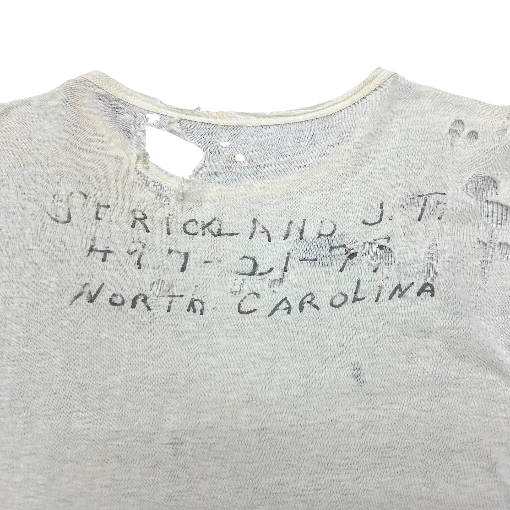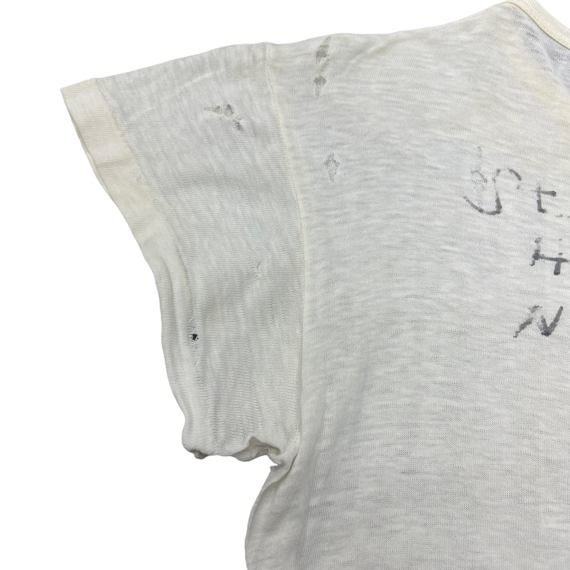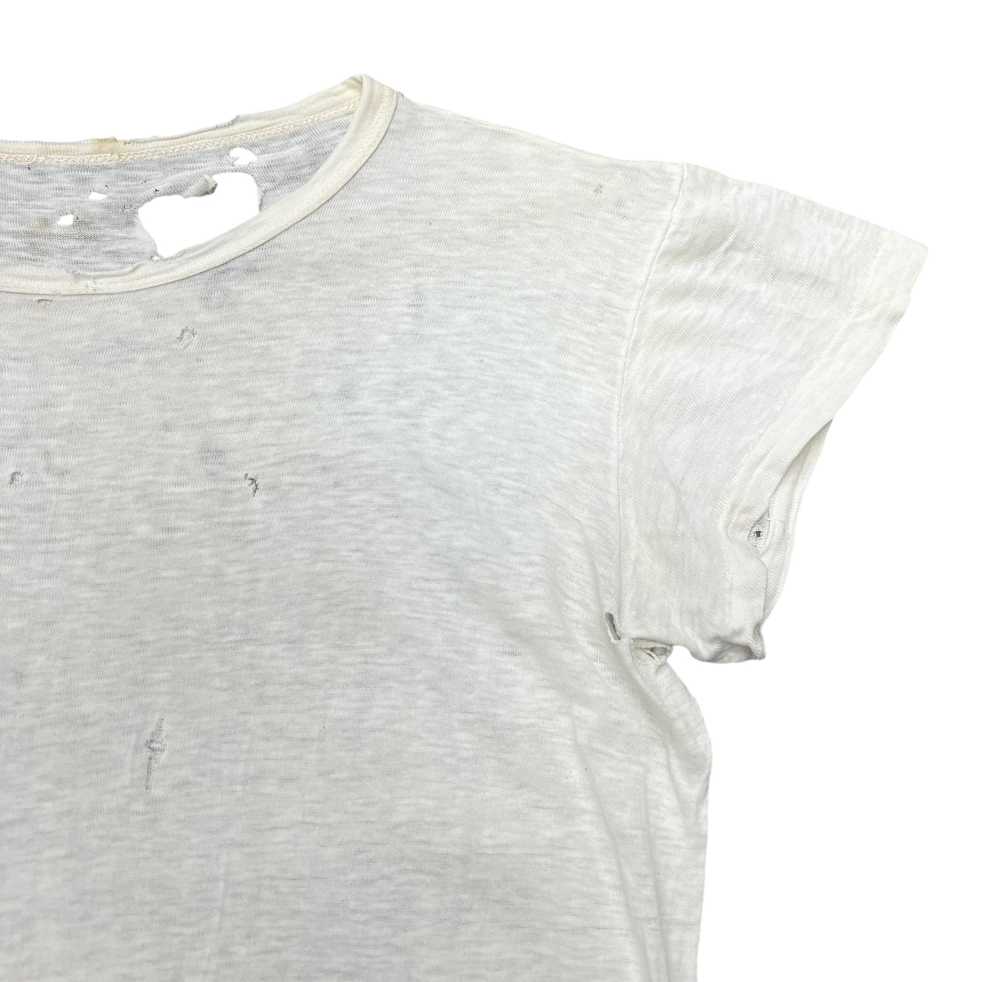 1950s Thrashed USN Korean War stenciled thin white t shirt (M)