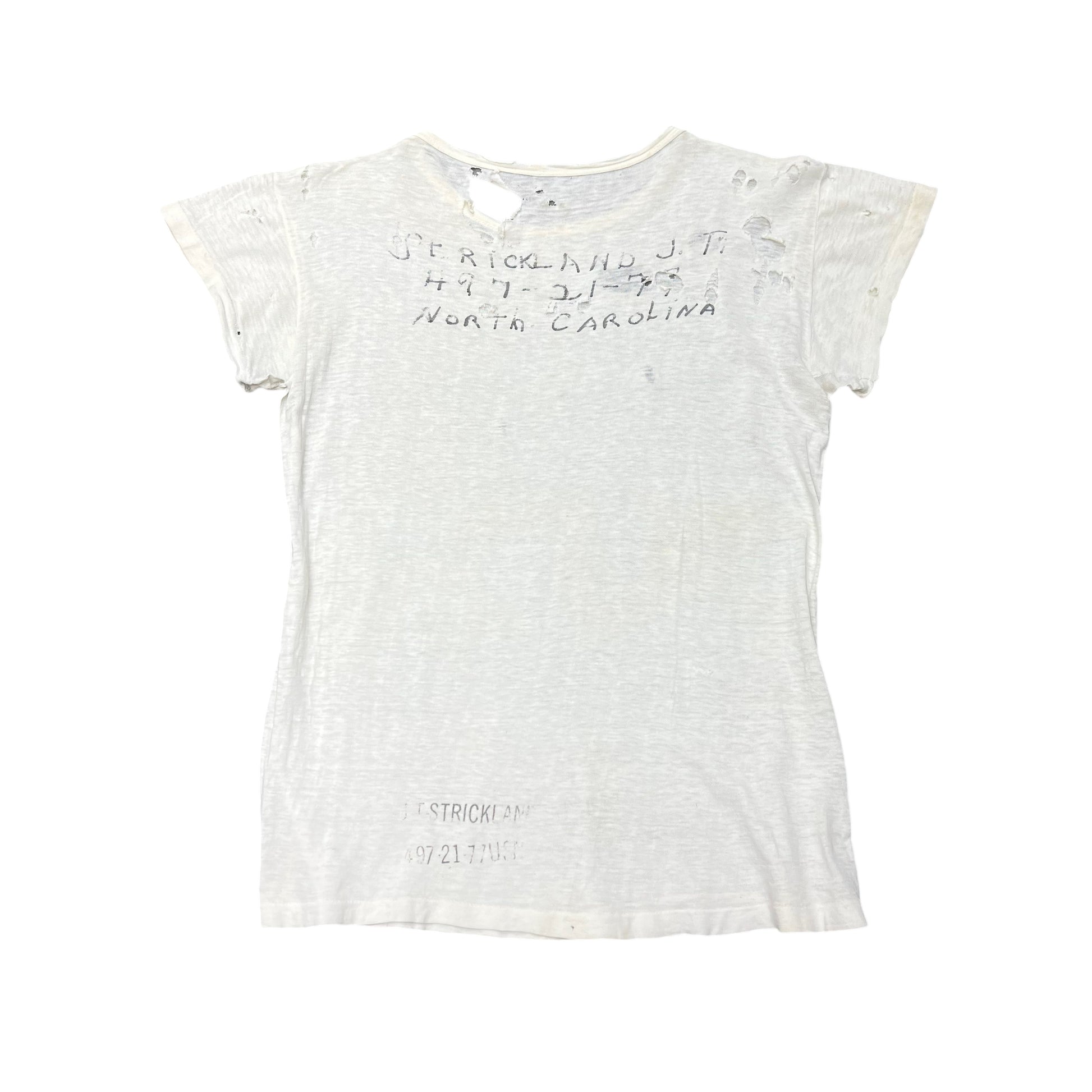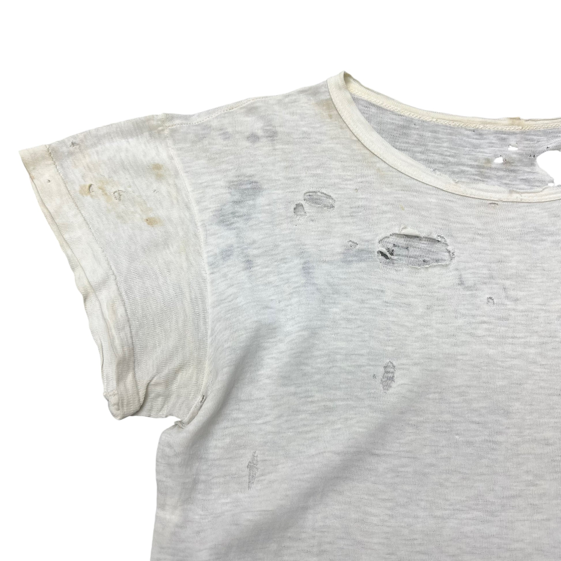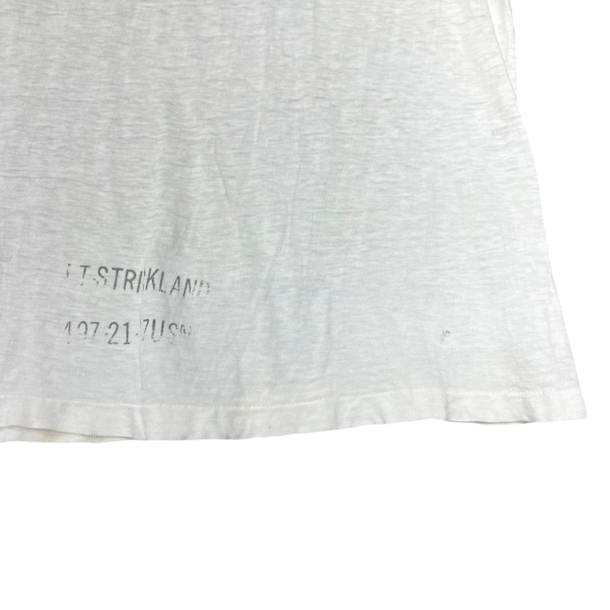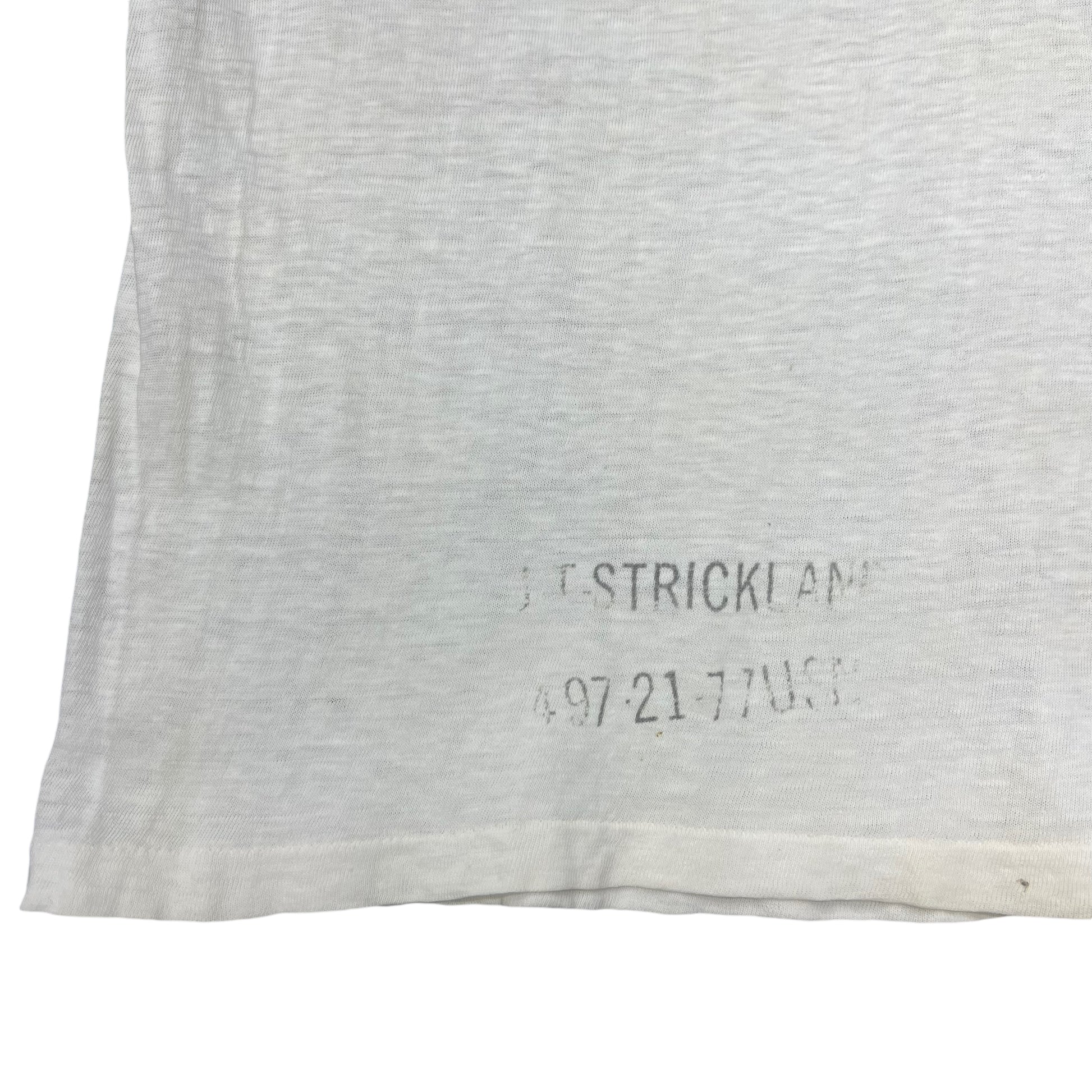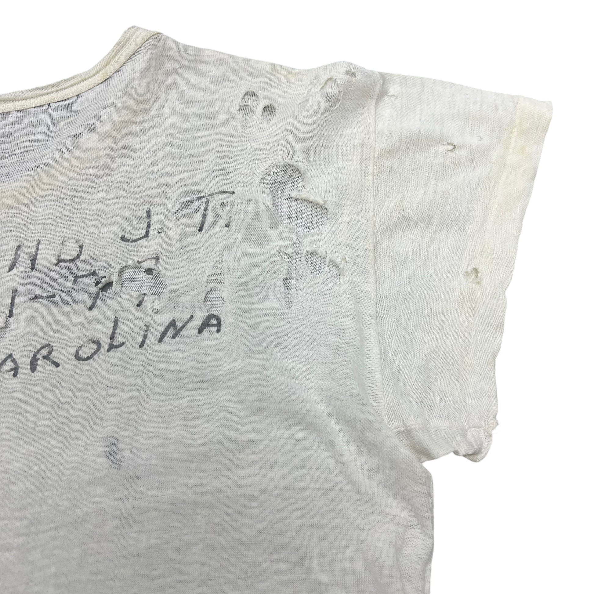 1950s Thrashed USN Korean War stenciled thin white t shirt (M)