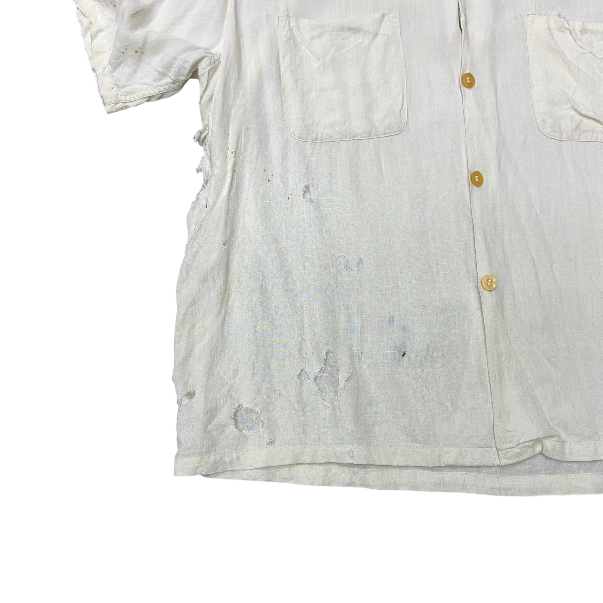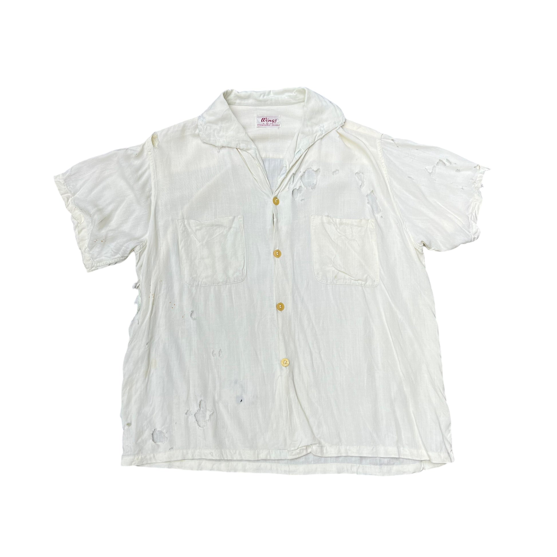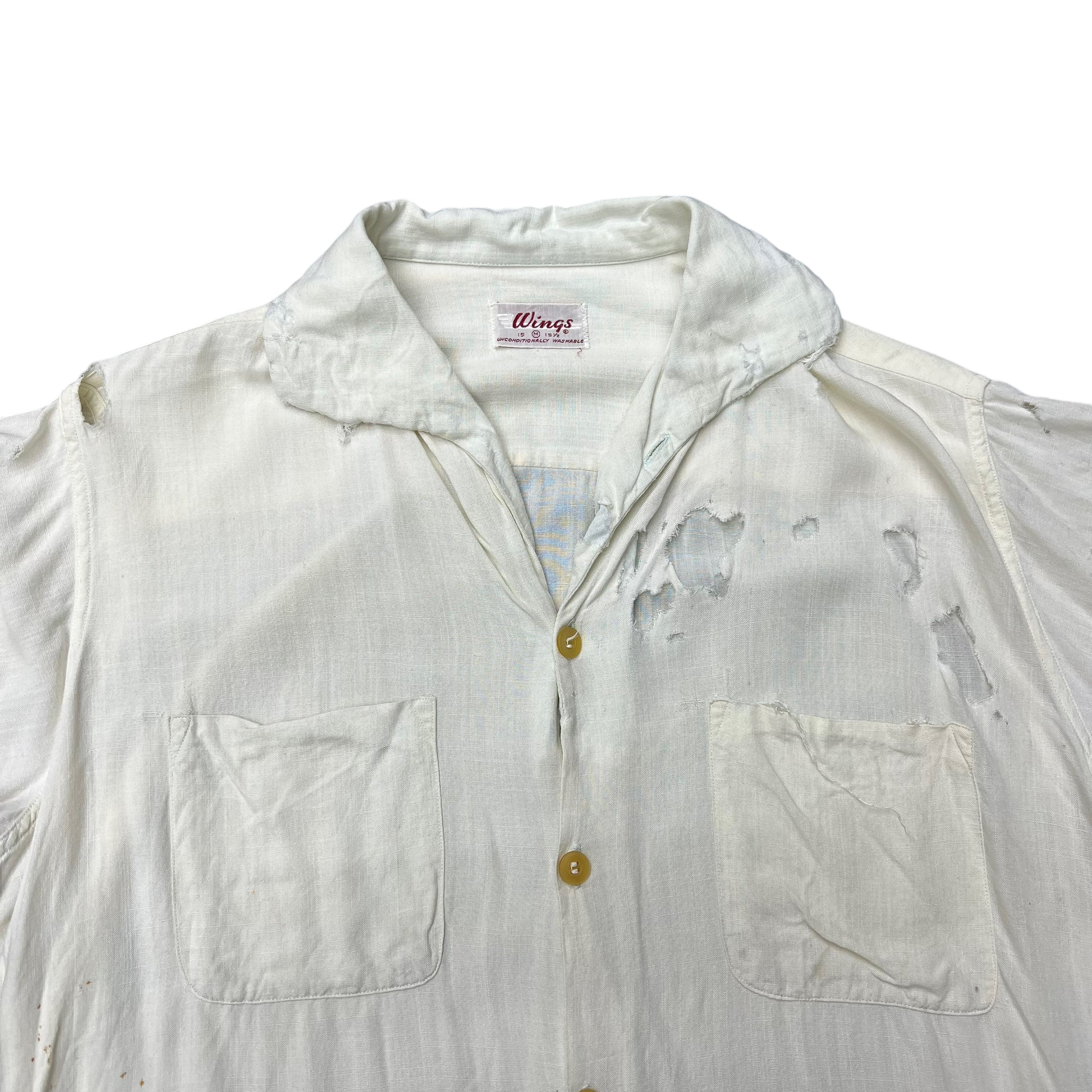 1950s Wings distressed cotton/rayon white cloth shirt (M)