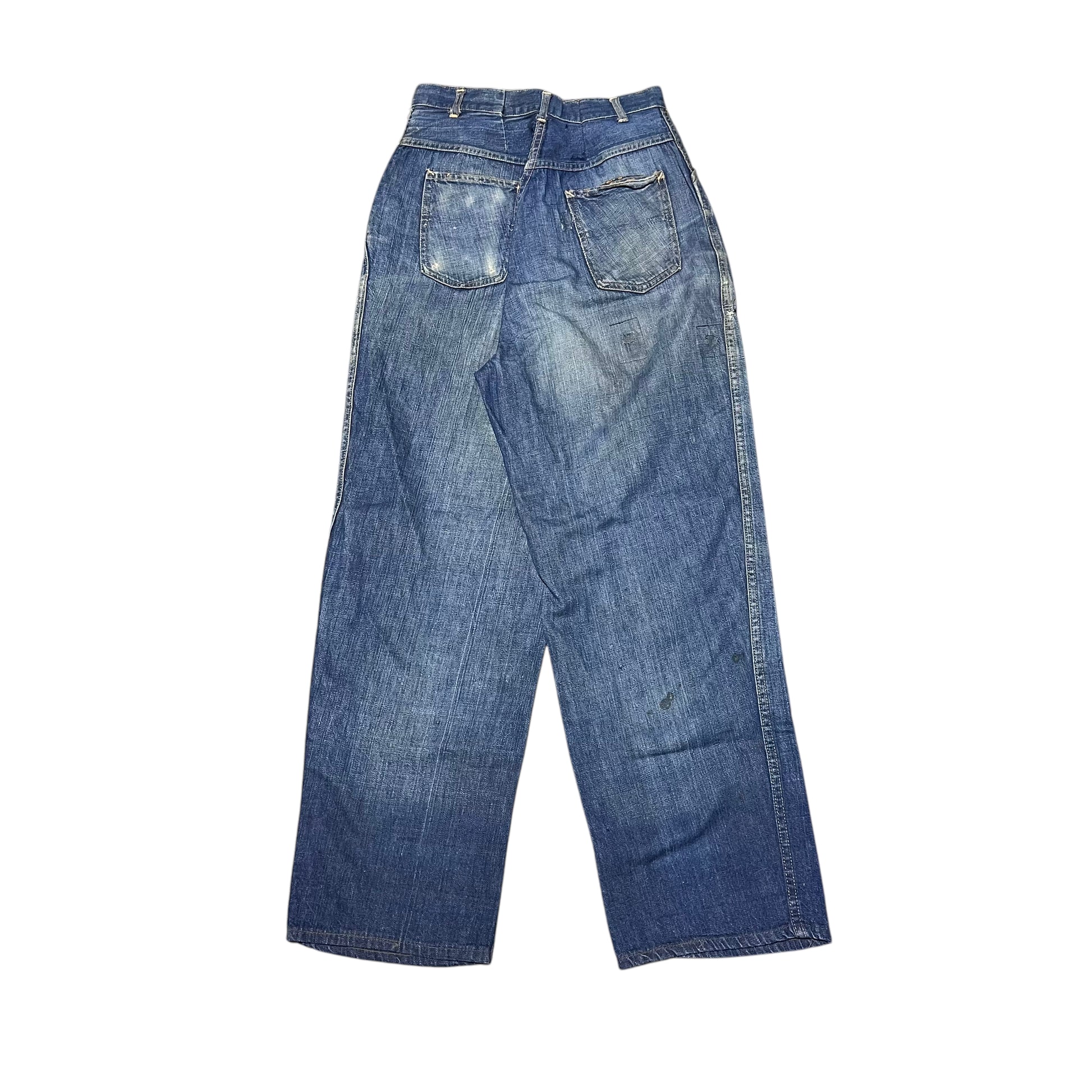 1950s Women’s “Over the Top” dark wash side zip denim jeans (25w)