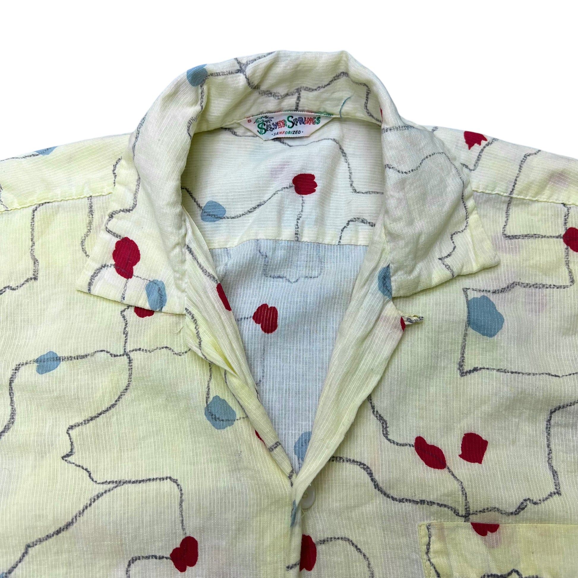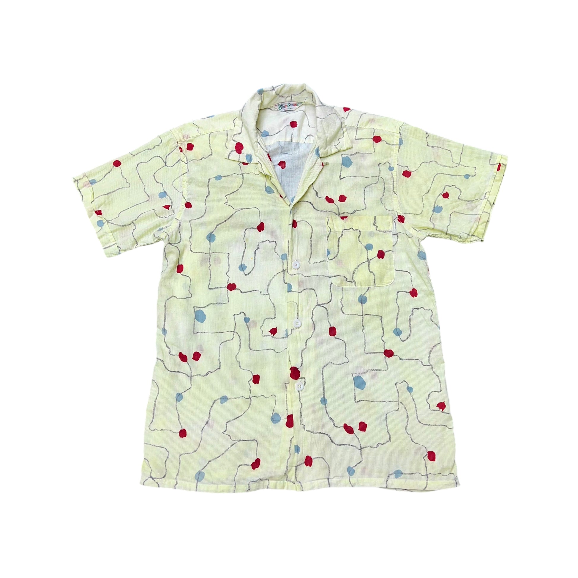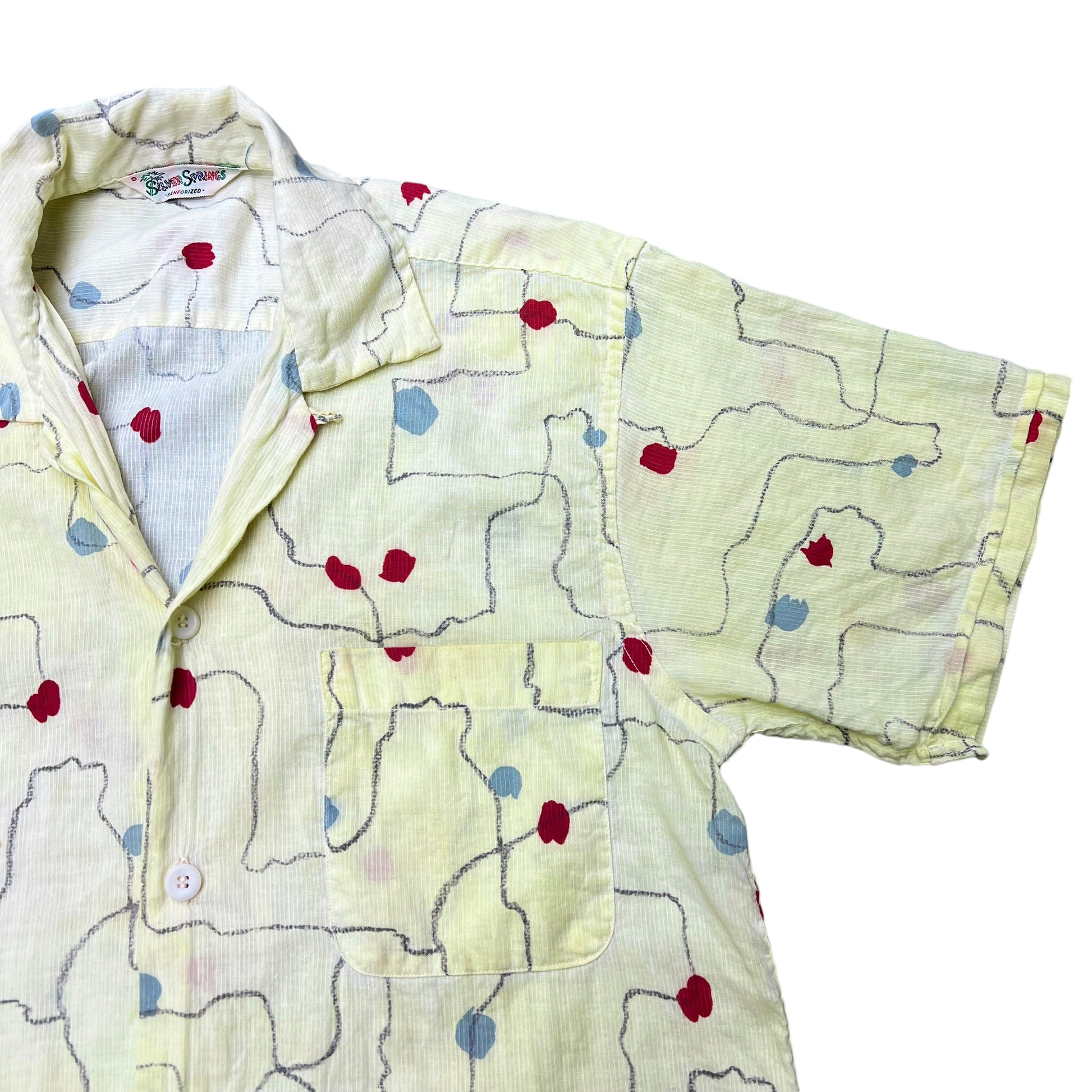 1950s Yellow atomic pattern thin cotton loop collar shirt (S)