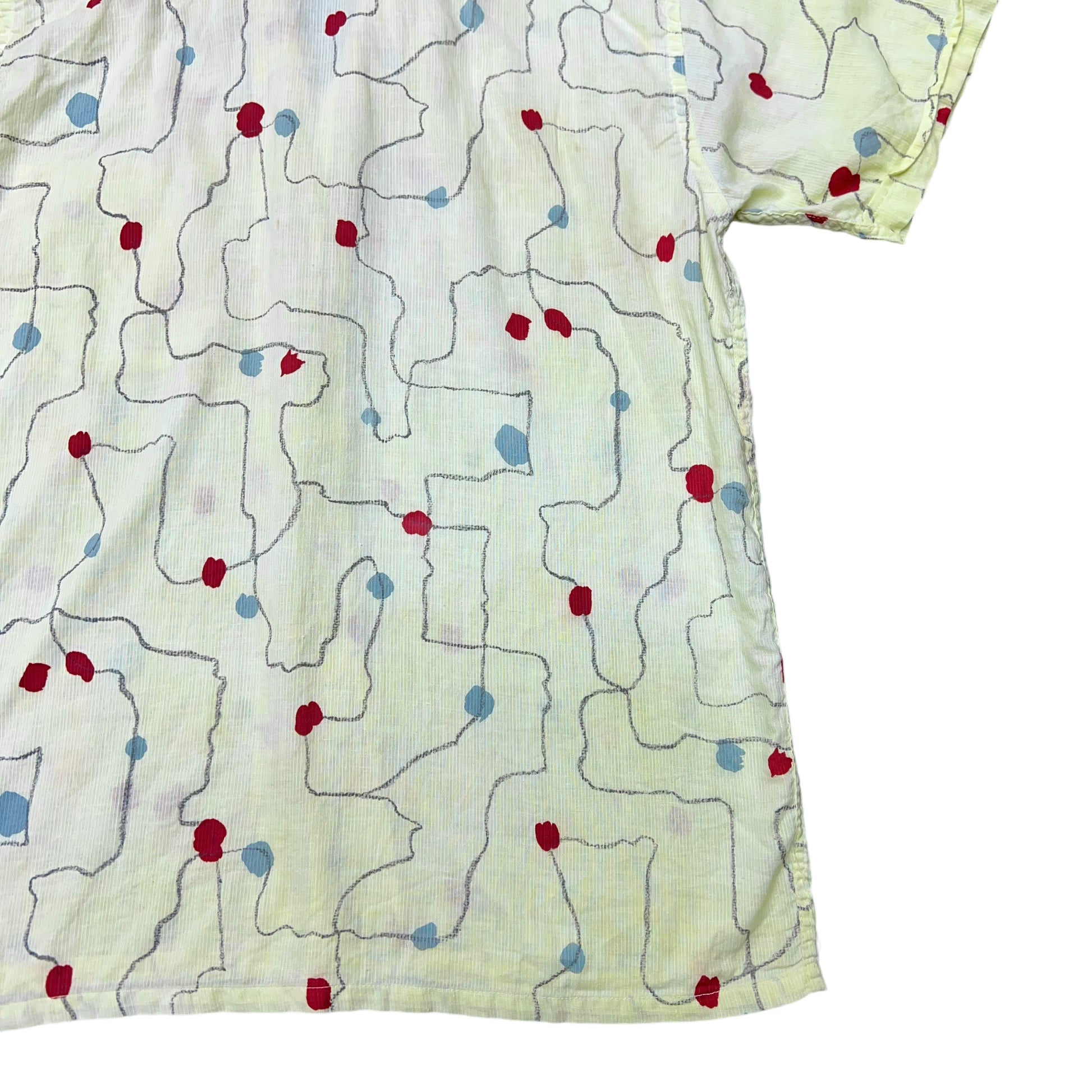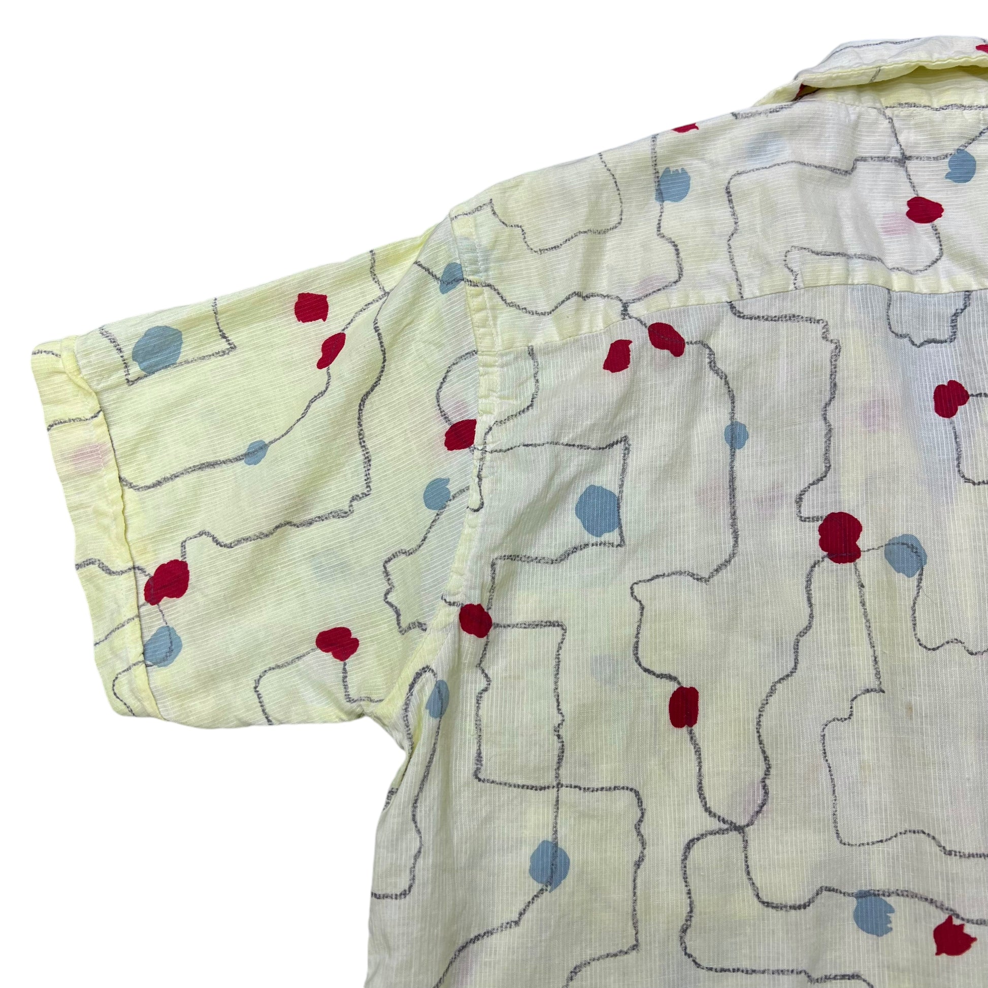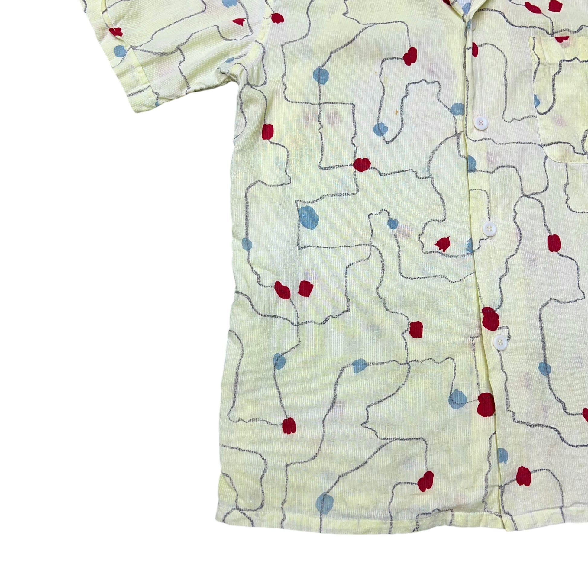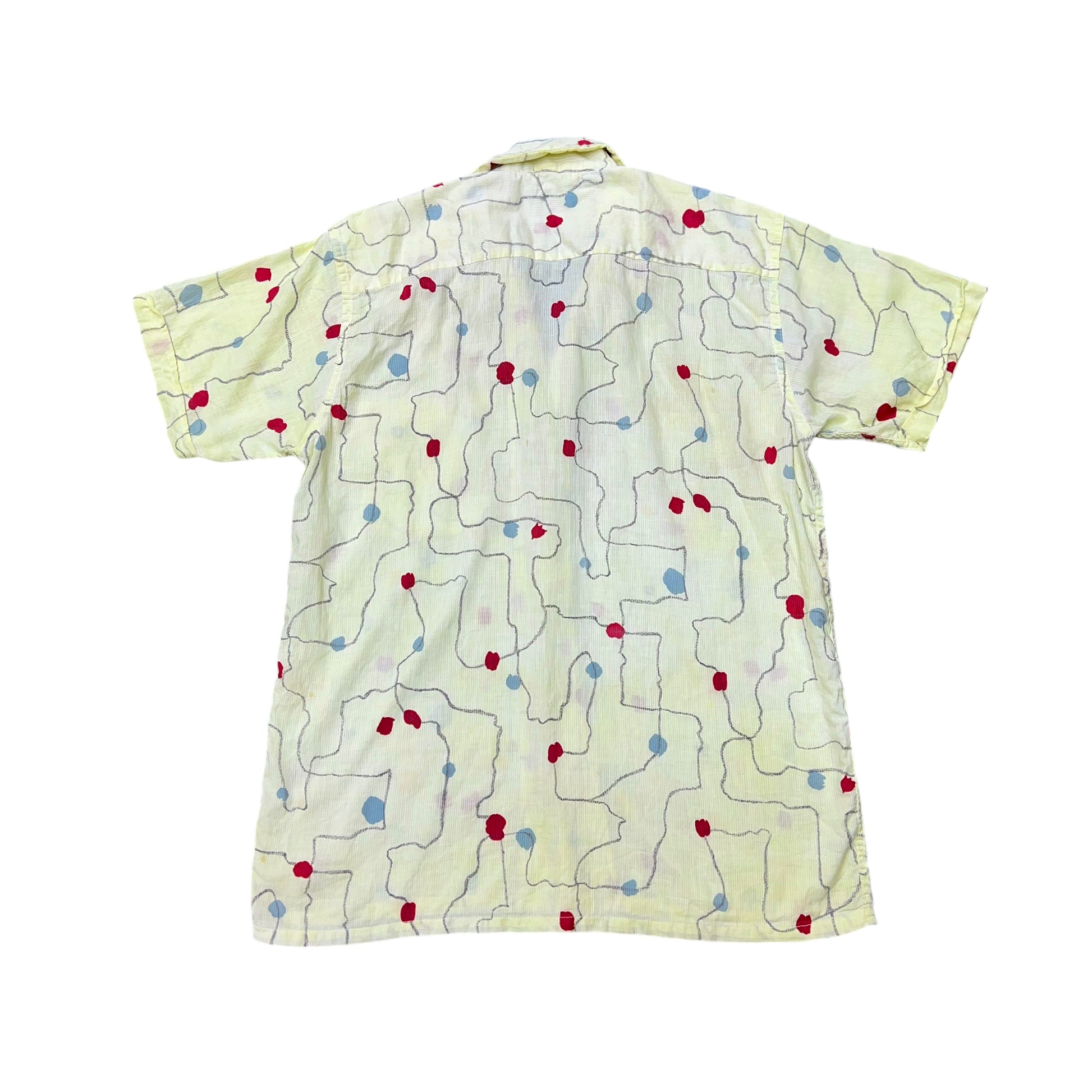 1950s Yellow atomic pattern thin cotton loop collar shirt (S)
