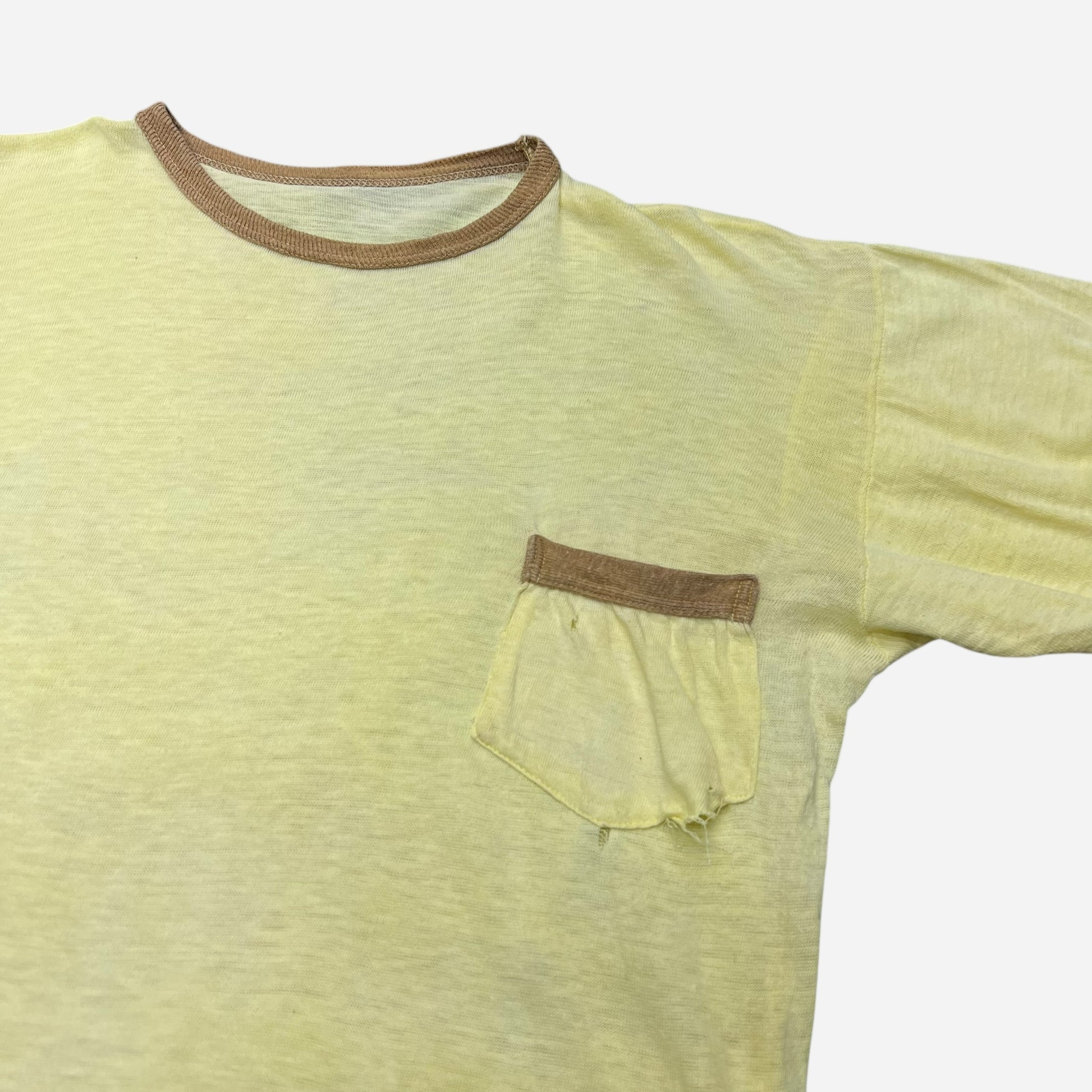 1950s Yellow brown two toned pocket t shirt (S/M)