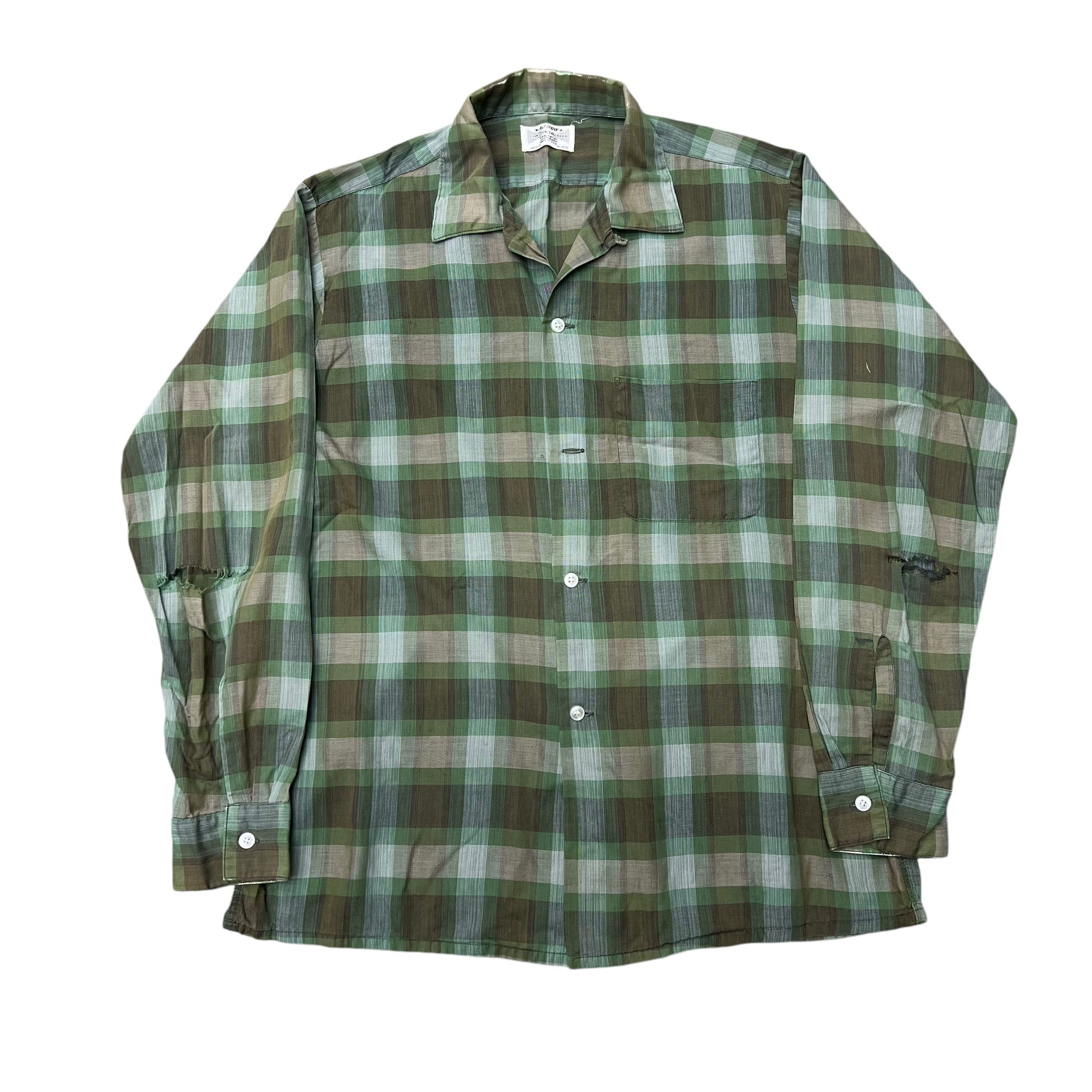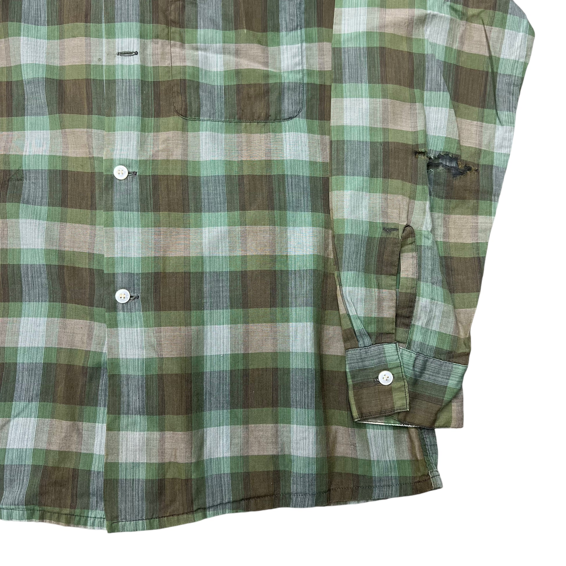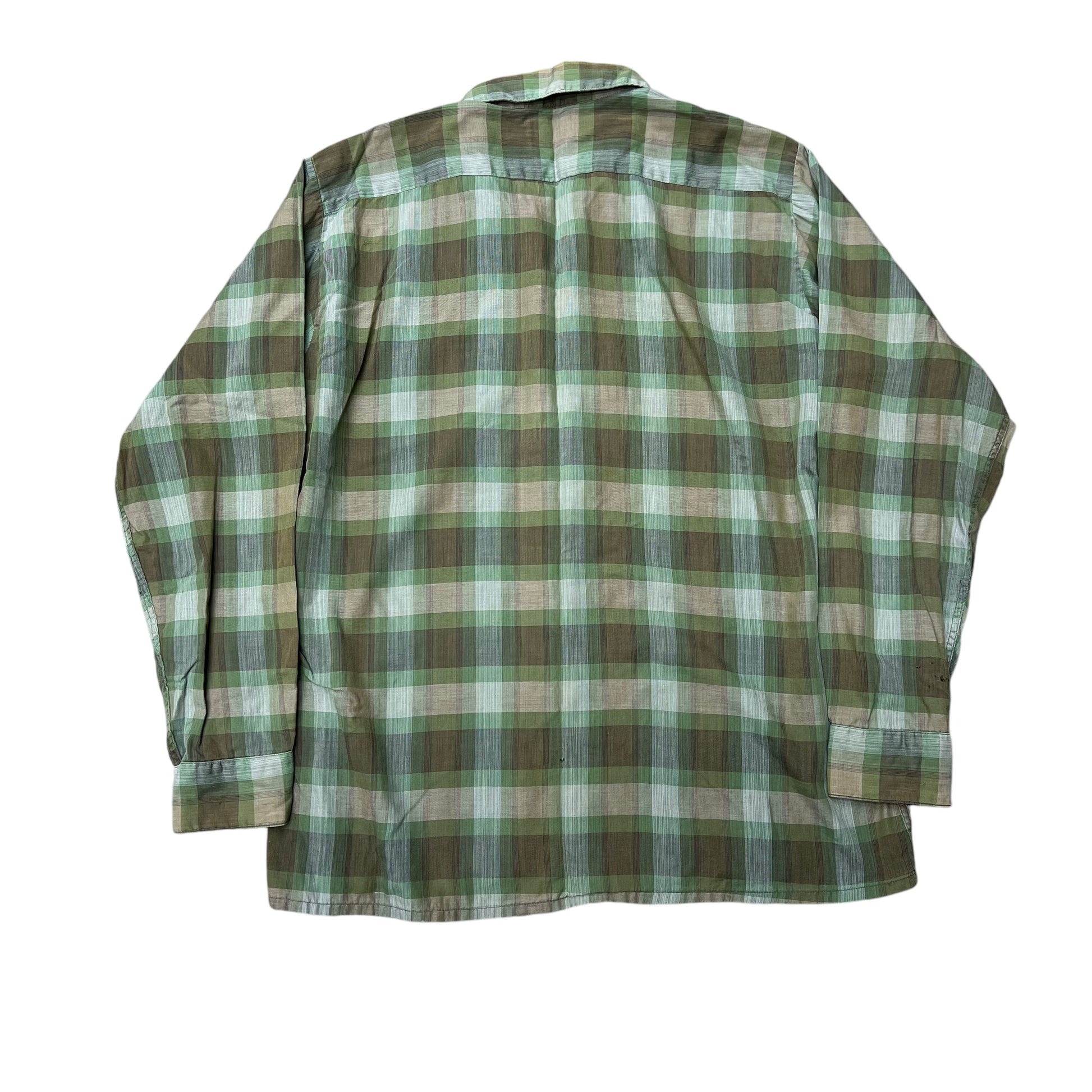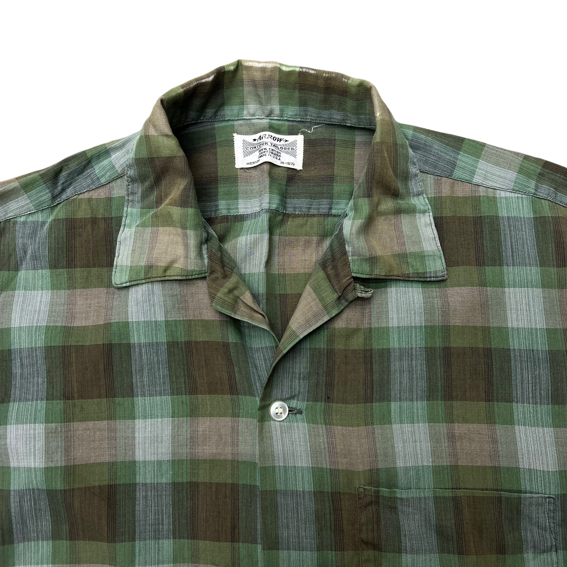 1960s Arrow green shadow plaid cotton loop collar shirt (M)