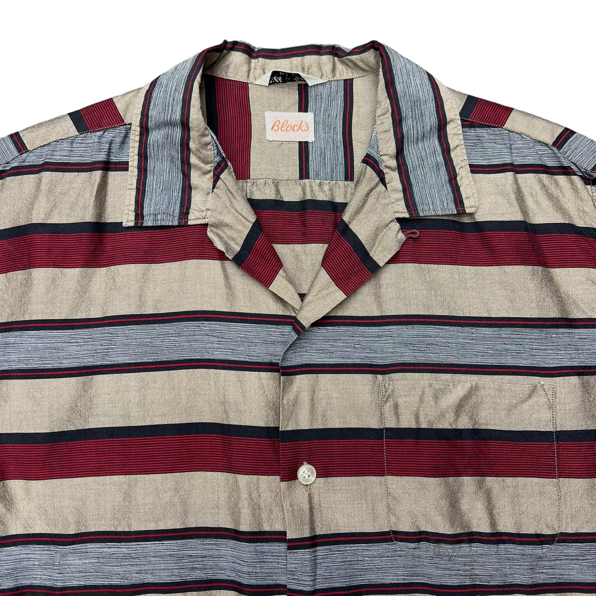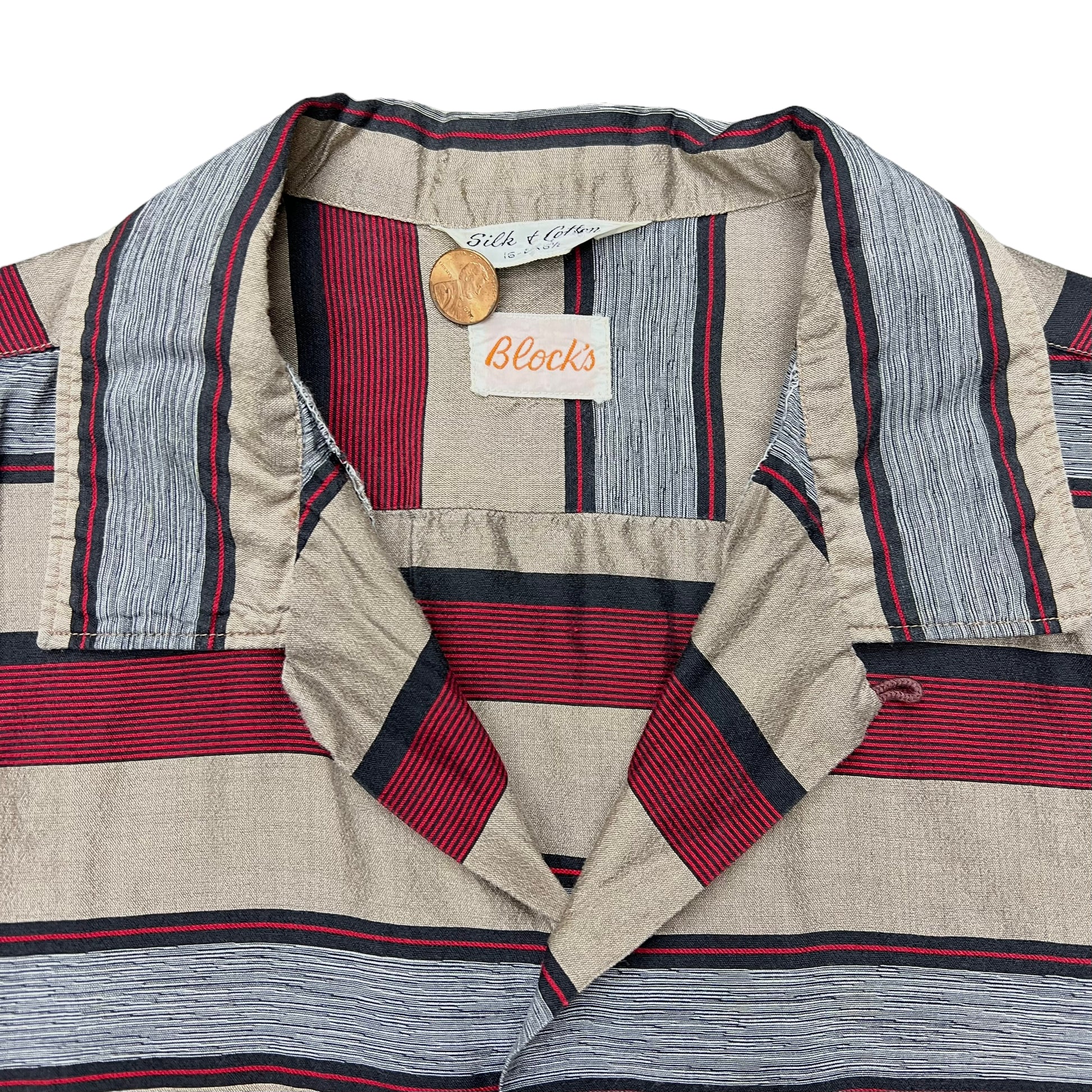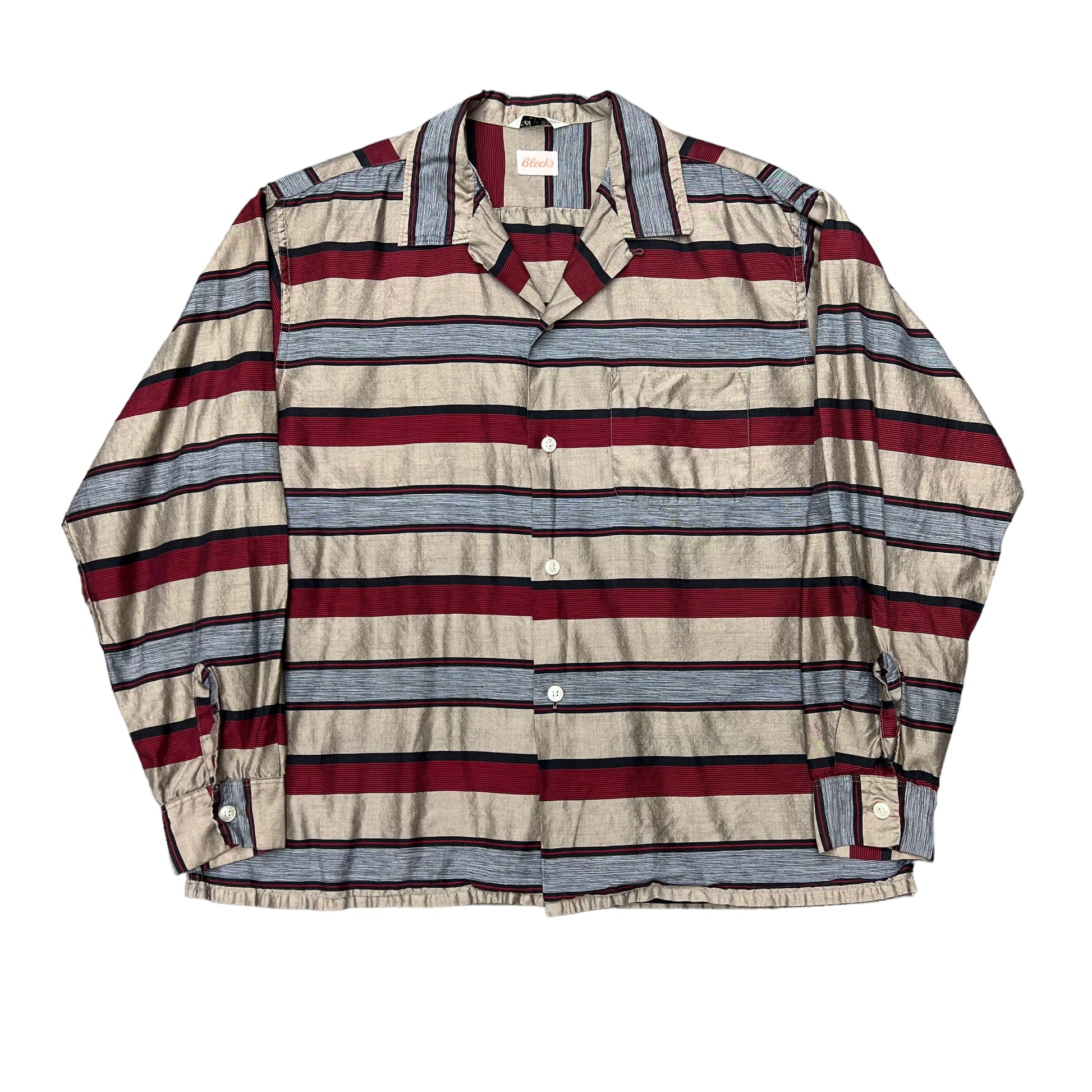 1960s Blocks silk/cotton striped loop collar shirt (L)