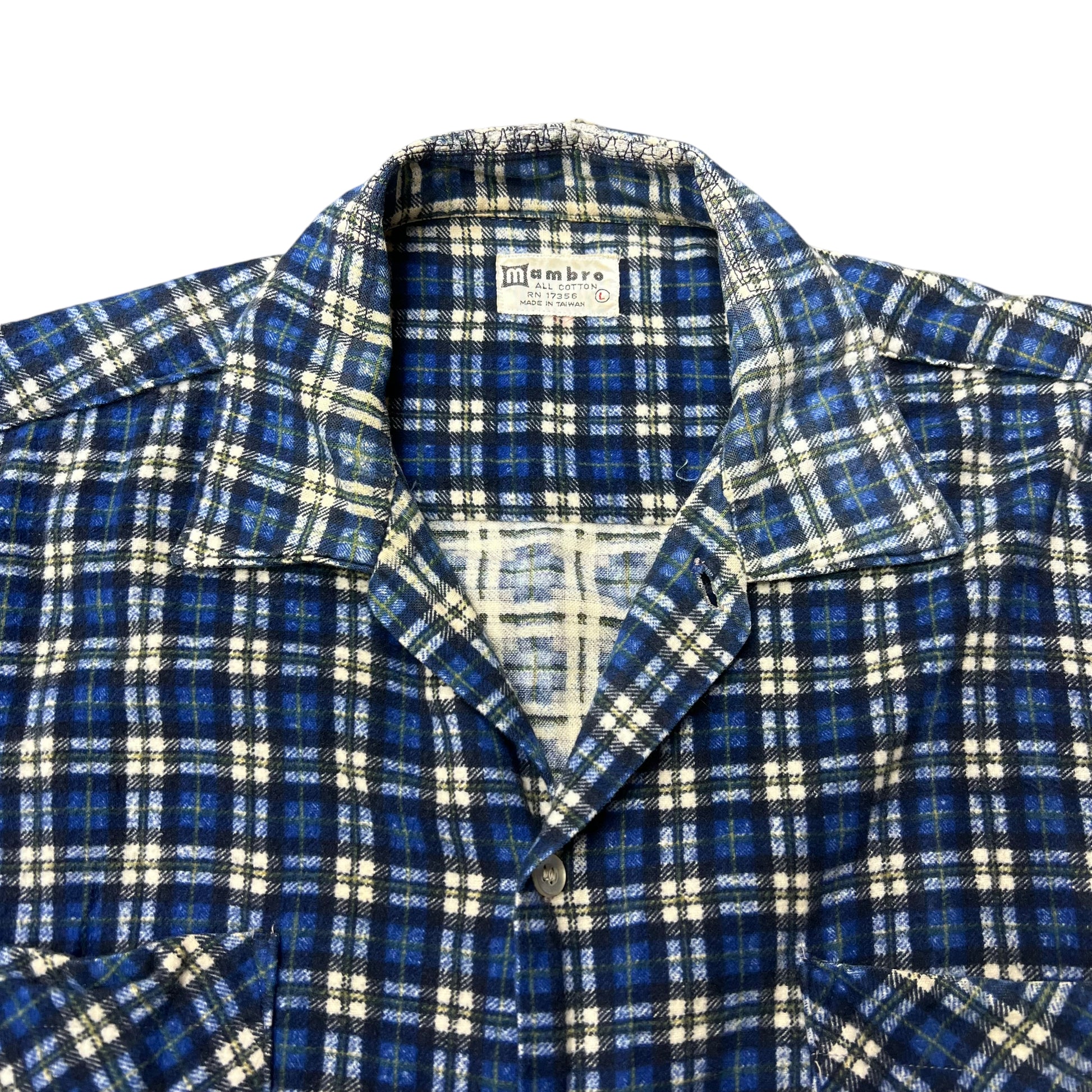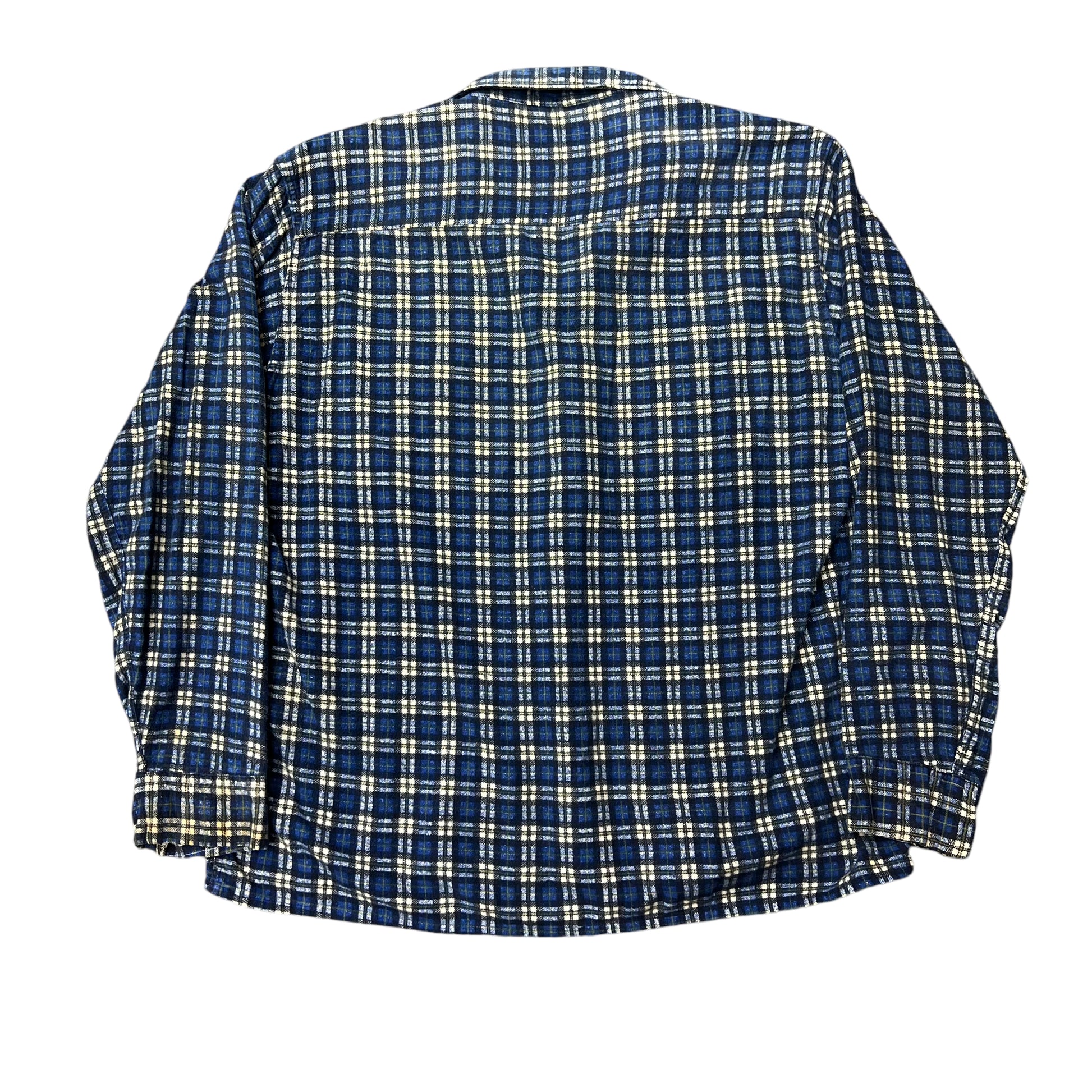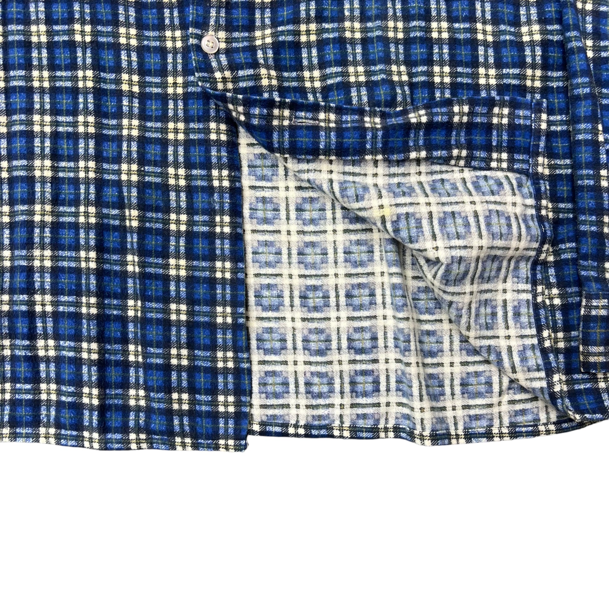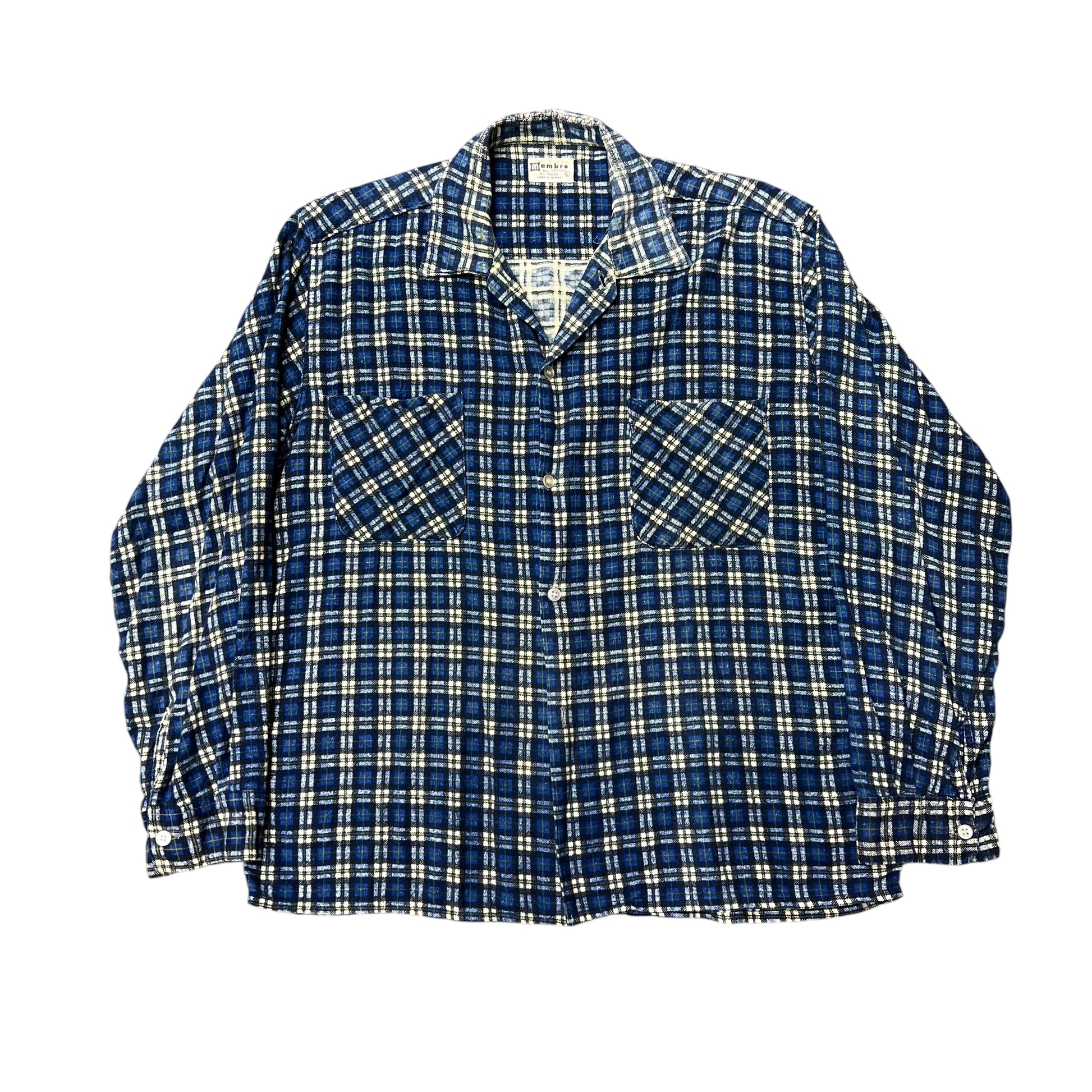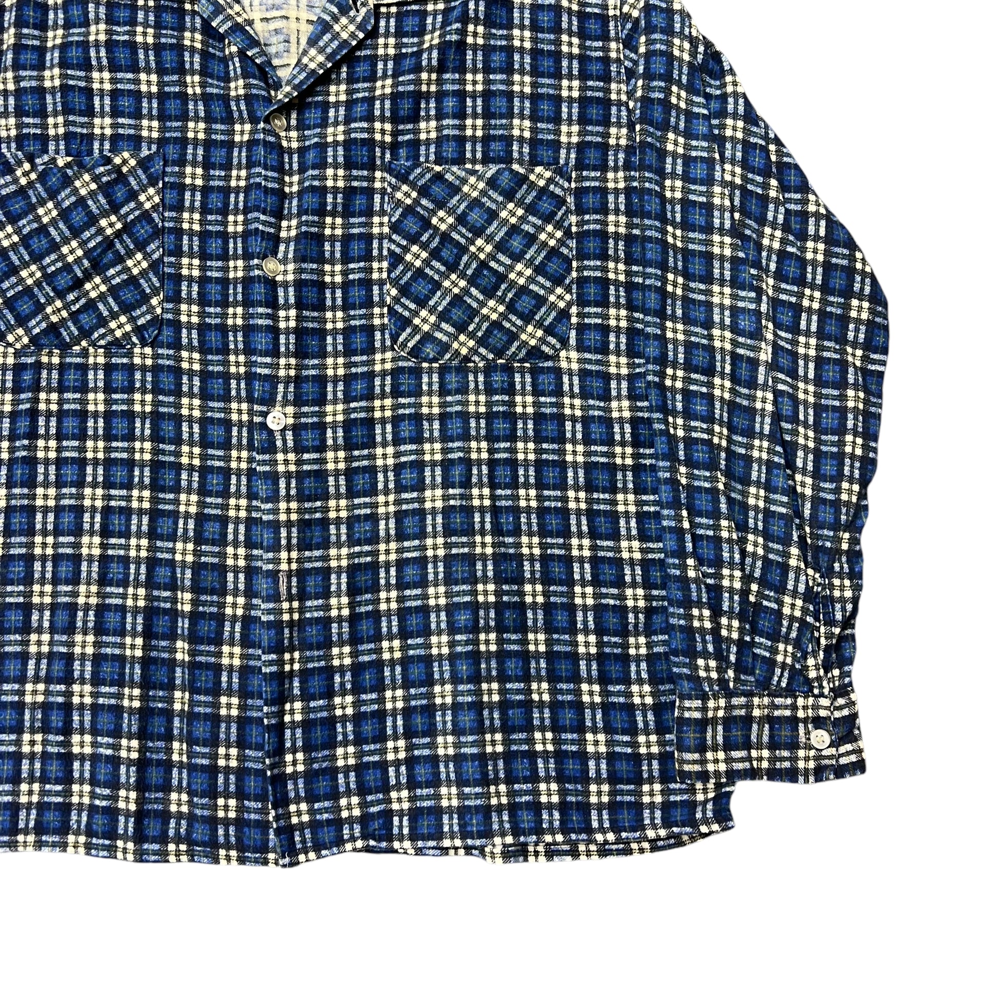 1960s Blue plaid cotton printed shirt flannel (L)