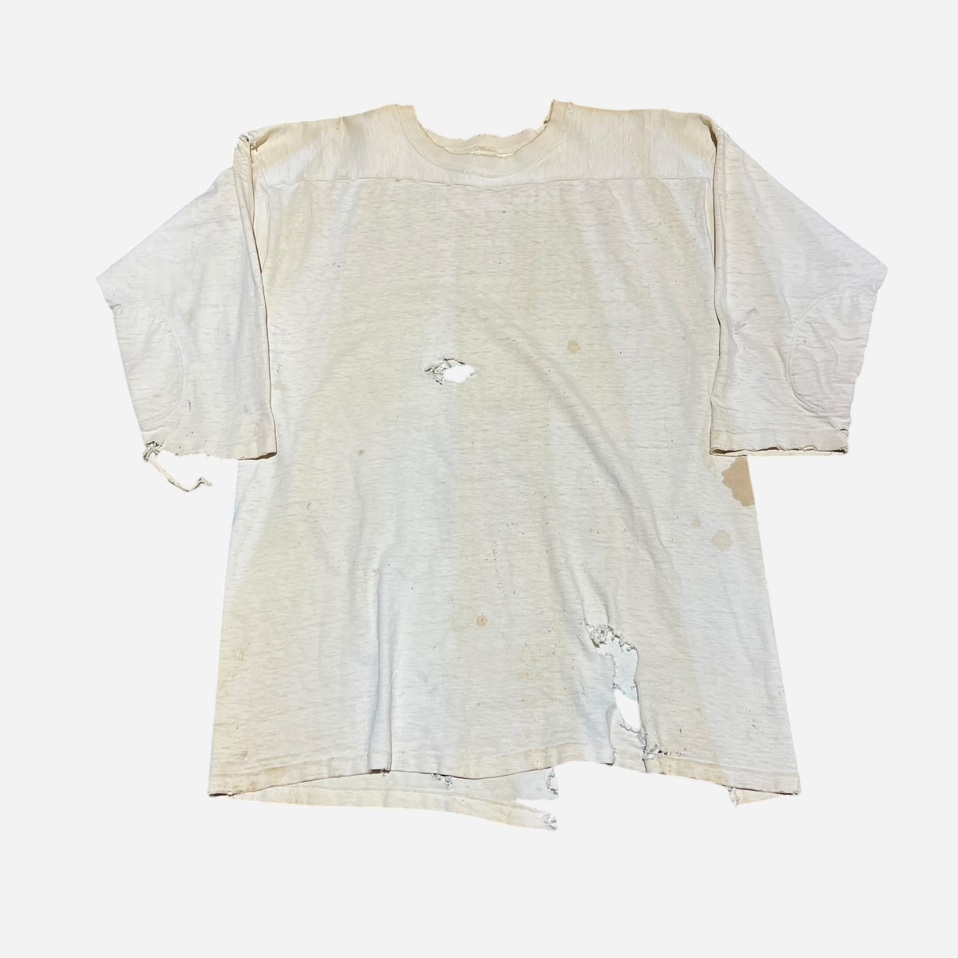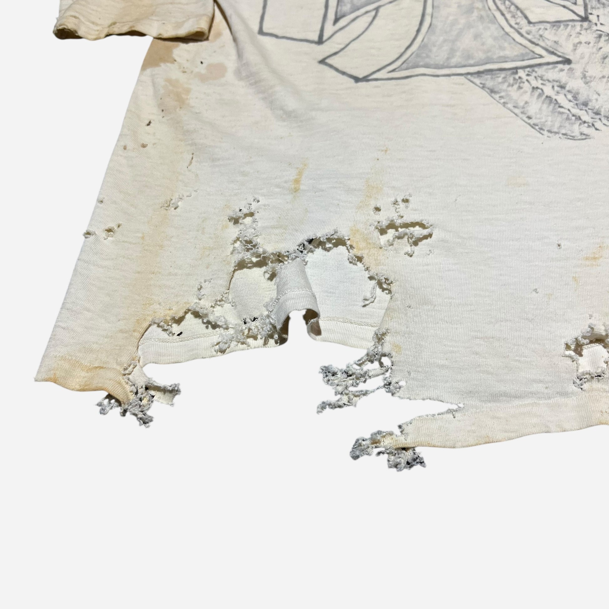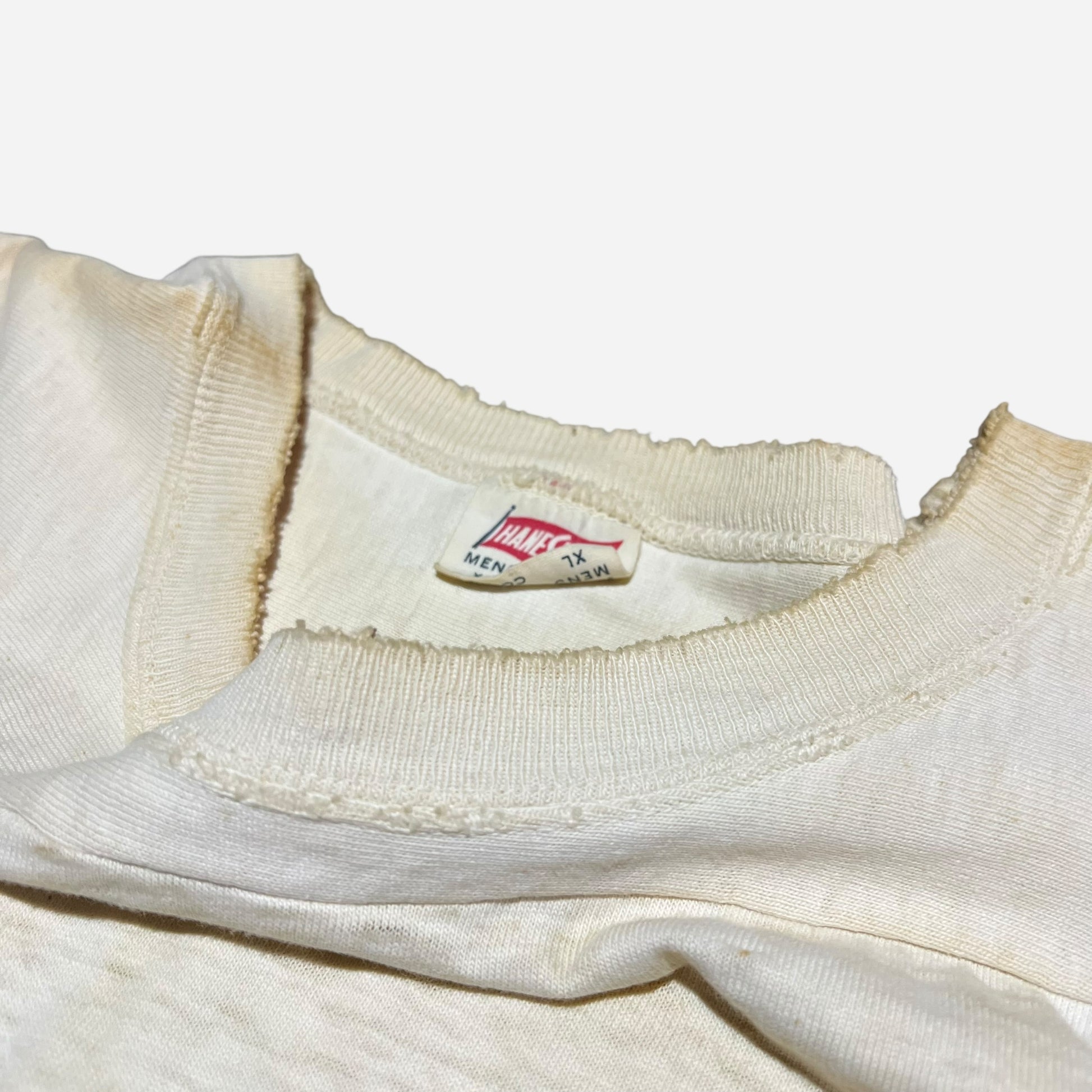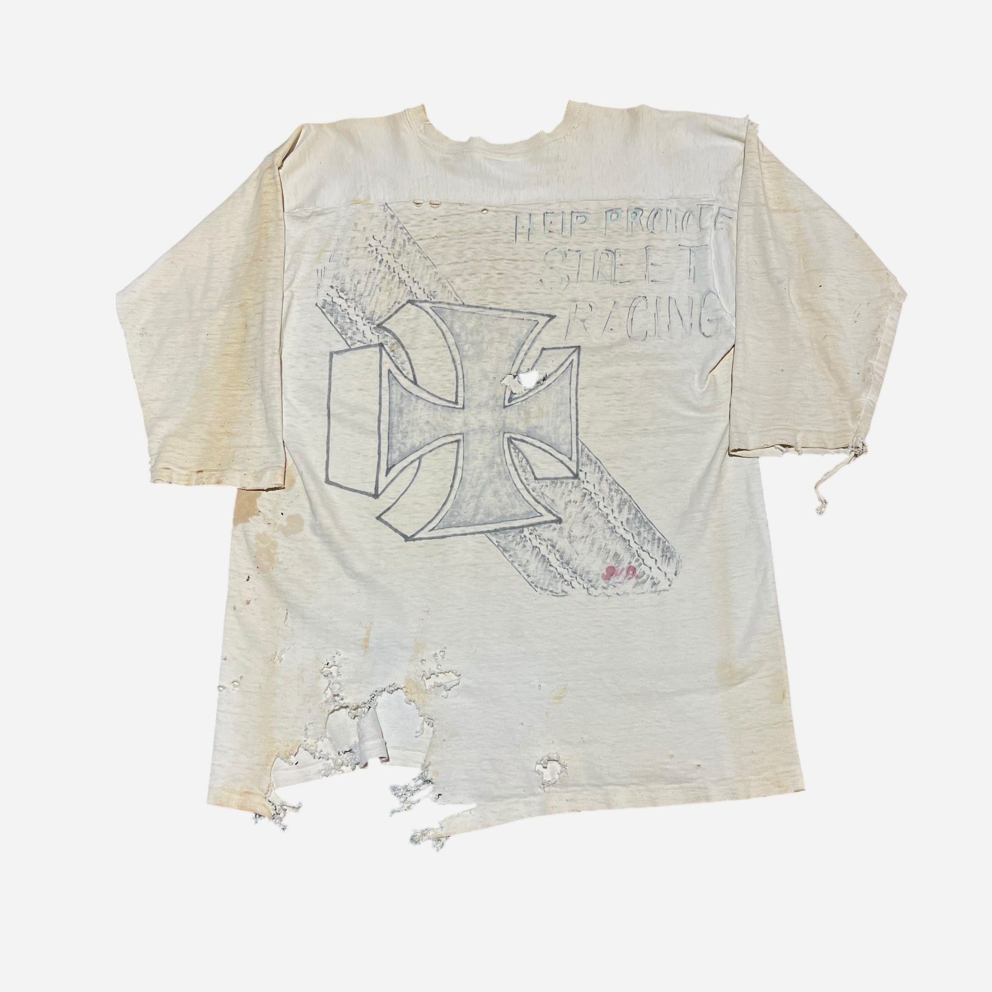 1960s Hanes thrashed hand drawn “Help Protect Street Racing” white cotton jersey shirt (L)