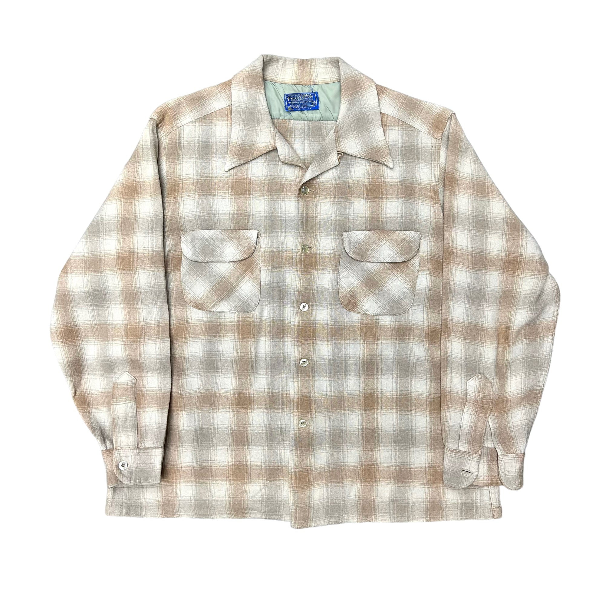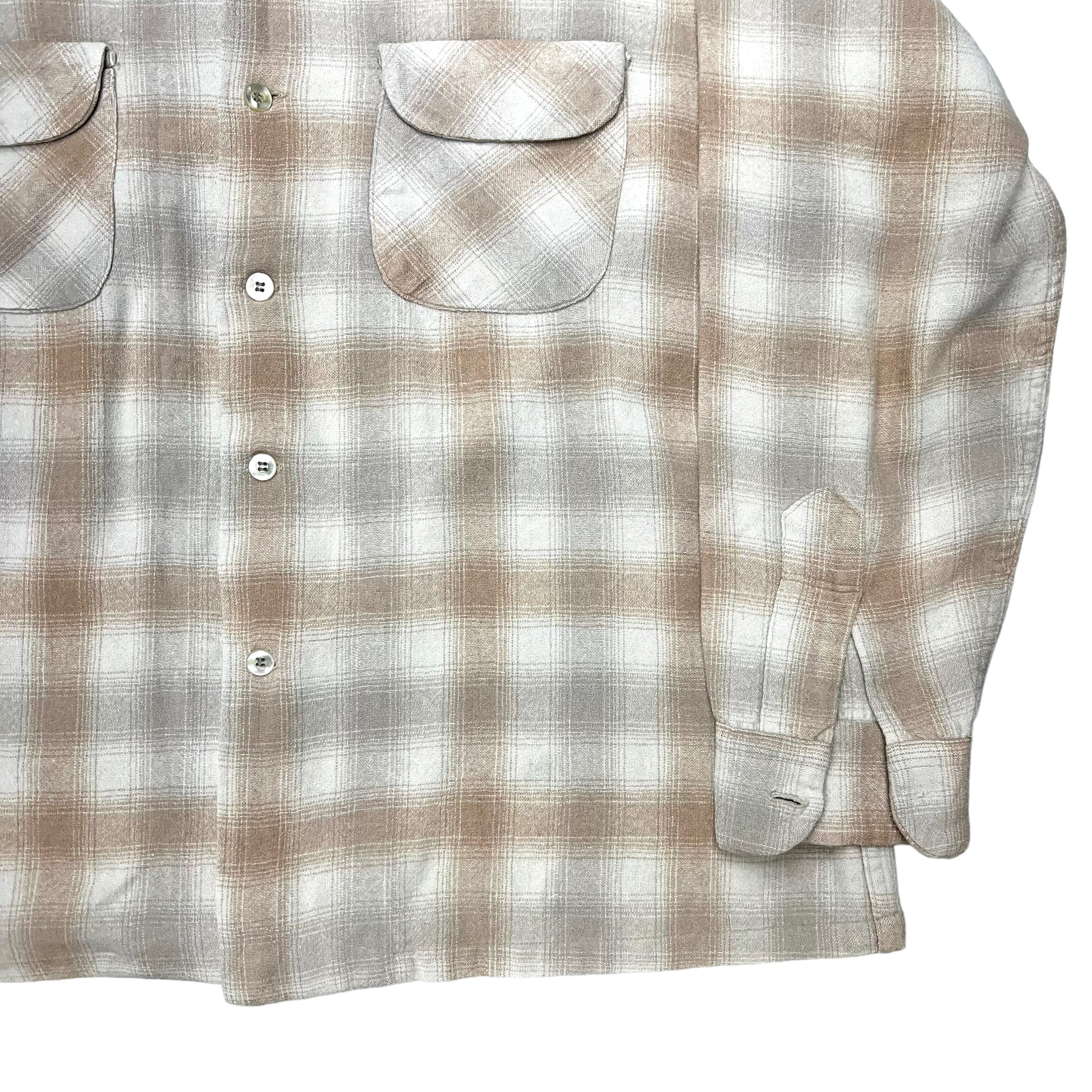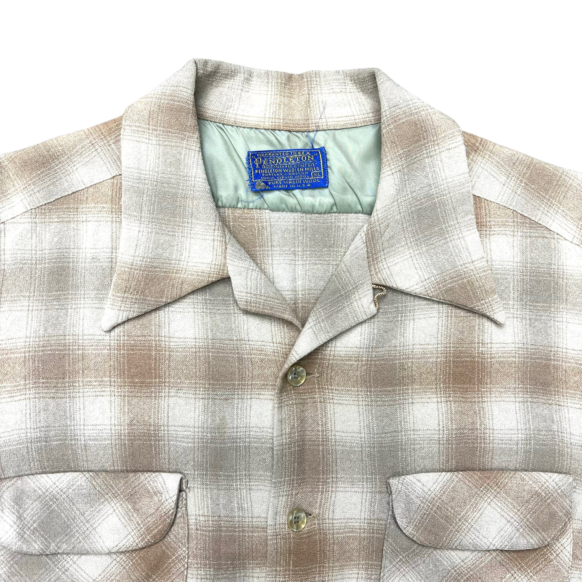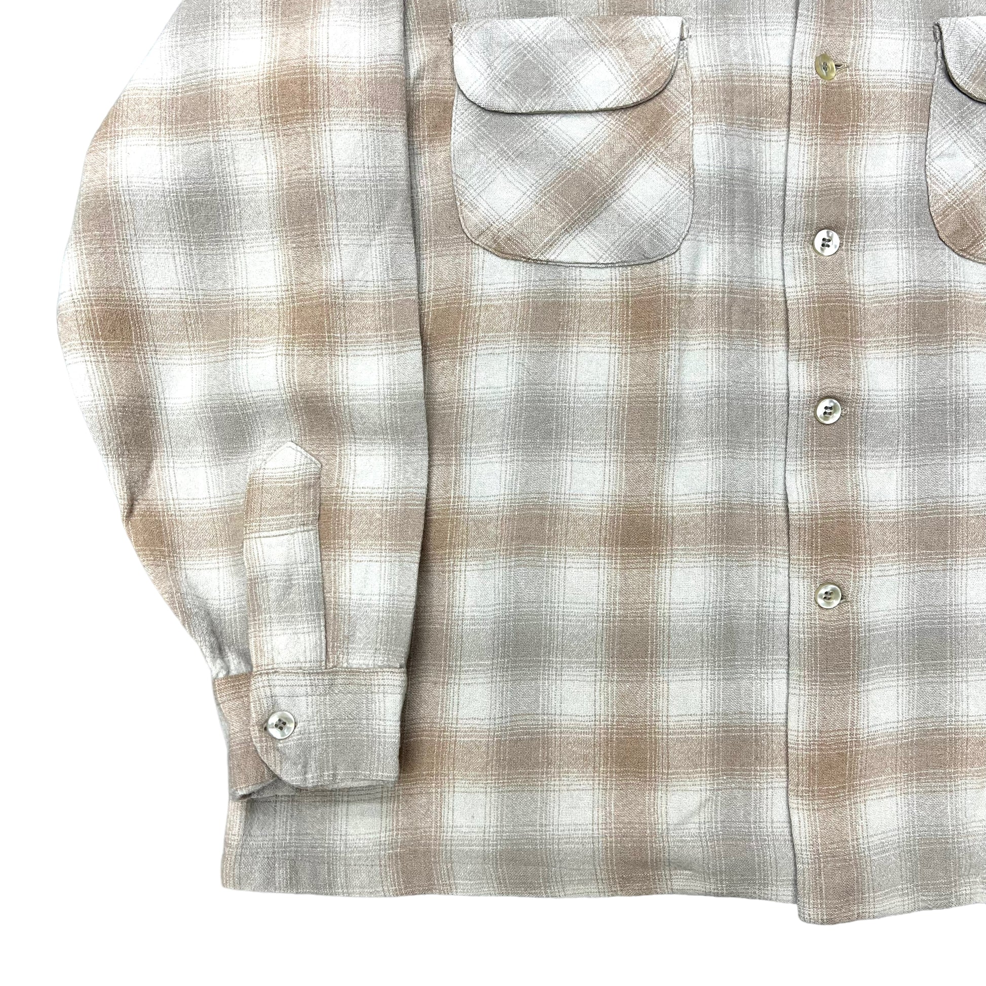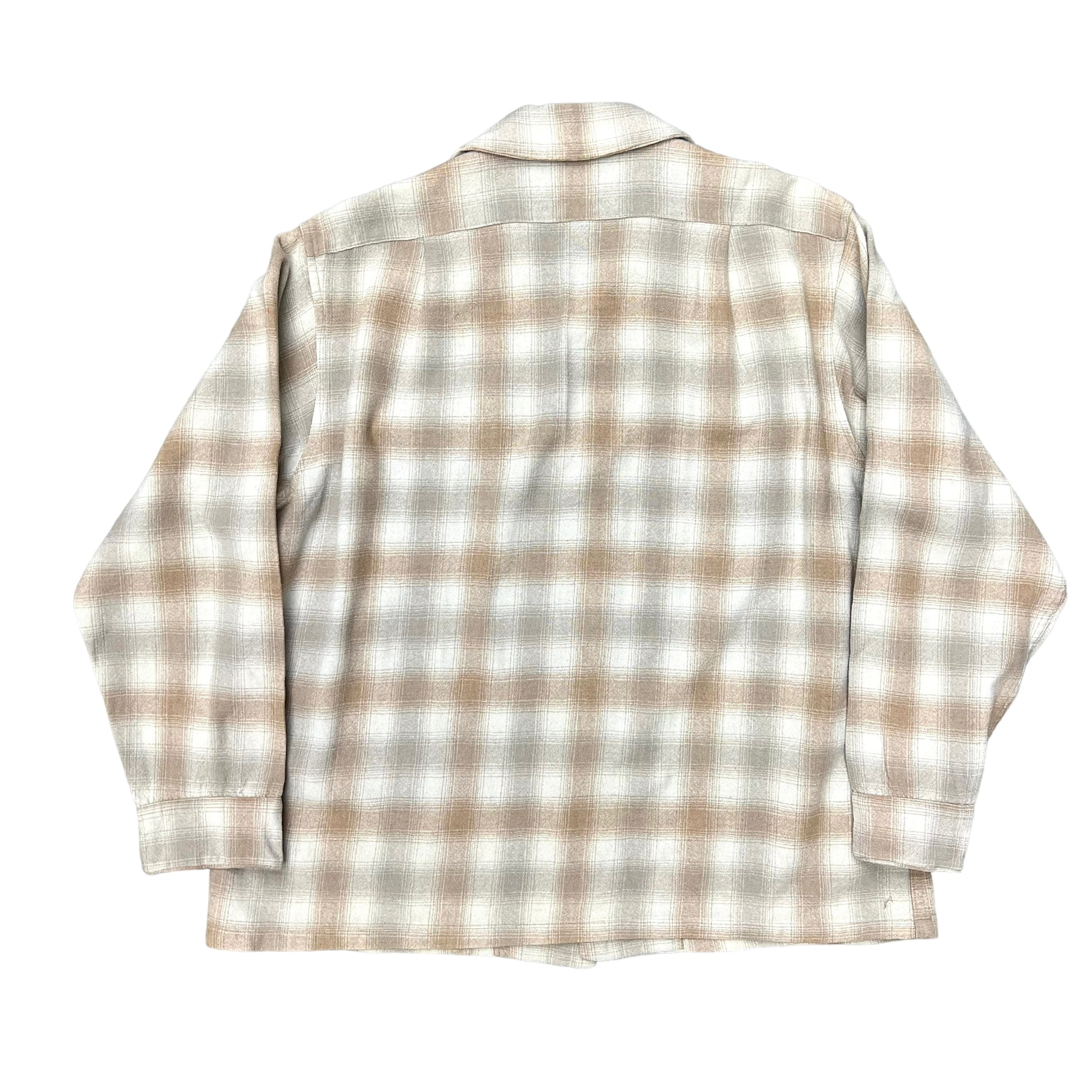 1960s Pendleton shadow plaid virgin wool loop collar shirt (L/XL)
