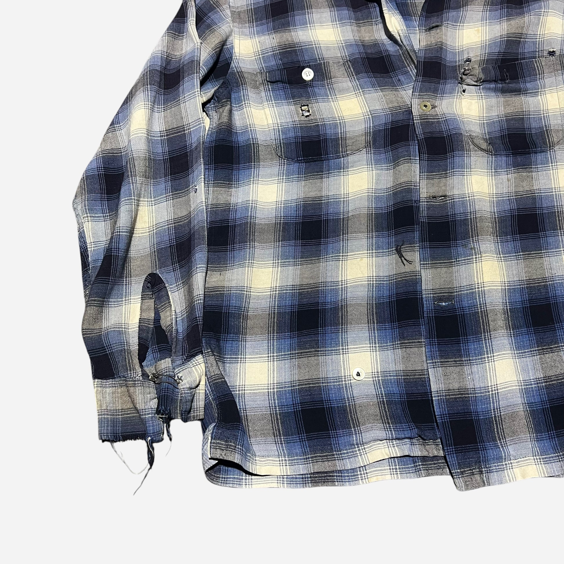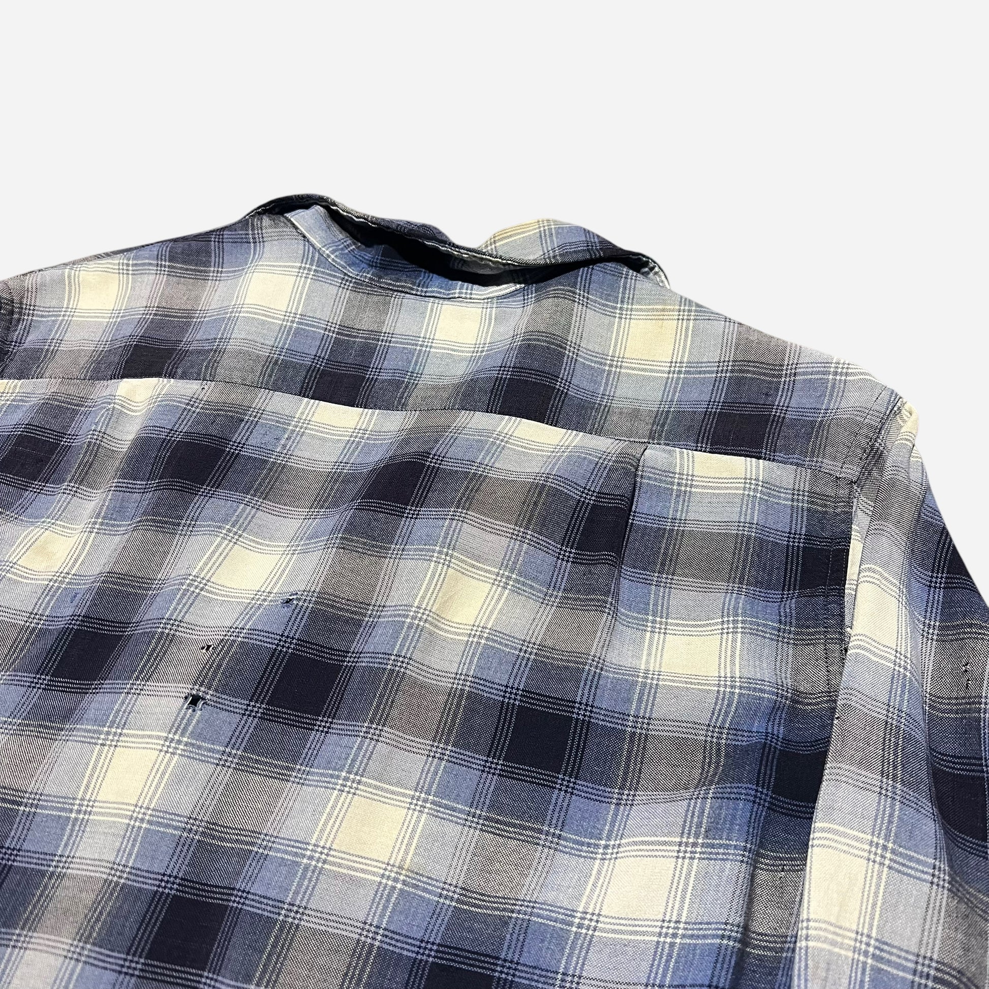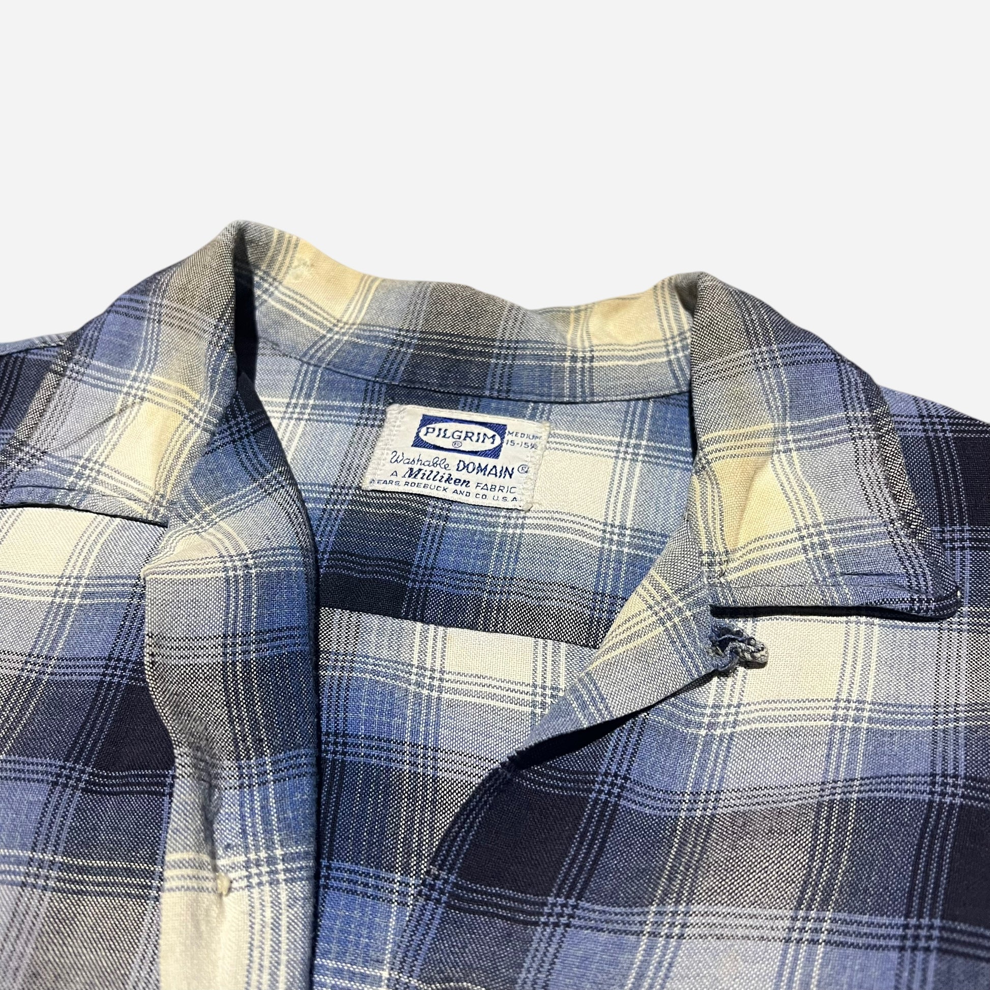 1960s Pilgrim blue shadow plaid rayon loop collar shirt (M)