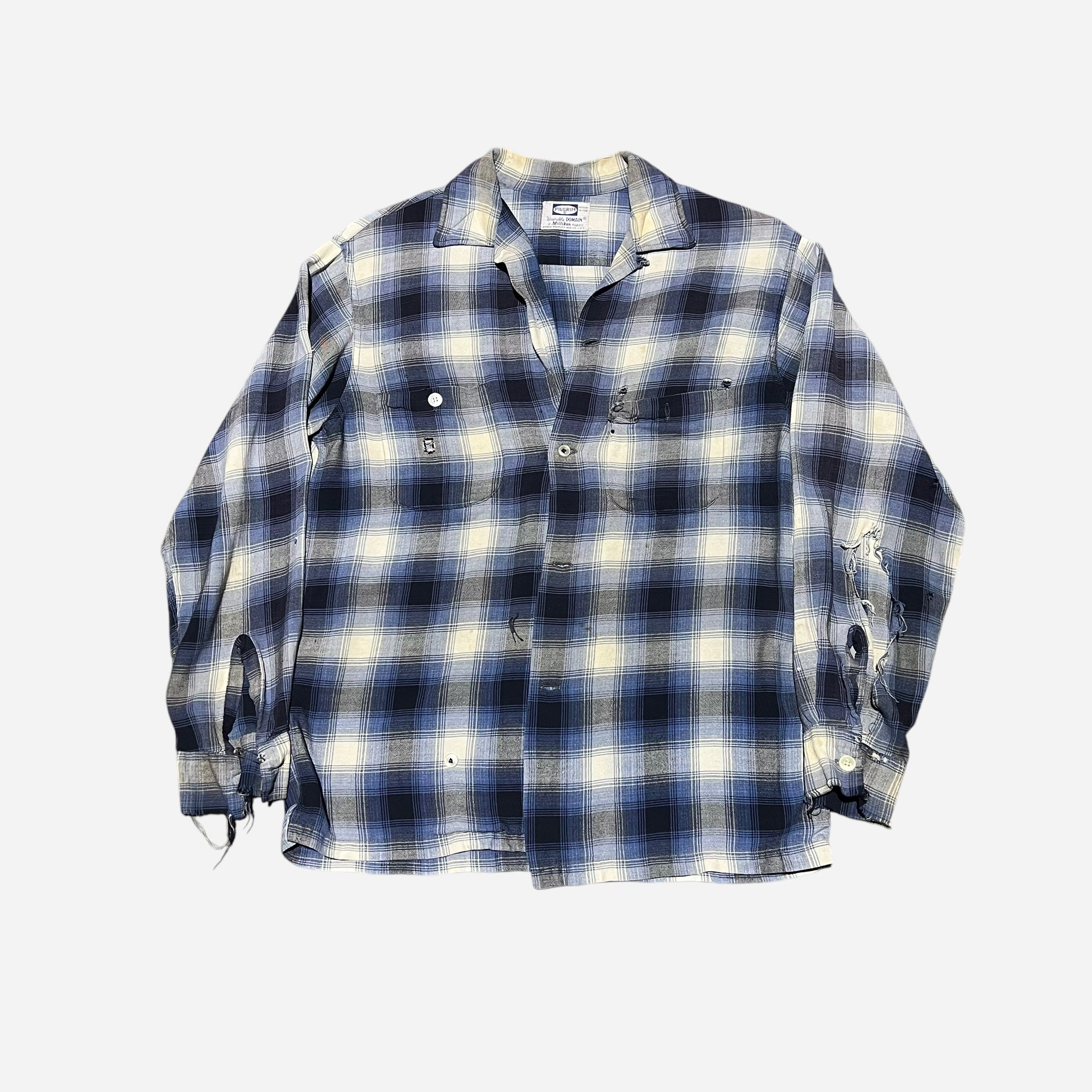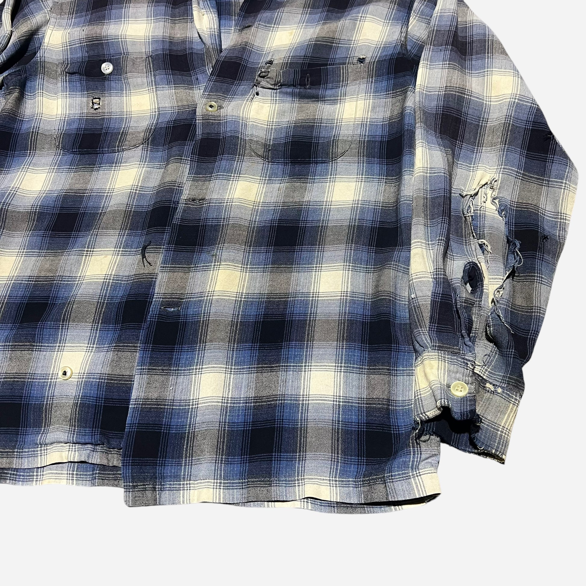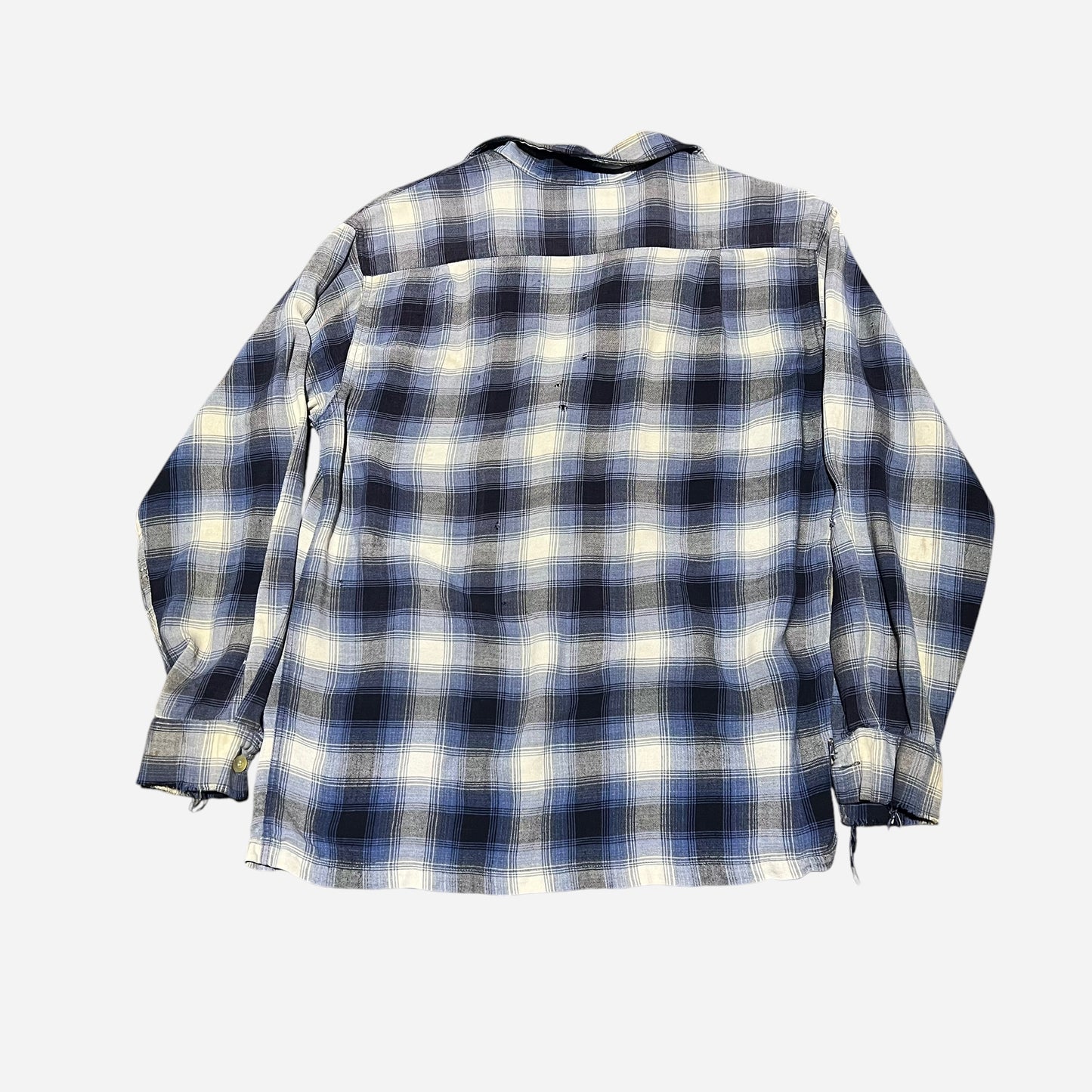 1960s Pilgrim blue shadow plaid rayon loop collar shirt (M)
