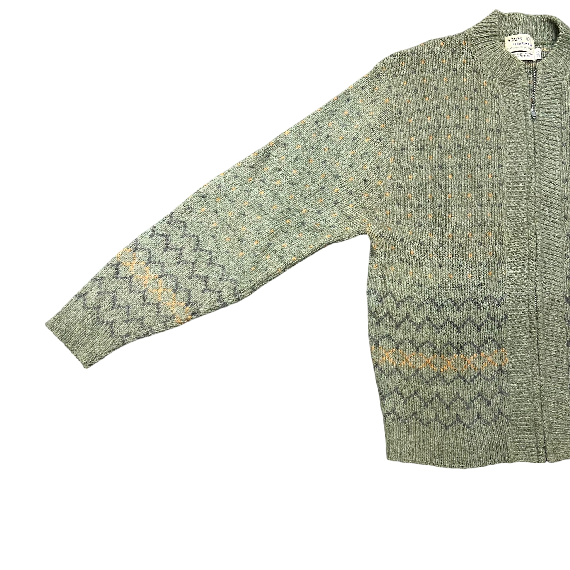 1960s Sears lambs wool & mohair green zip up cardigan (M/L)