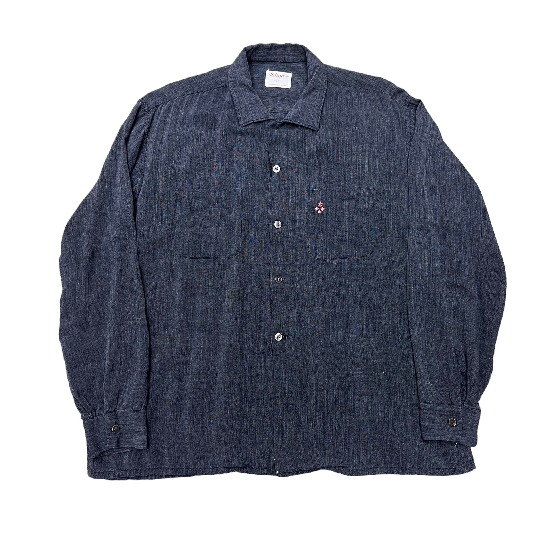 1960s Wings rayon black fleck loop collar shirt (XL)