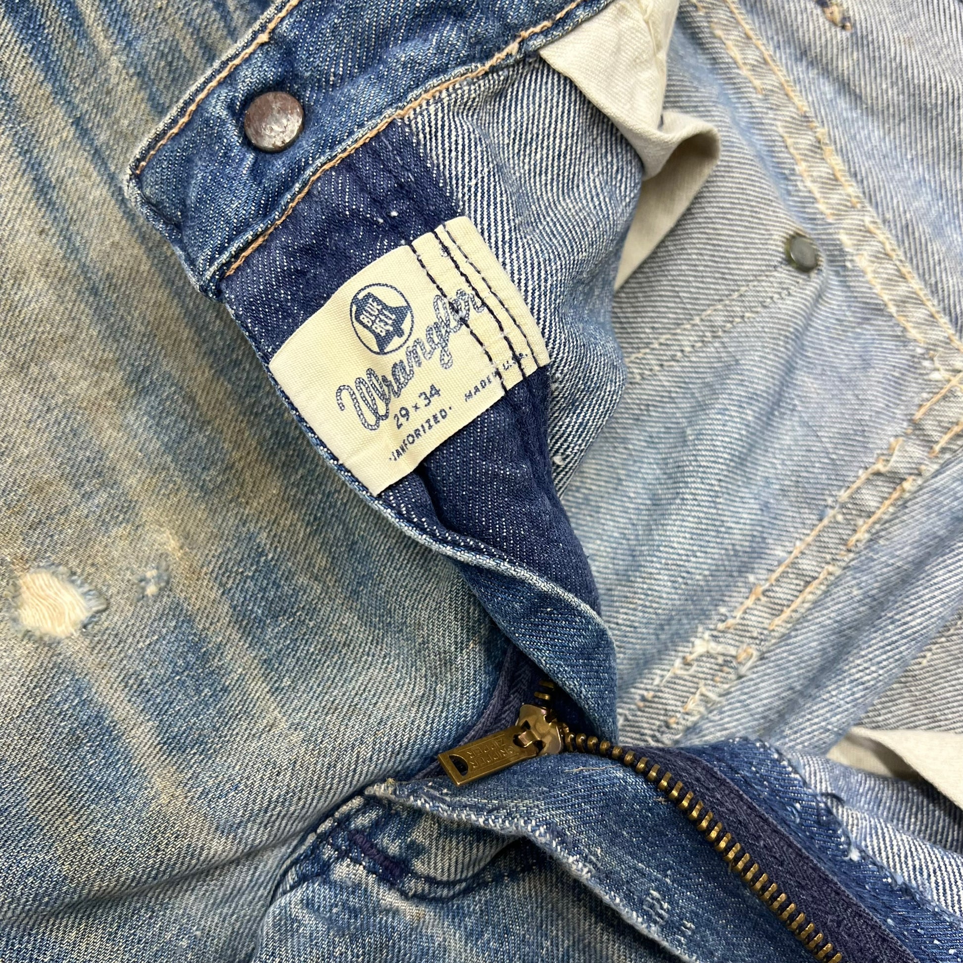 1960s Wrangler Blue Bell faded distressed cowboy denim jeans (30w)