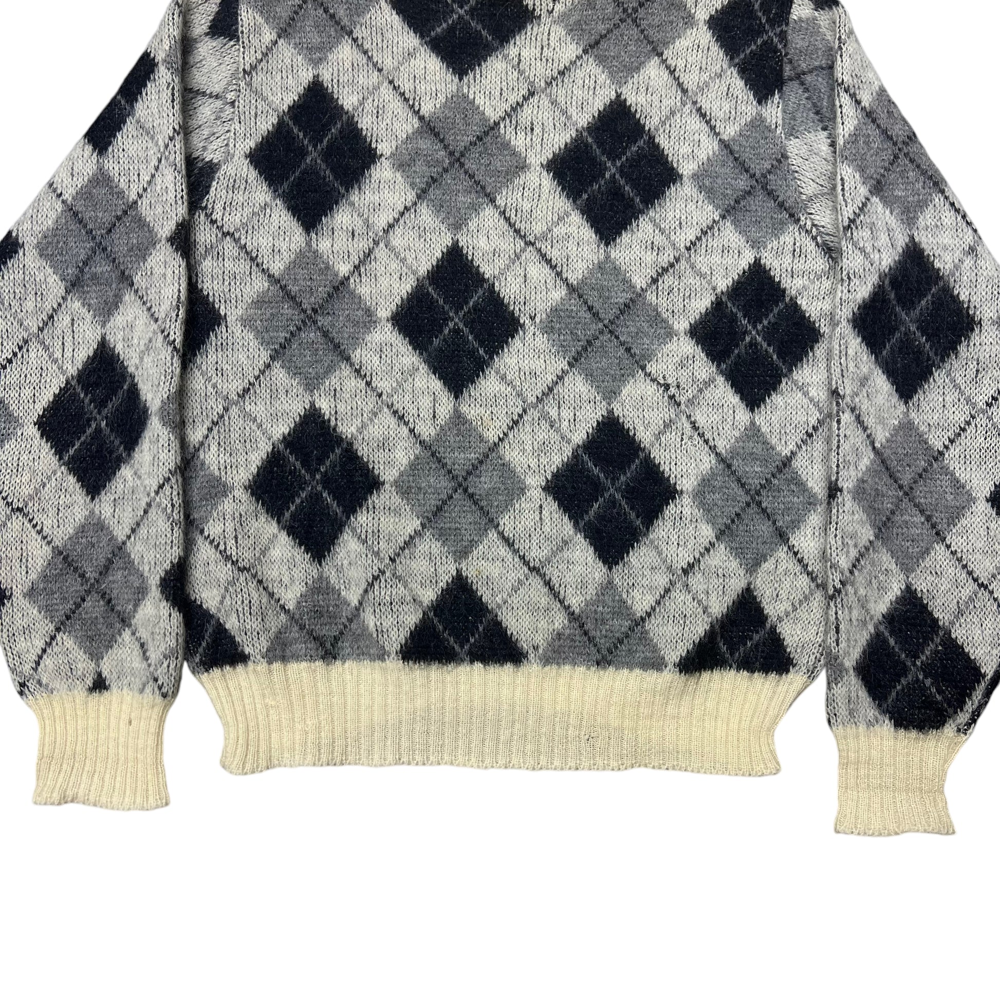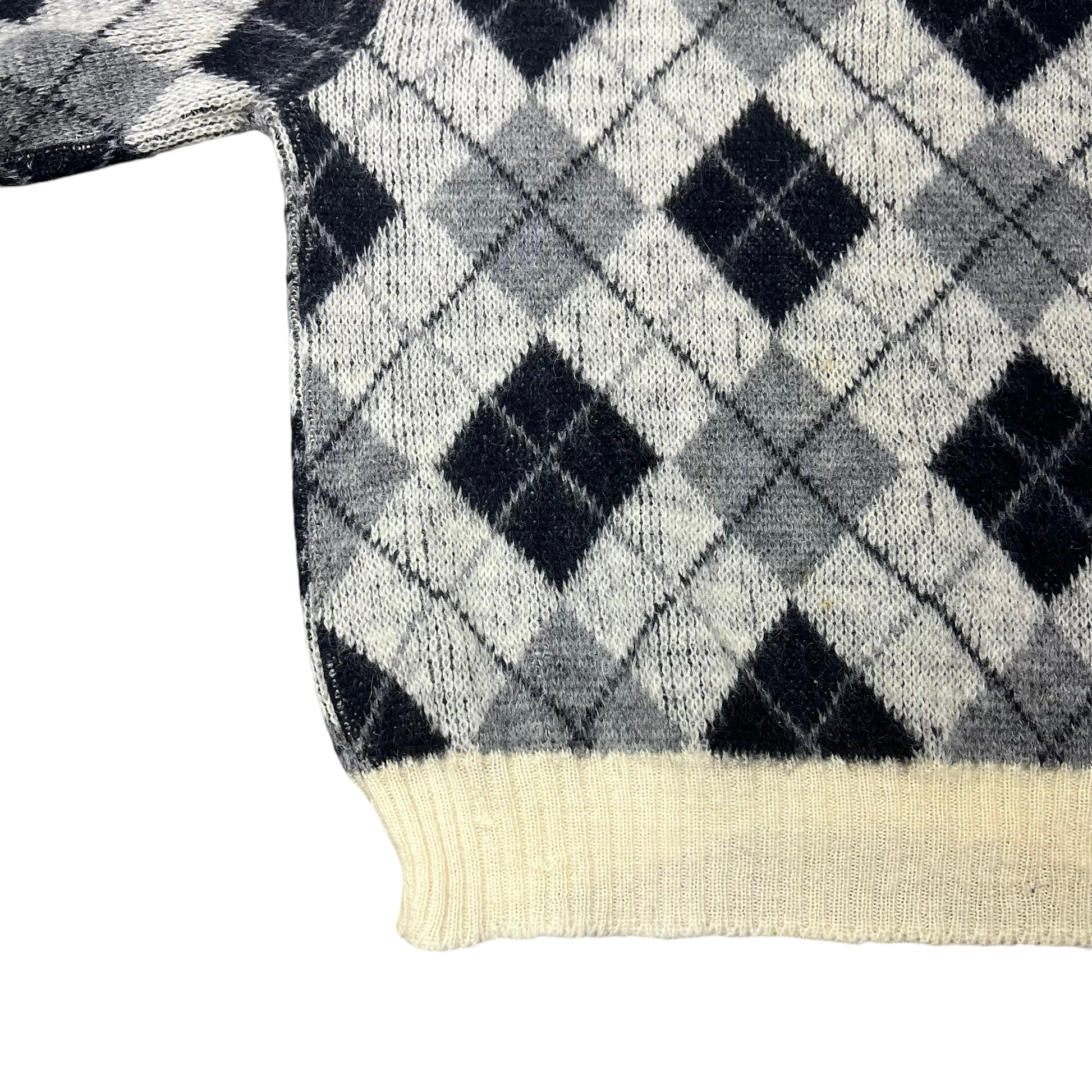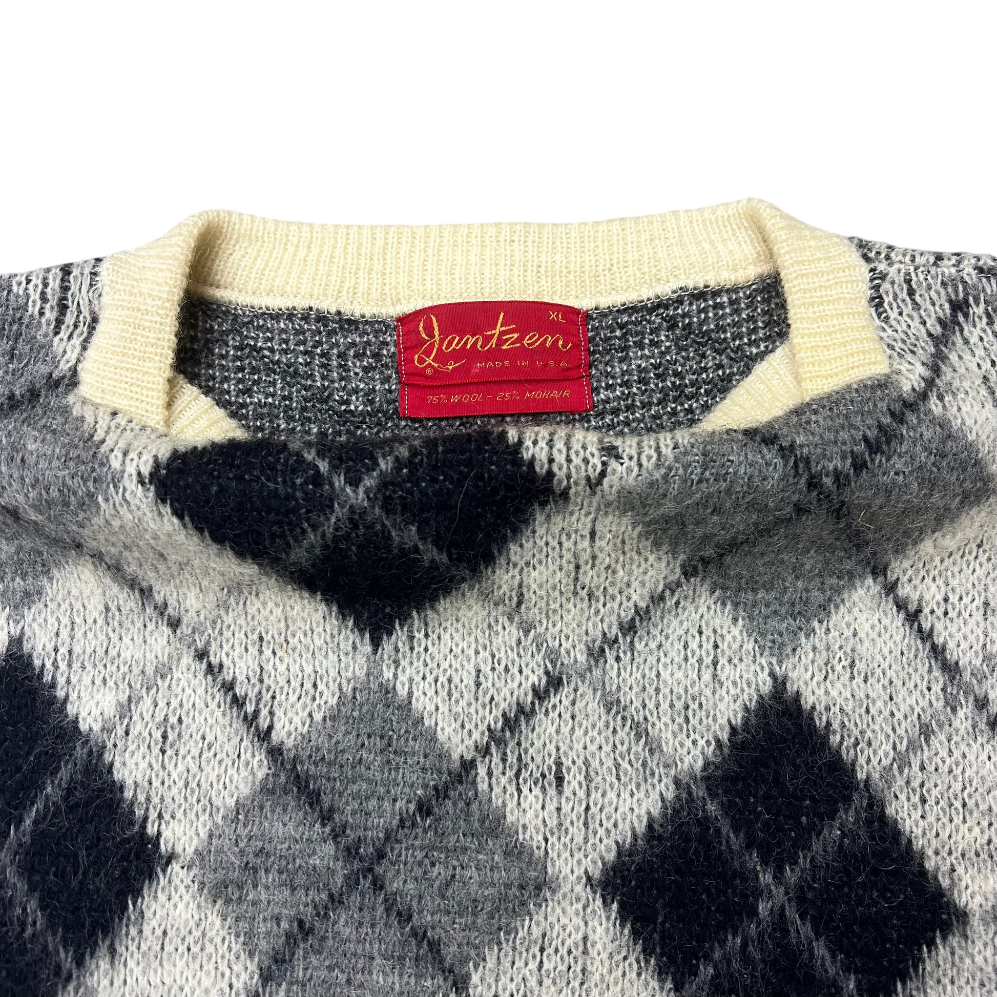 1970s Jantzen black & grey plaid mohair sweater (XL)