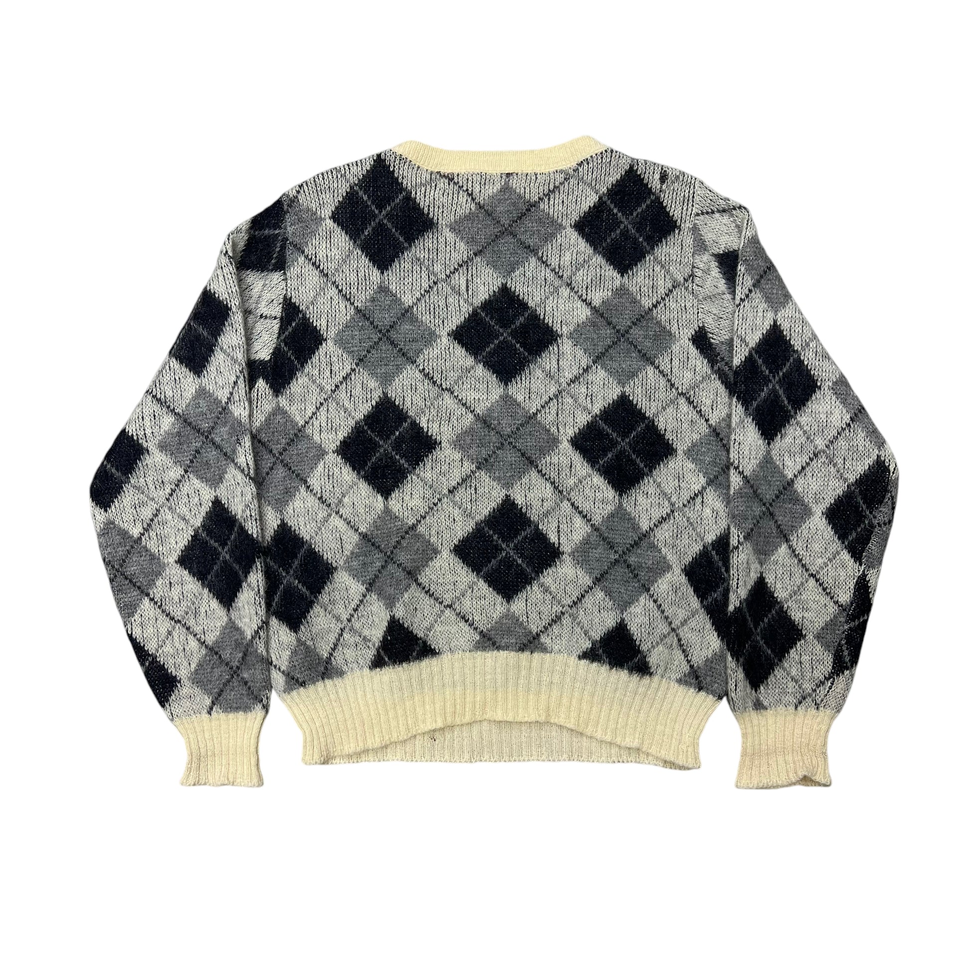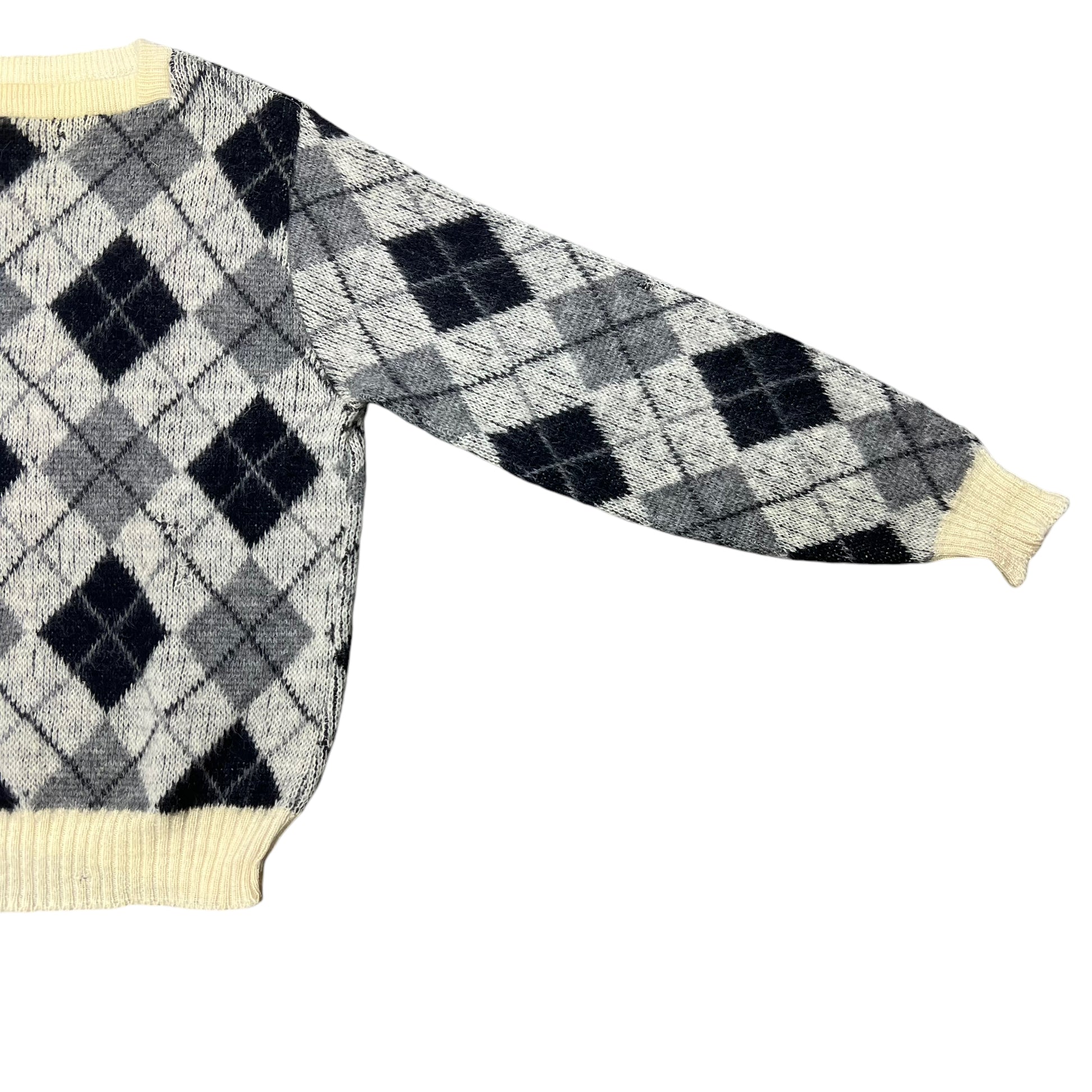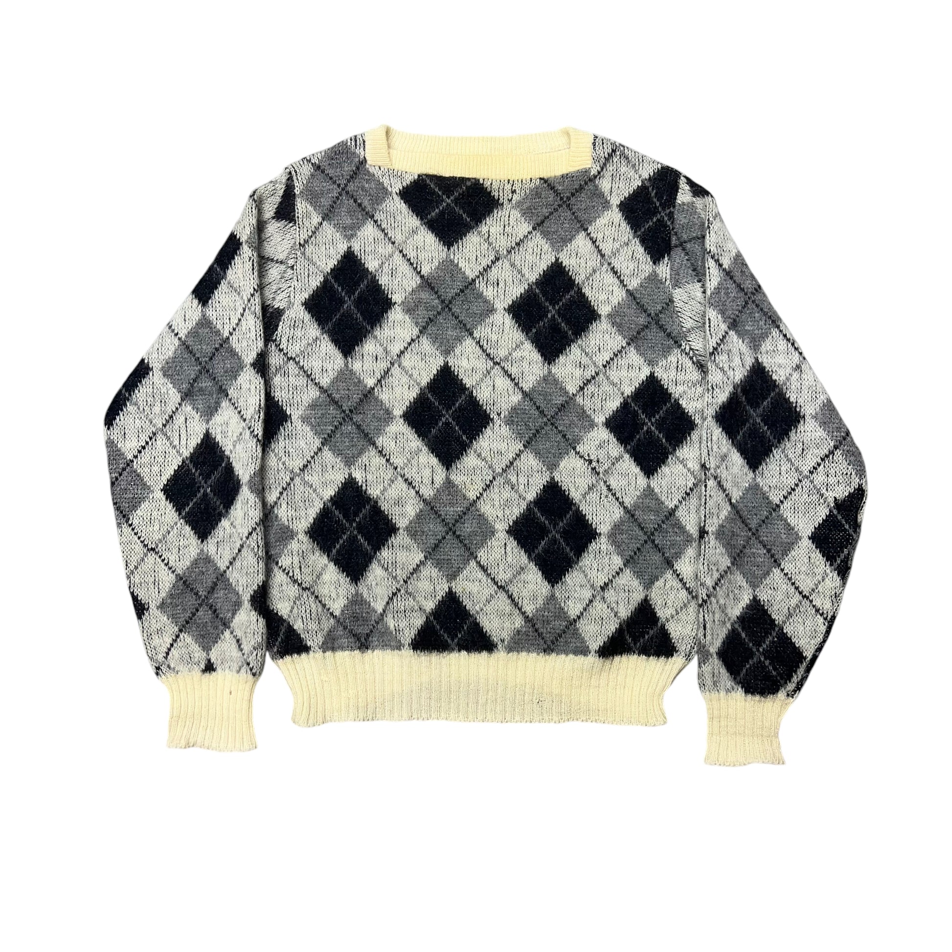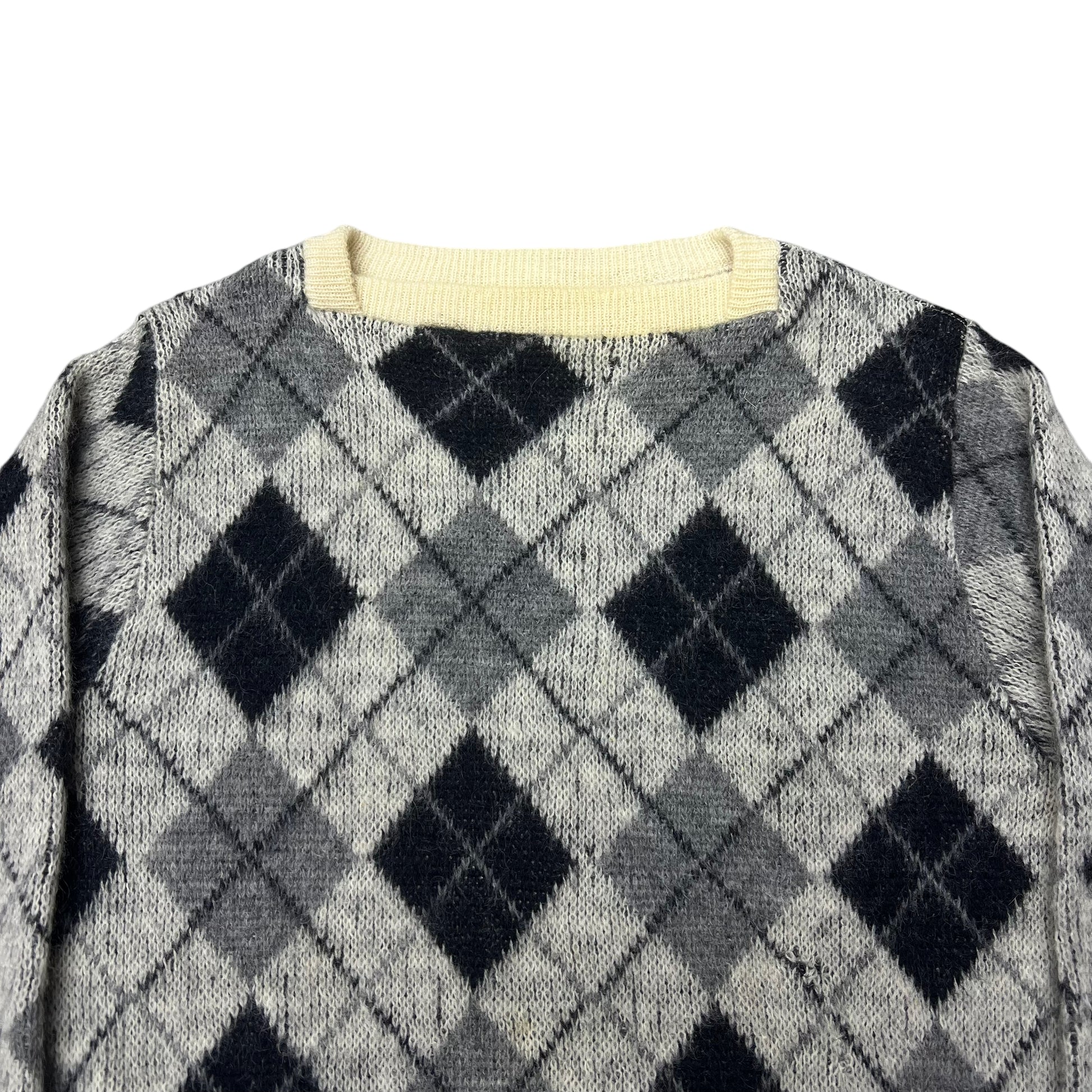 1970s Jantzen black & grey plaid mohair sweater (XL)